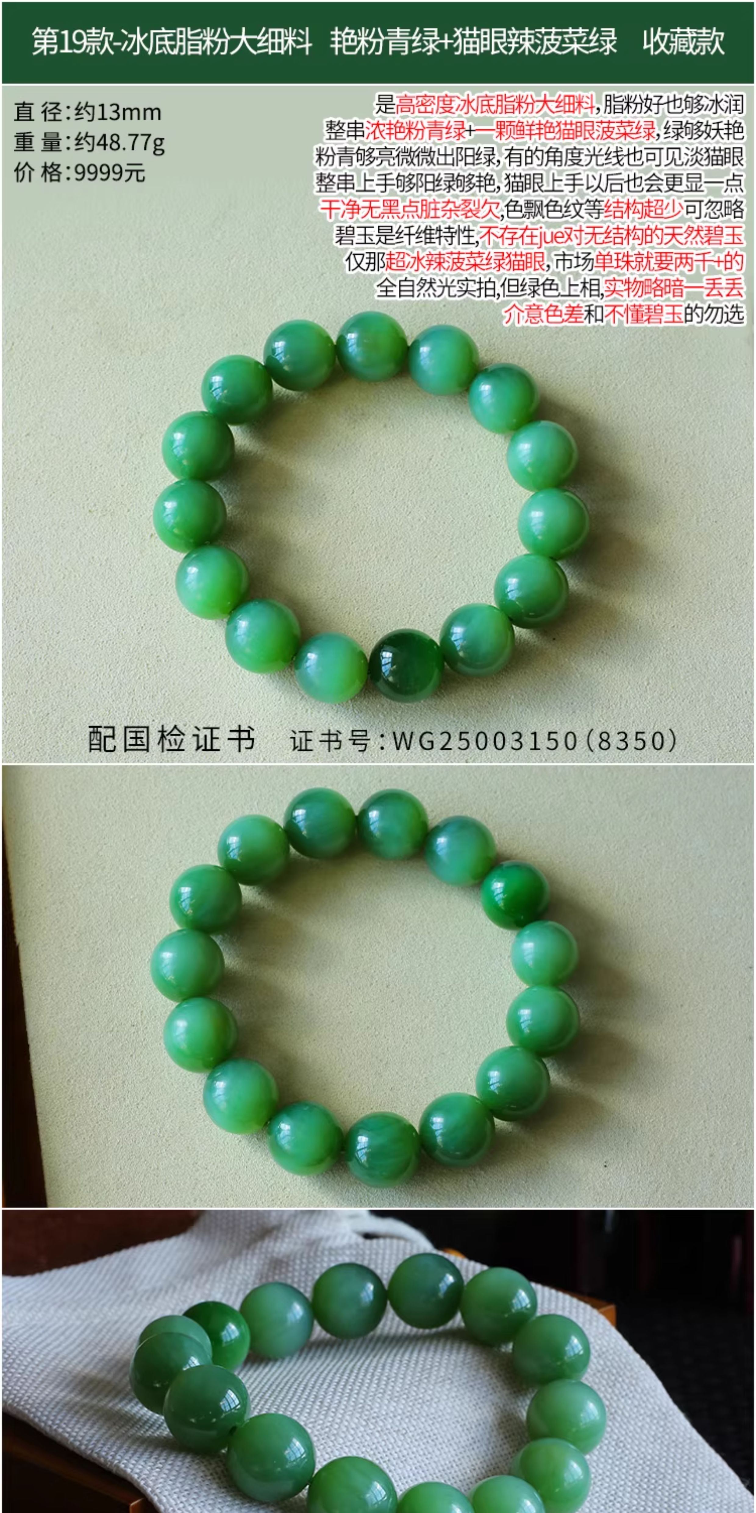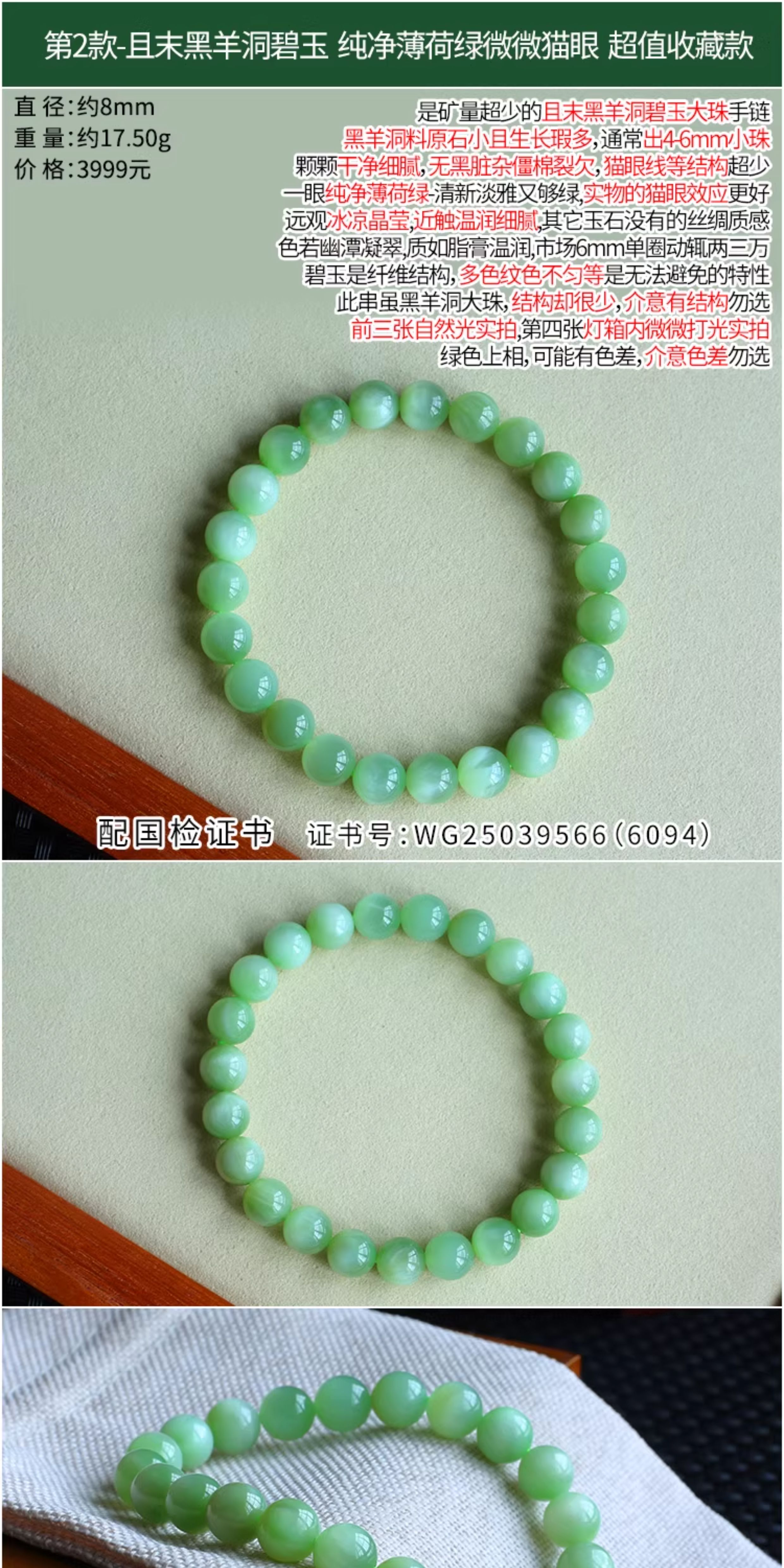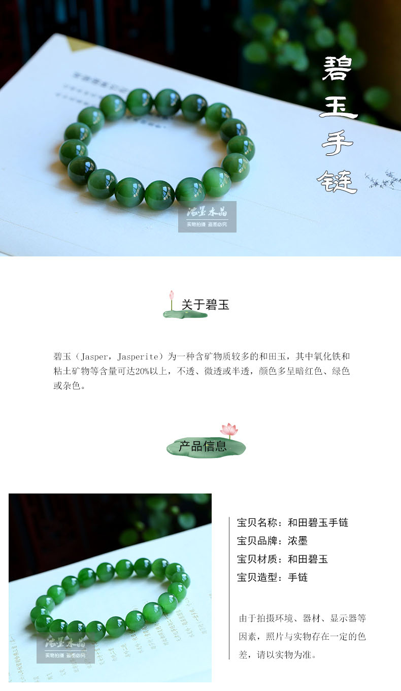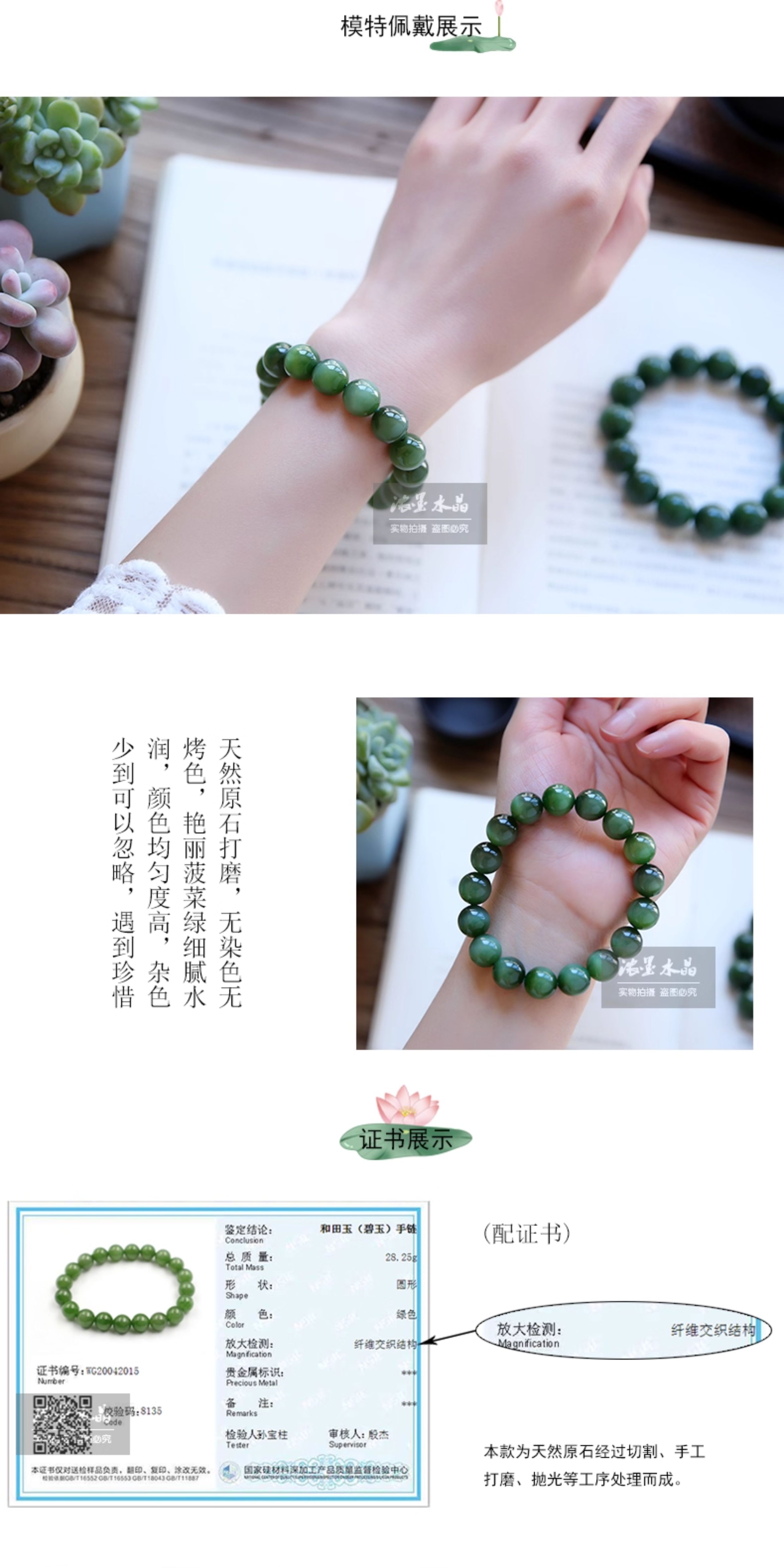 Intense Ink Natural Jade Bracelet, Hetian Jade Bracelet, Russian Spinach Green Cat's Eye Green Crystal for Men and Women