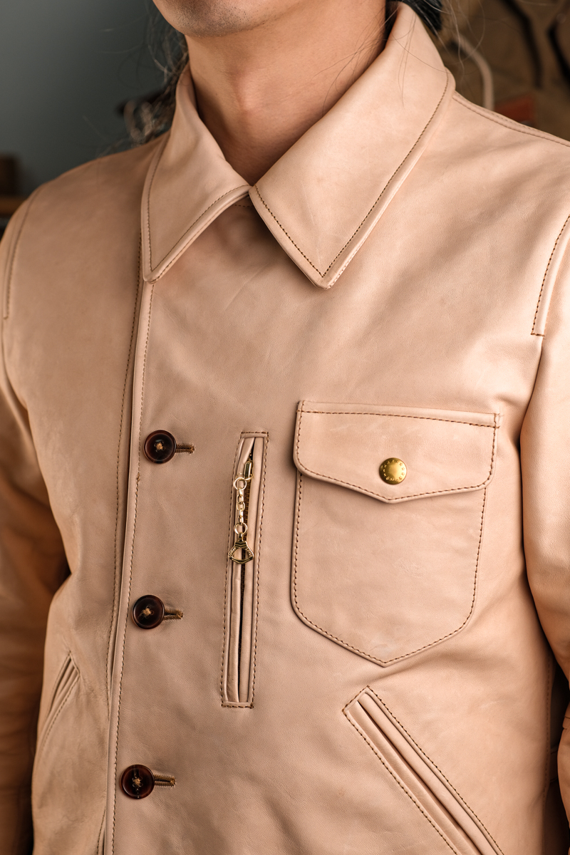 California Bear Style Polish Native Horse Leather 1940S Carcoat Top Layer Tea Heart Oil Wax Thick Full-Grain Distressed