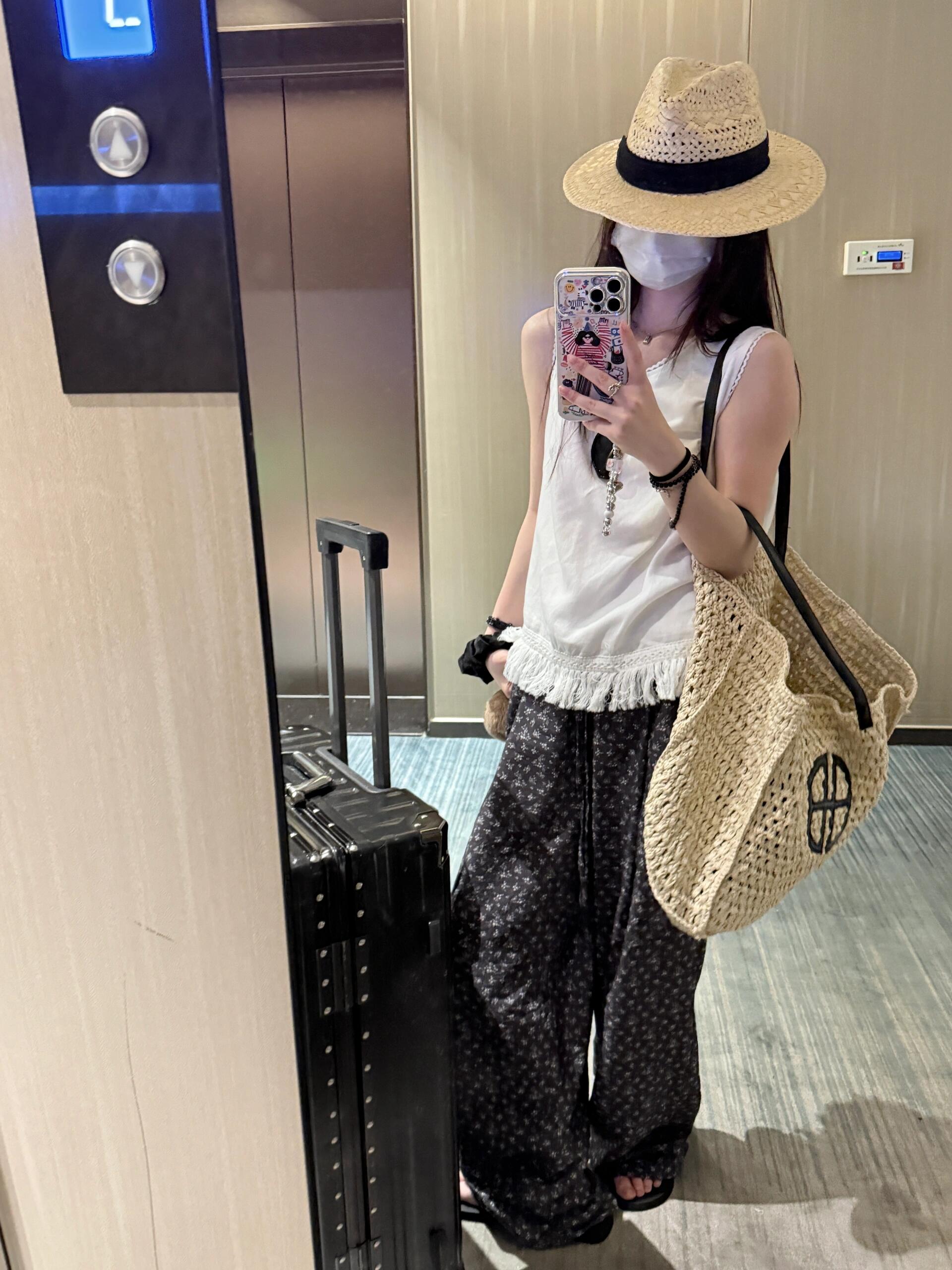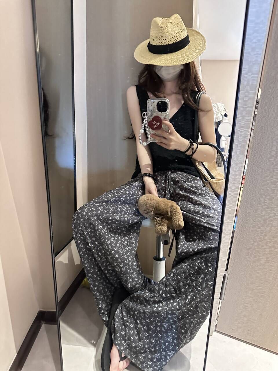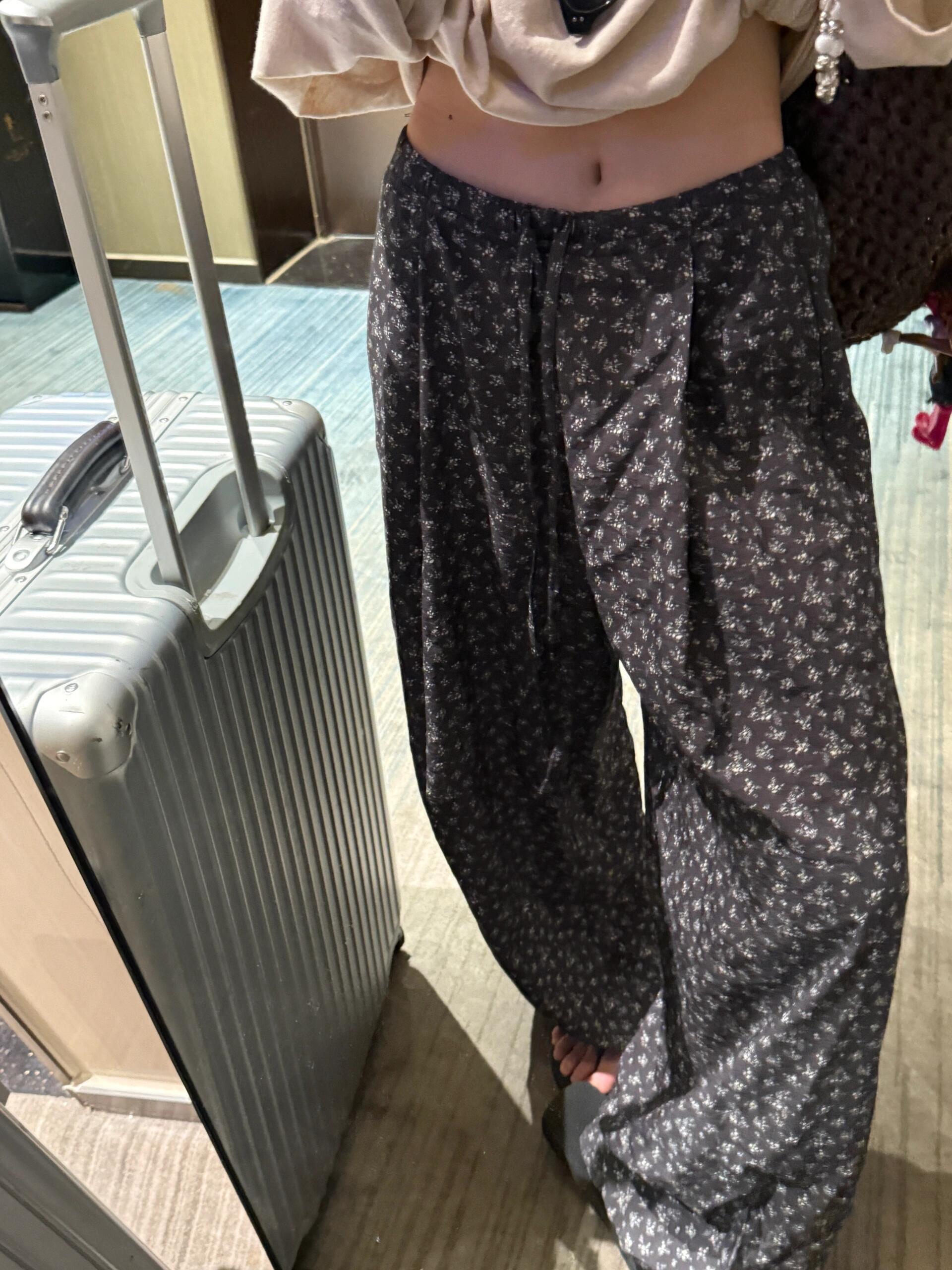 Yyy Seventeen Summer Cool Small Floral Drape Drawstring Casual Pants Women's Summer Relaxed Lazy Style Wide Leg Pants
