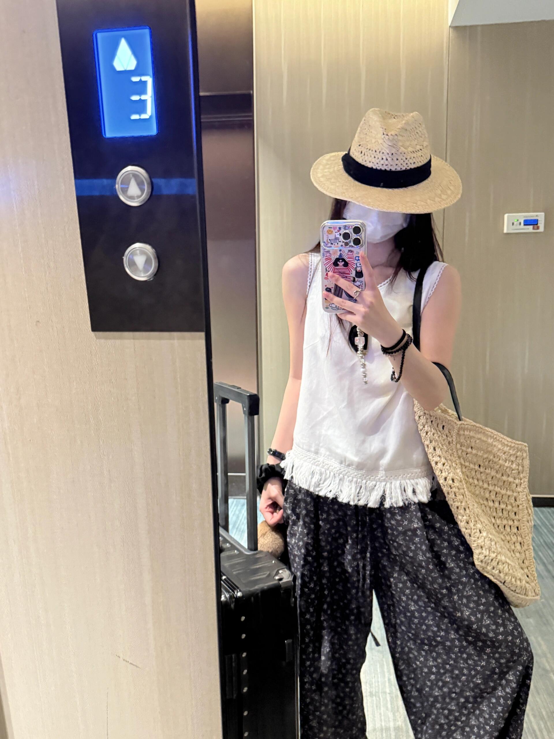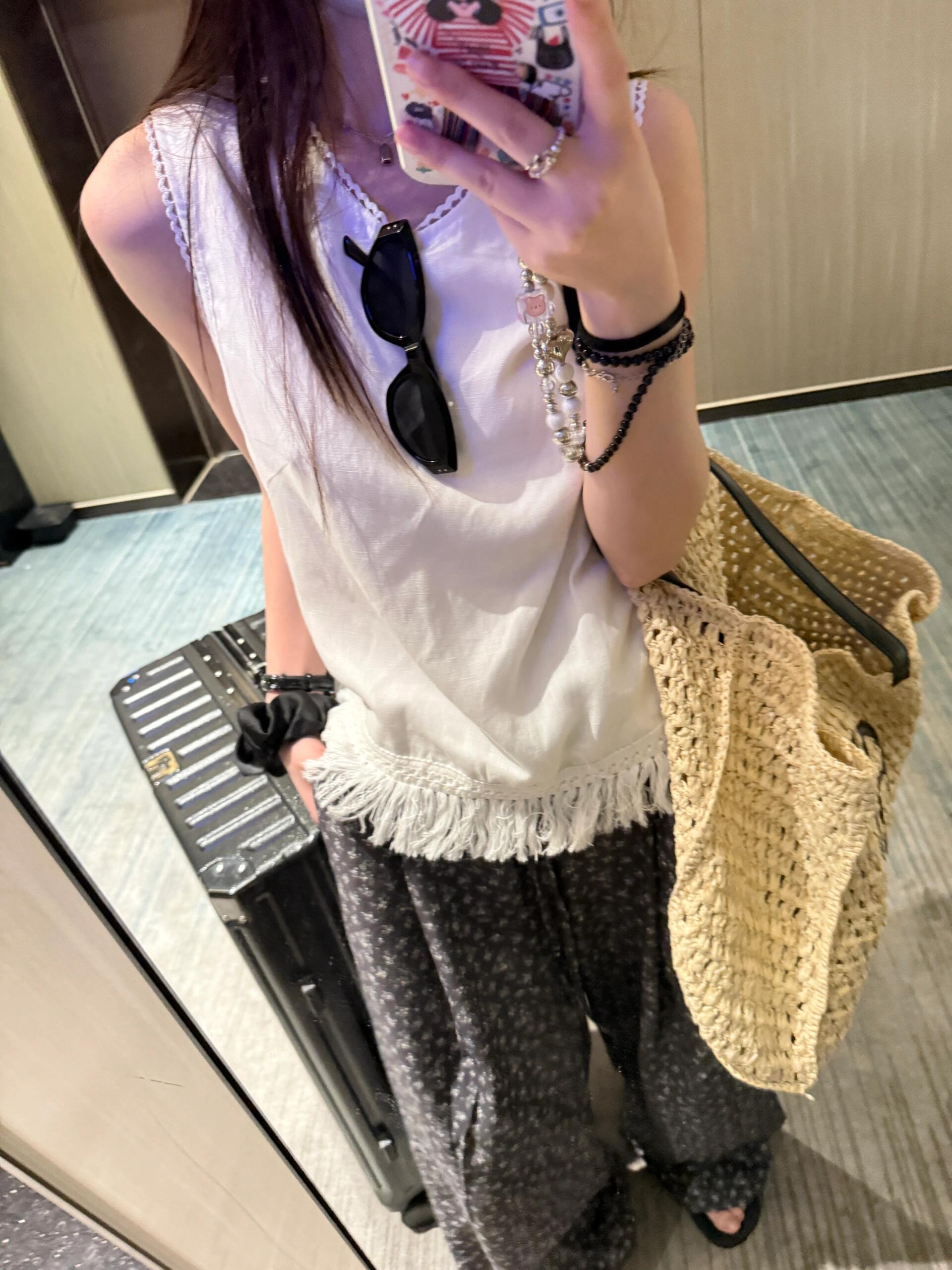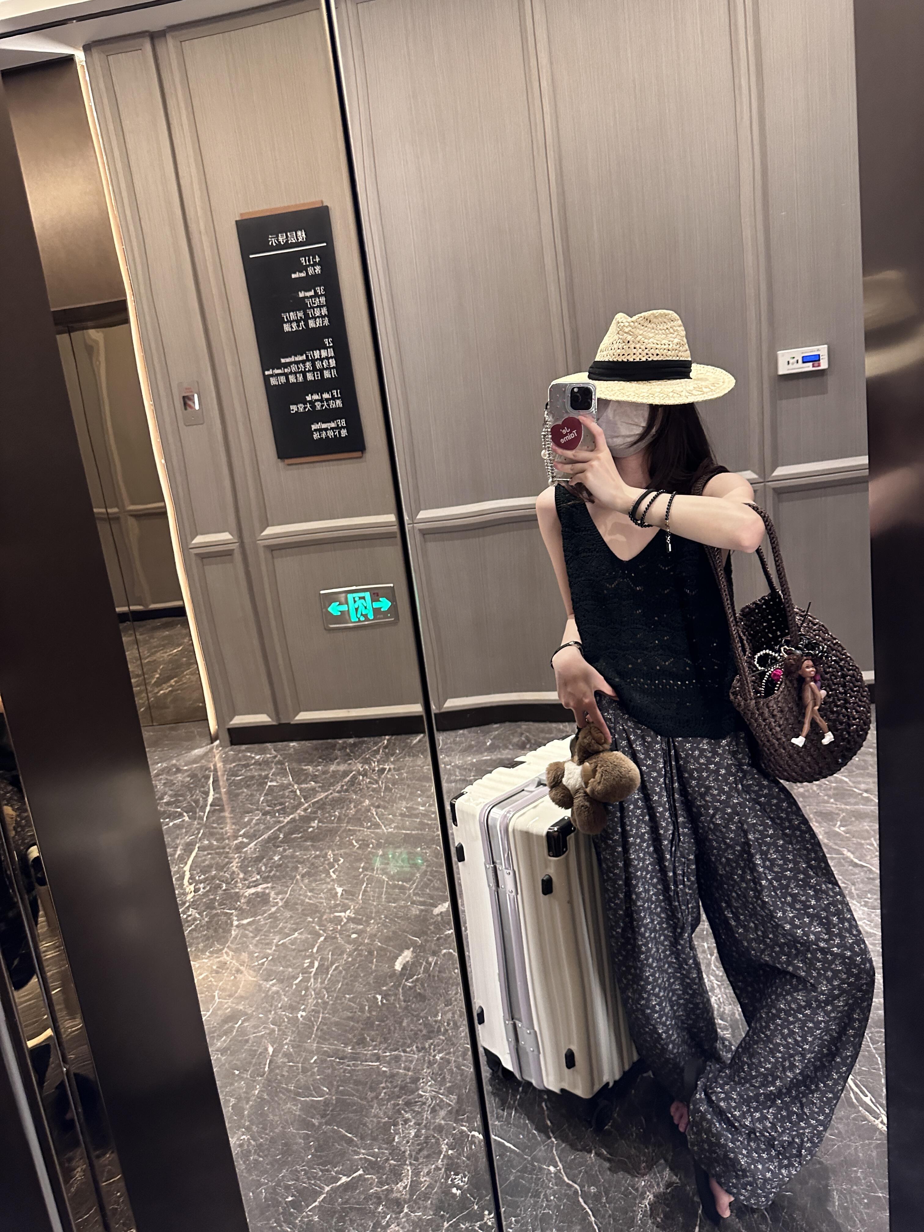 Yyy Seventeen Summer Cool Small Floral Drape Drawstring Casual Pants Women's Summer Relaxed Lazy Style Wide Leg Pants