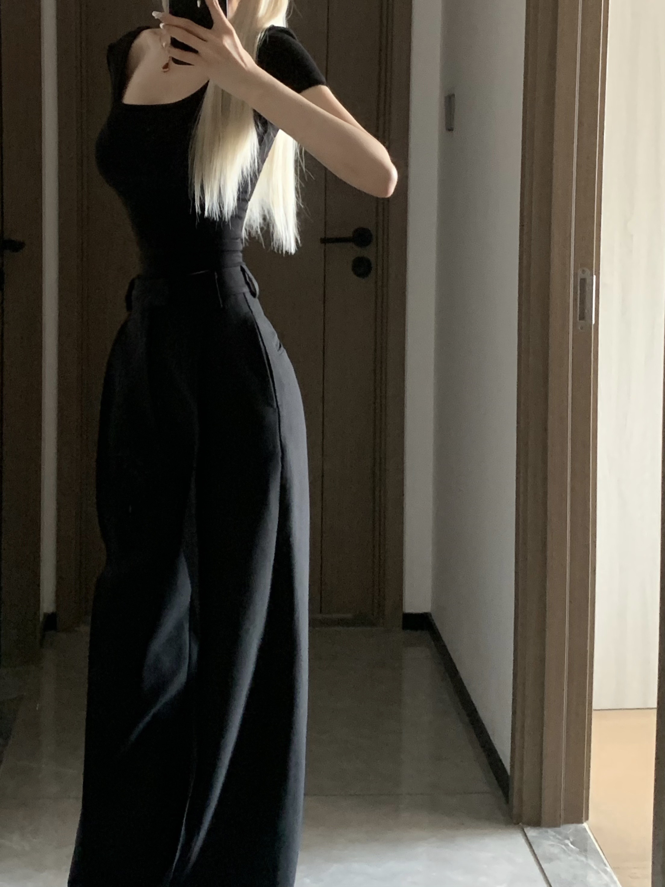 这个版型属于直筒裤加一点点一丢丢微阔腿