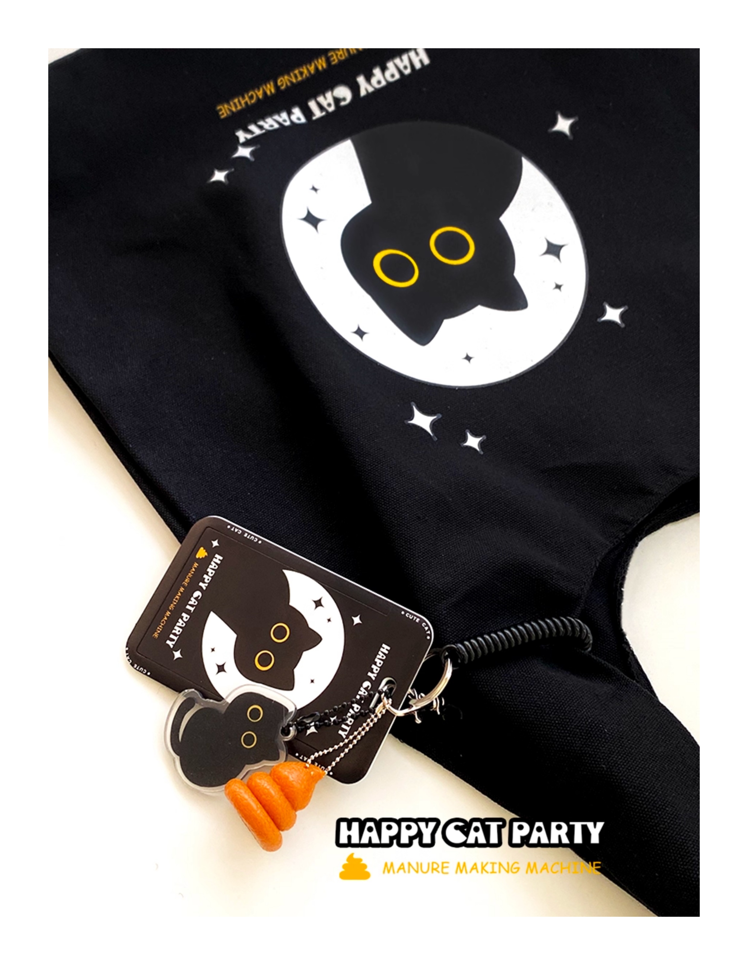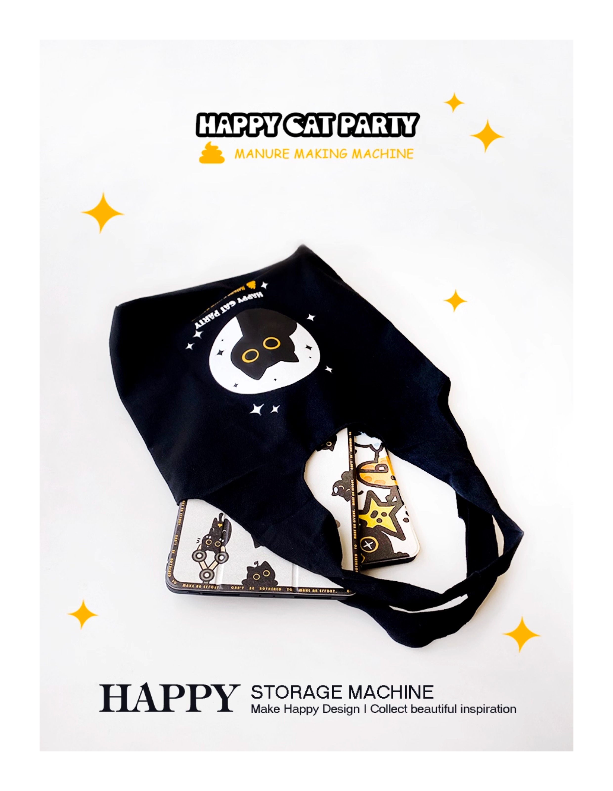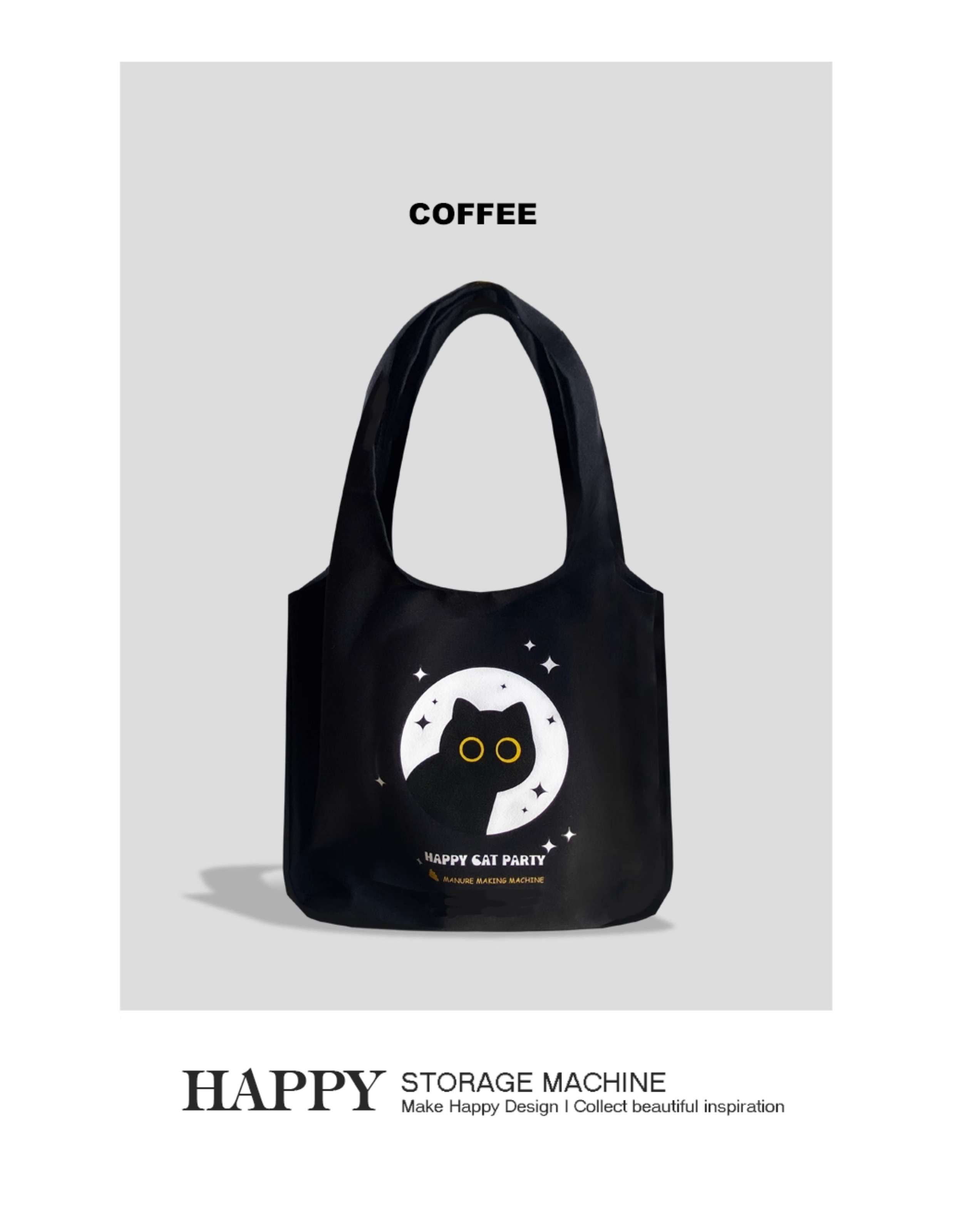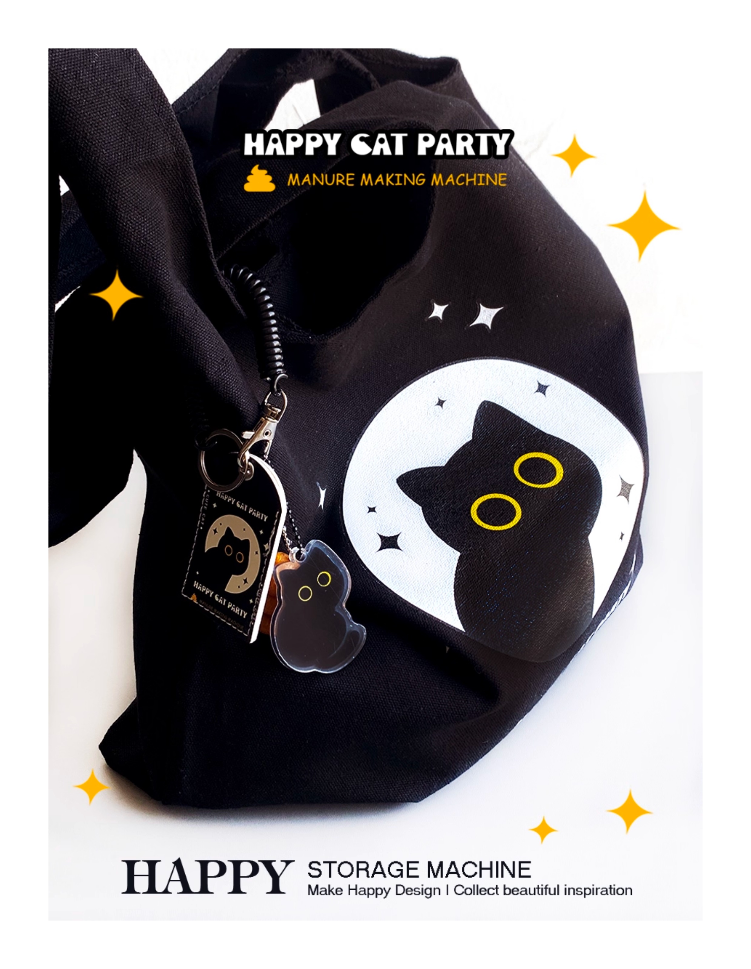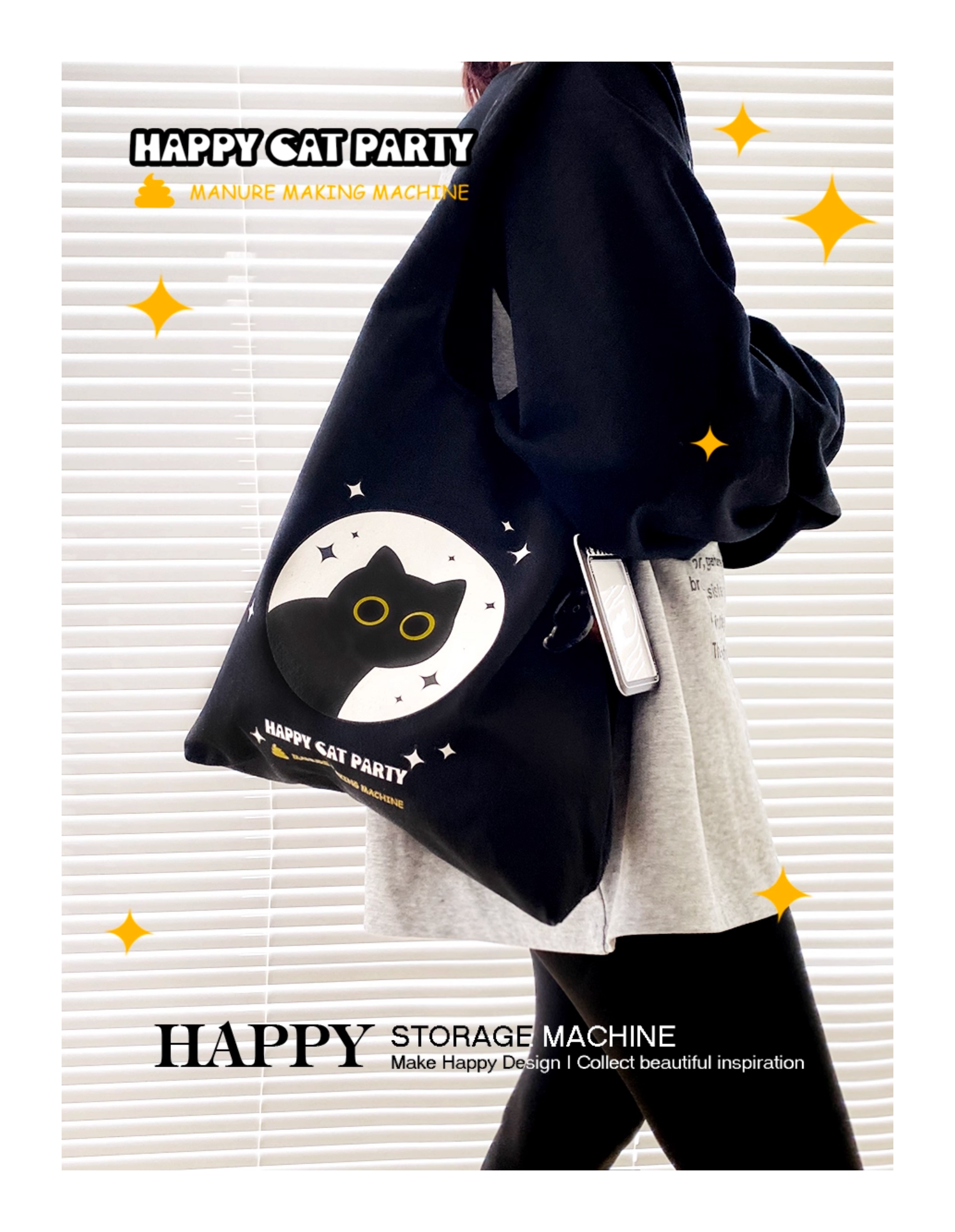 Happy Original Cute Squatting Cat Crossbody Canvas Bag Casual Large Capacity Student Class Tote Bag