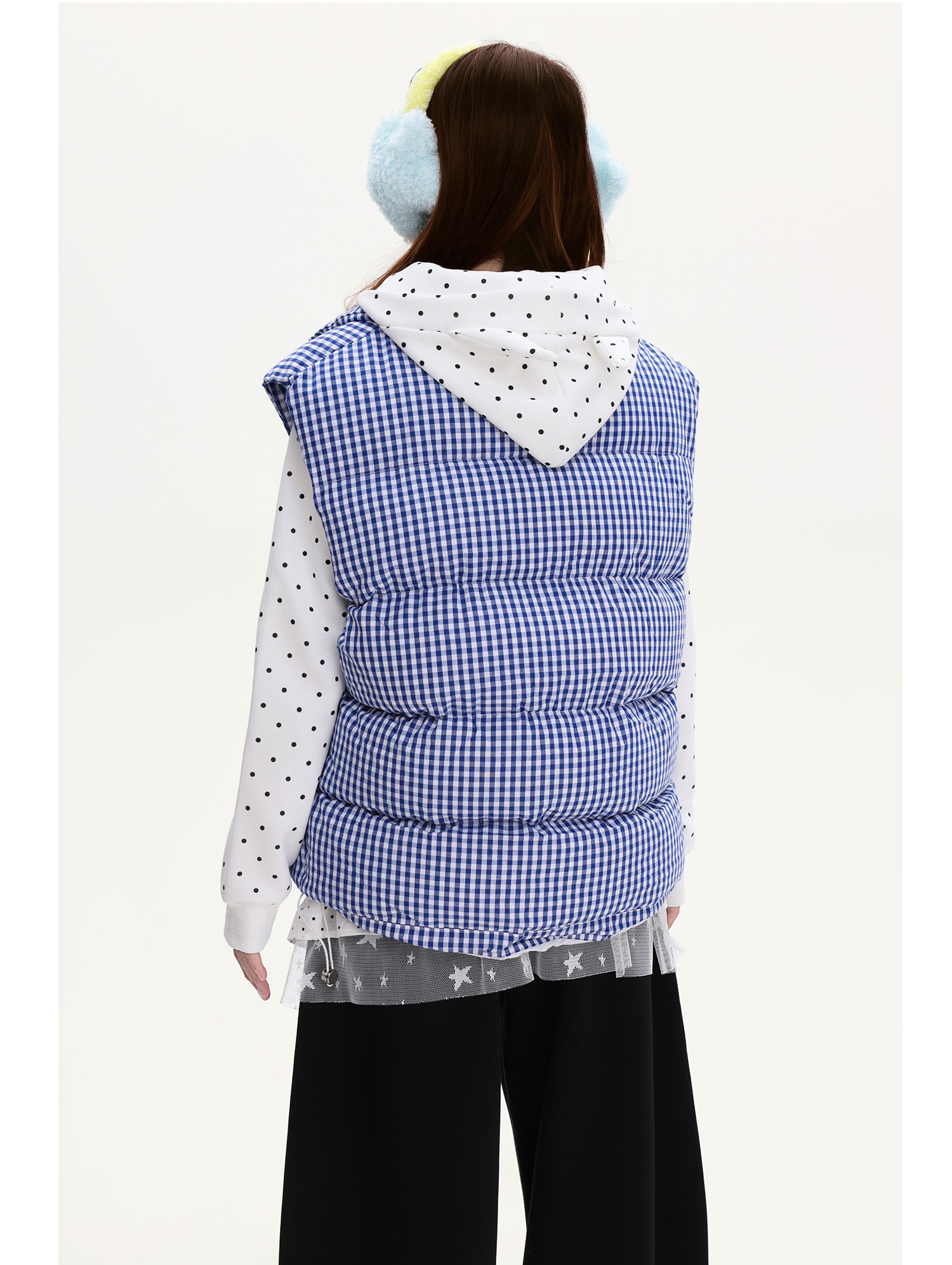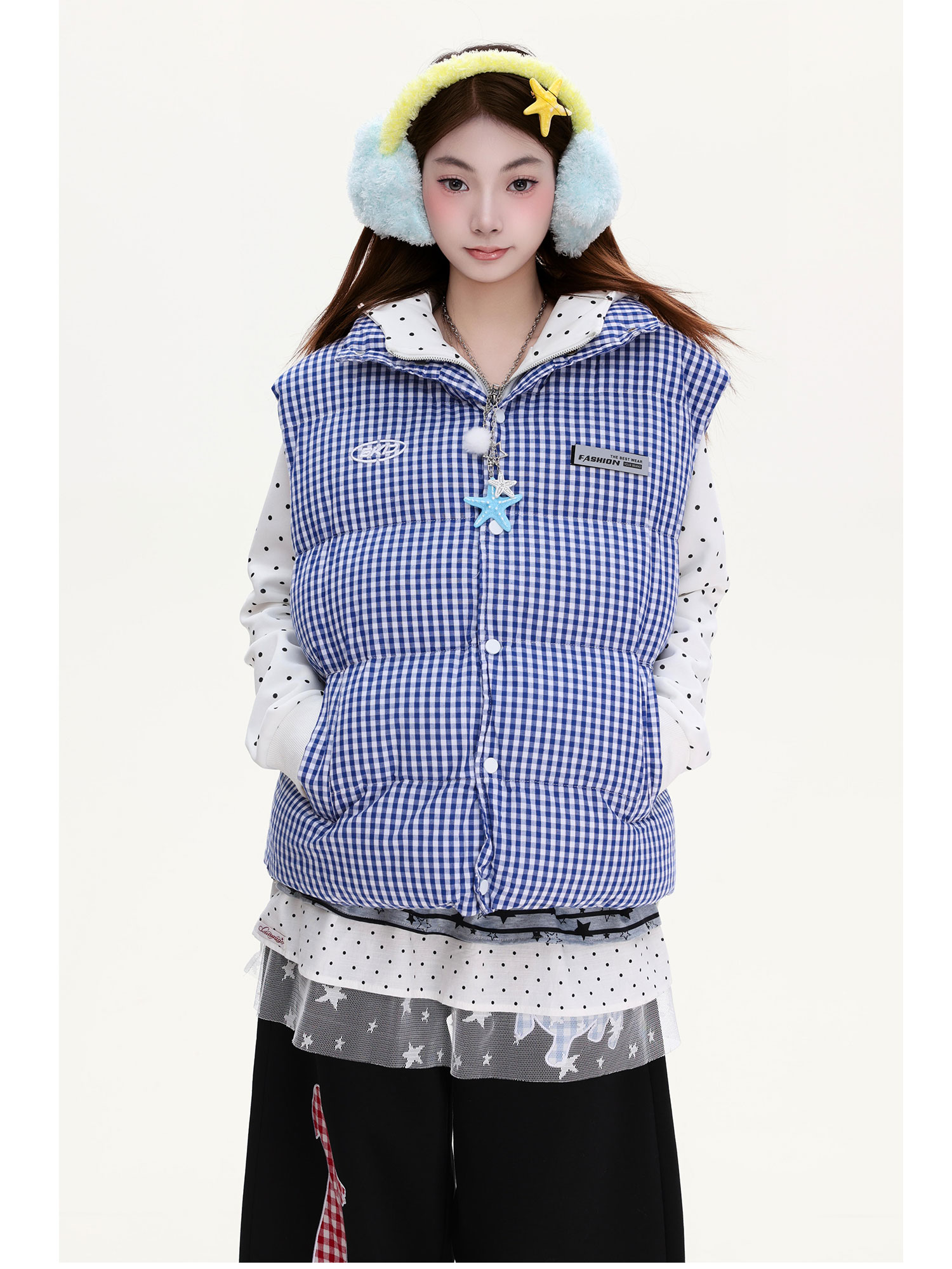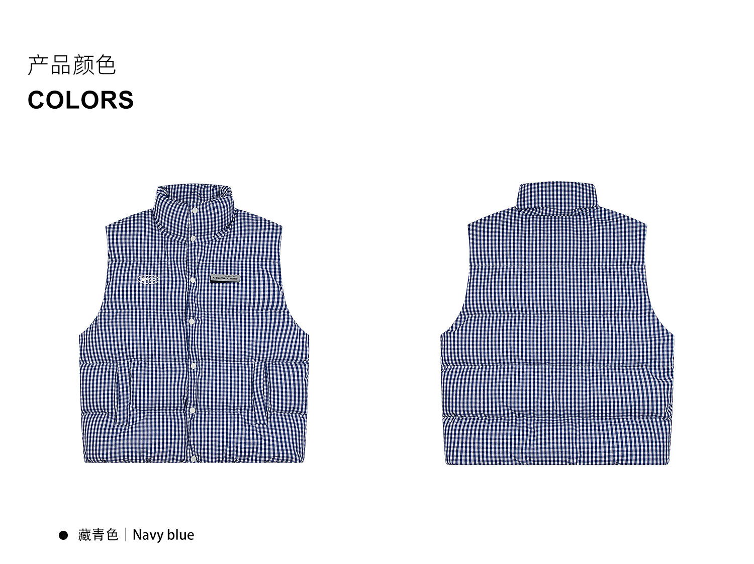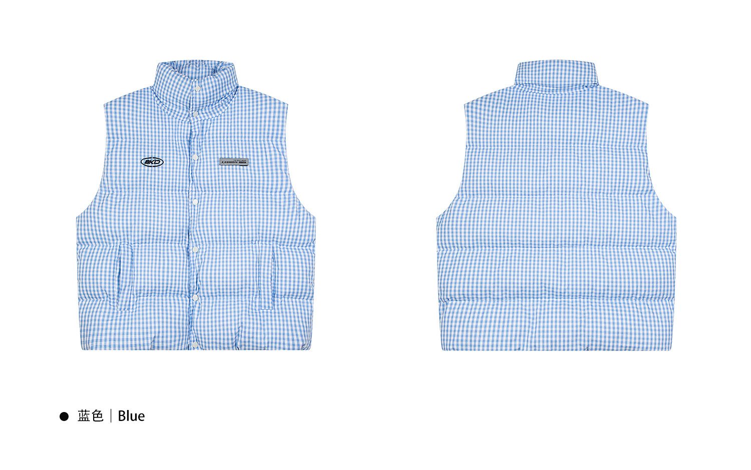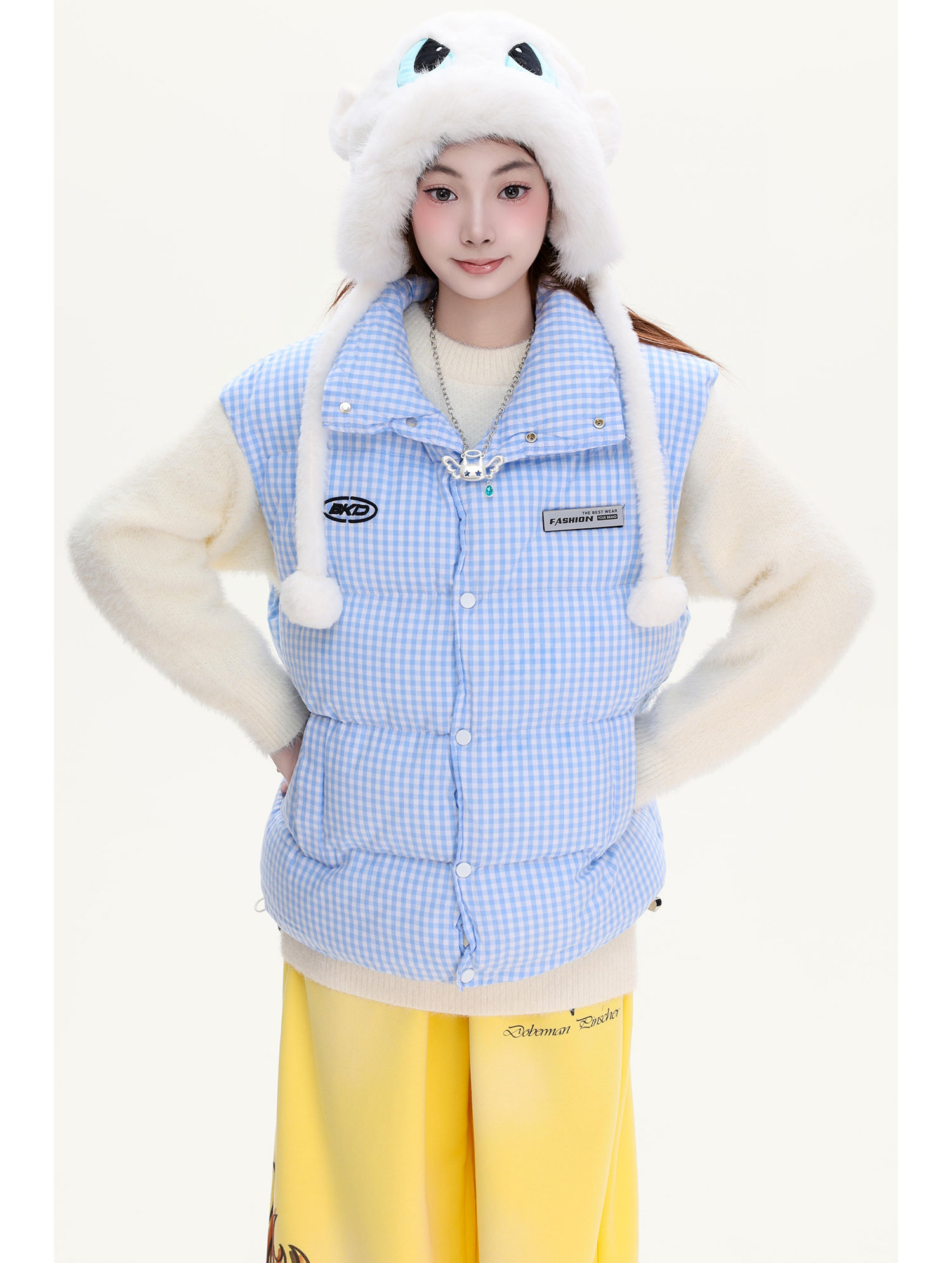 Pbb Jennie Style Vest Blue Plaid Cotton Jacket Women's American Retro Vest Padded Thickened Vest