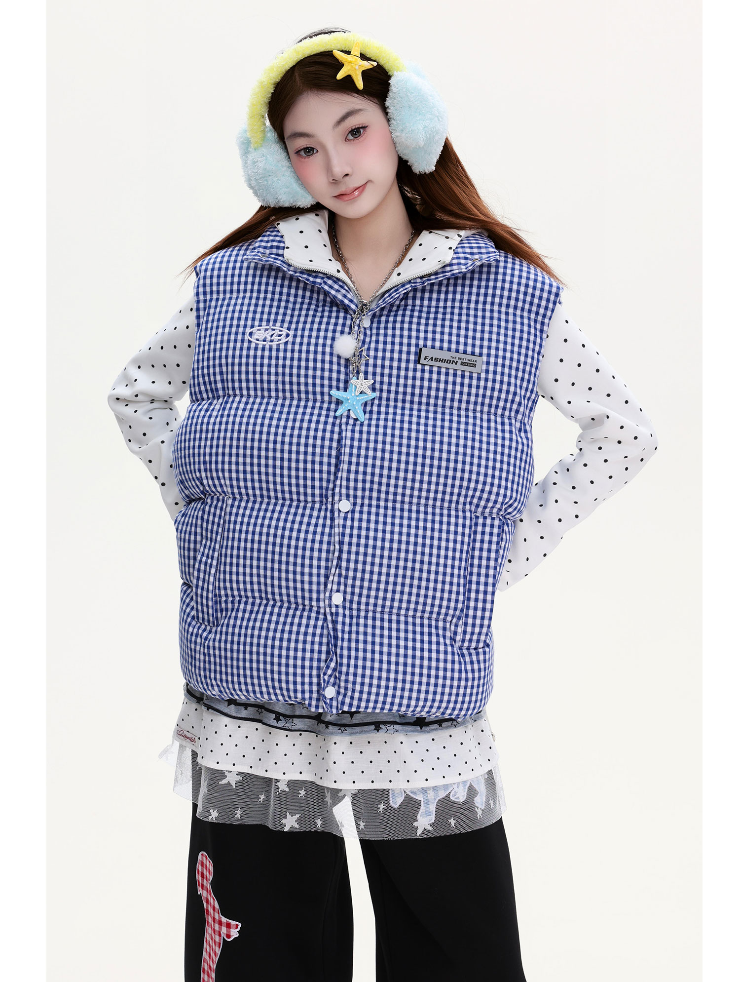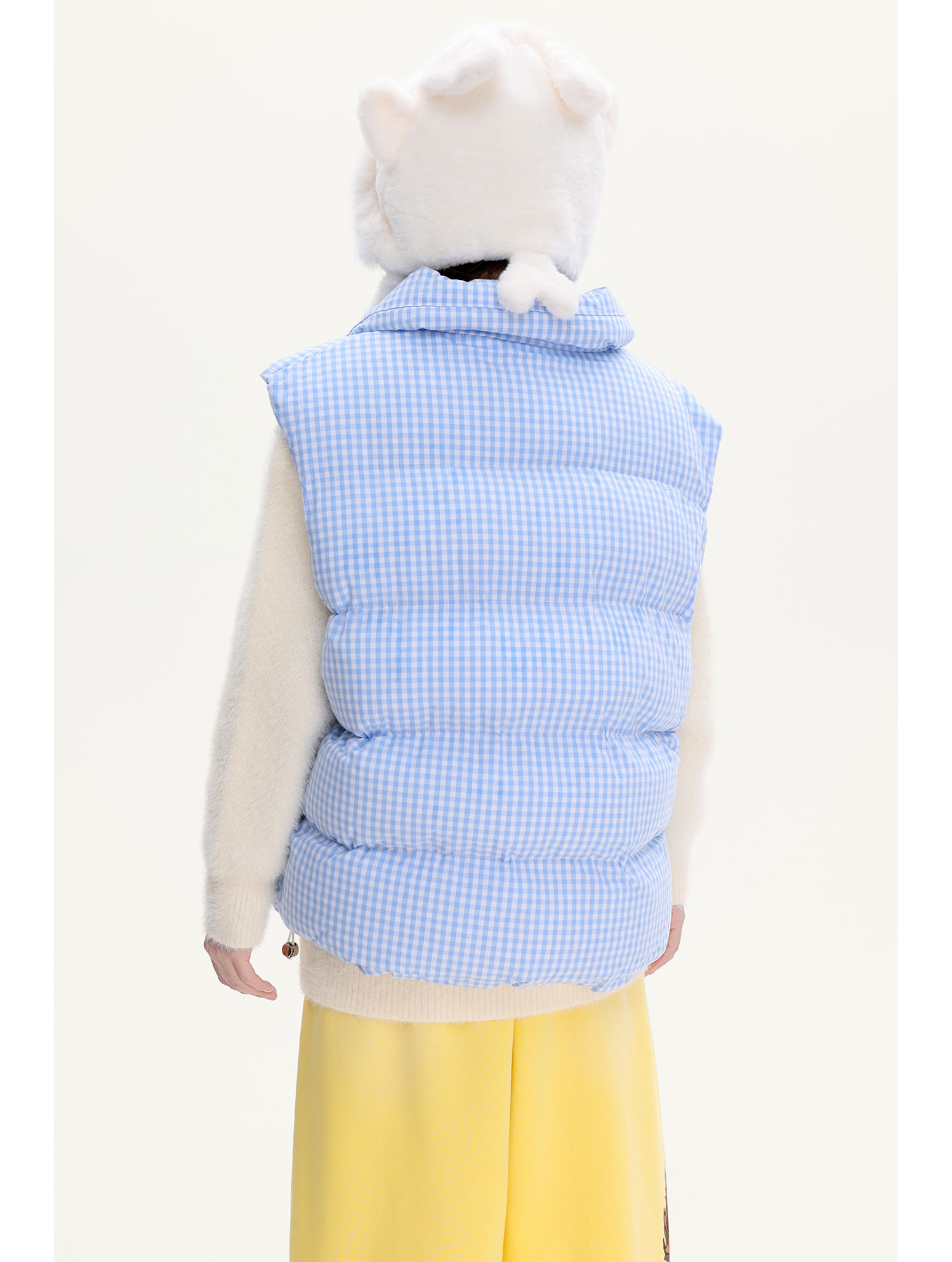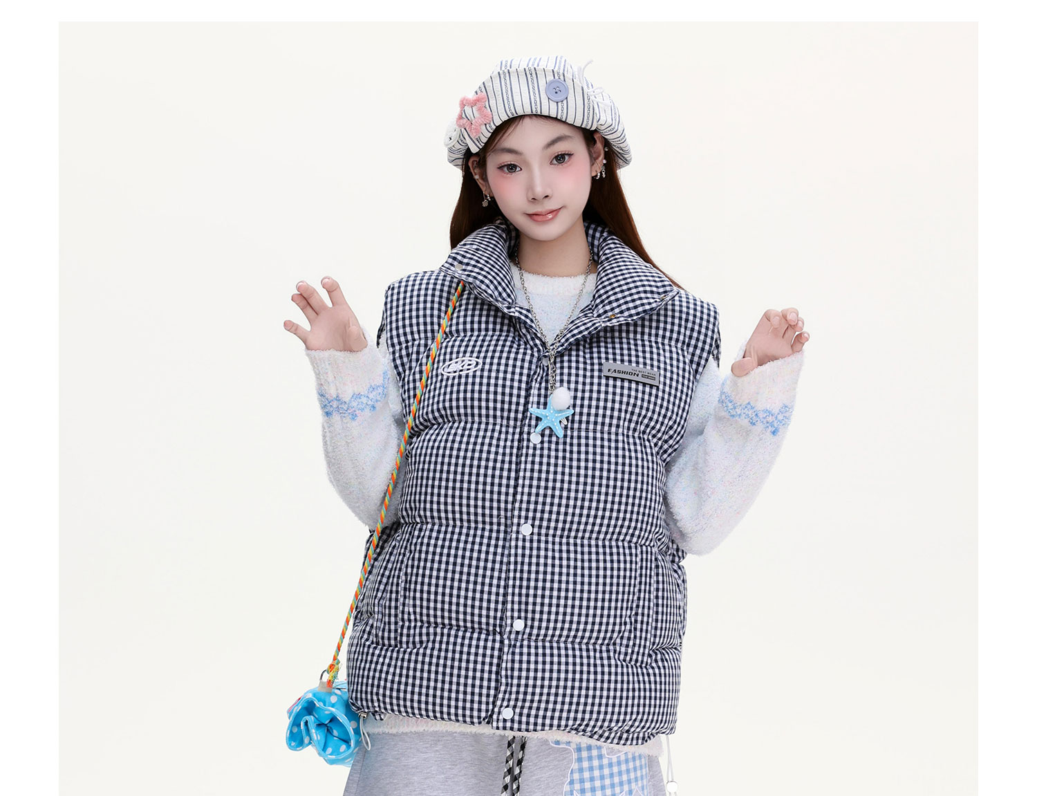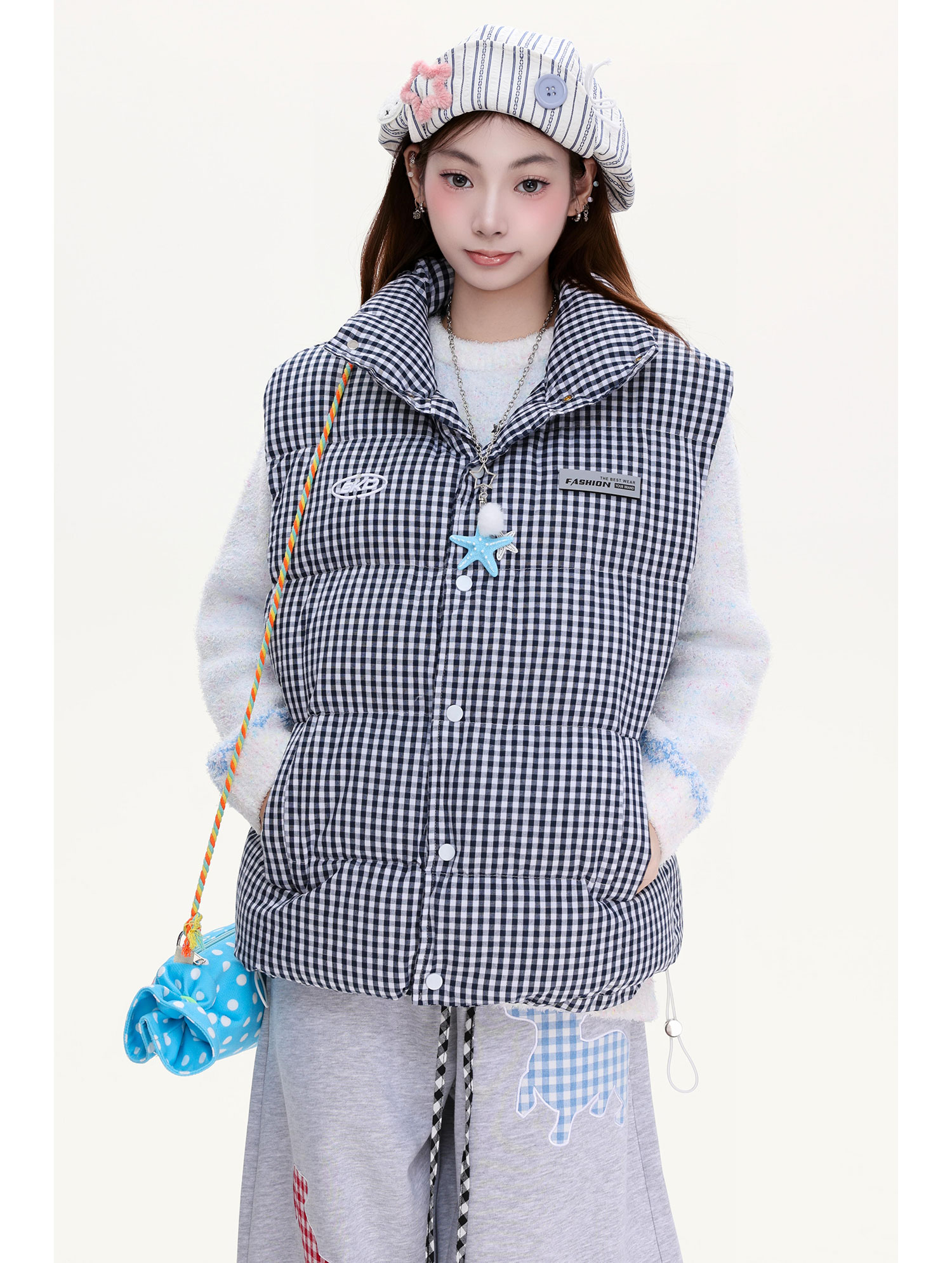 Pbb Jennie Style Vest Blue Plaid Cotton Jacket Women's American Retro Vest Padded Thickened Vest