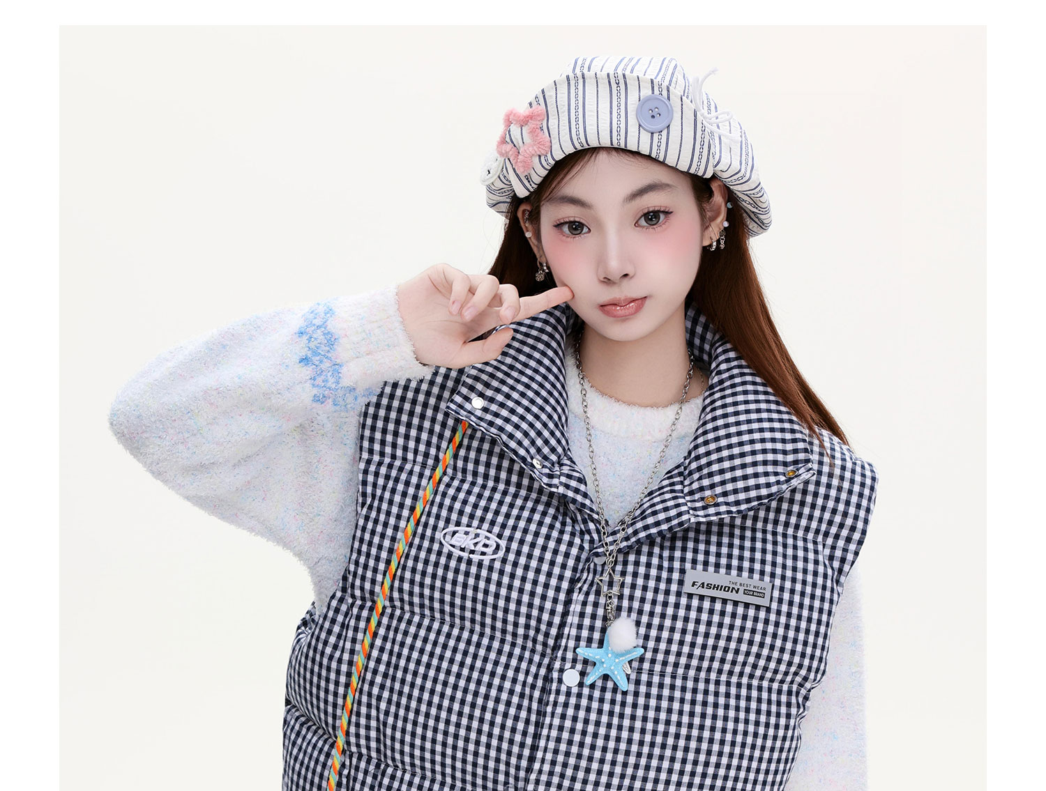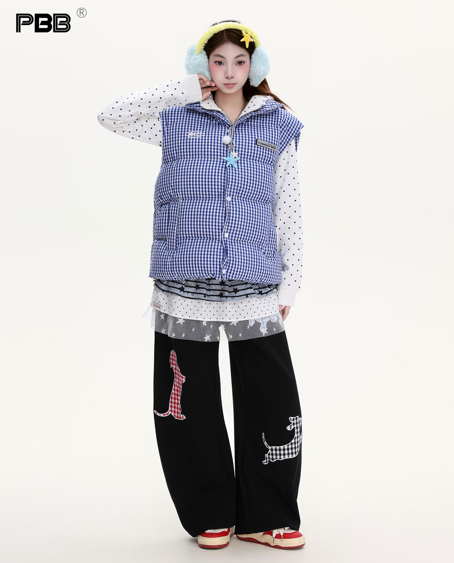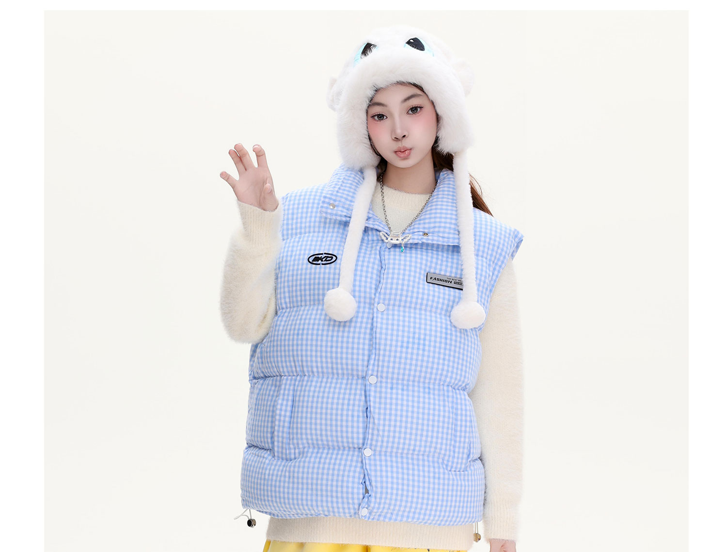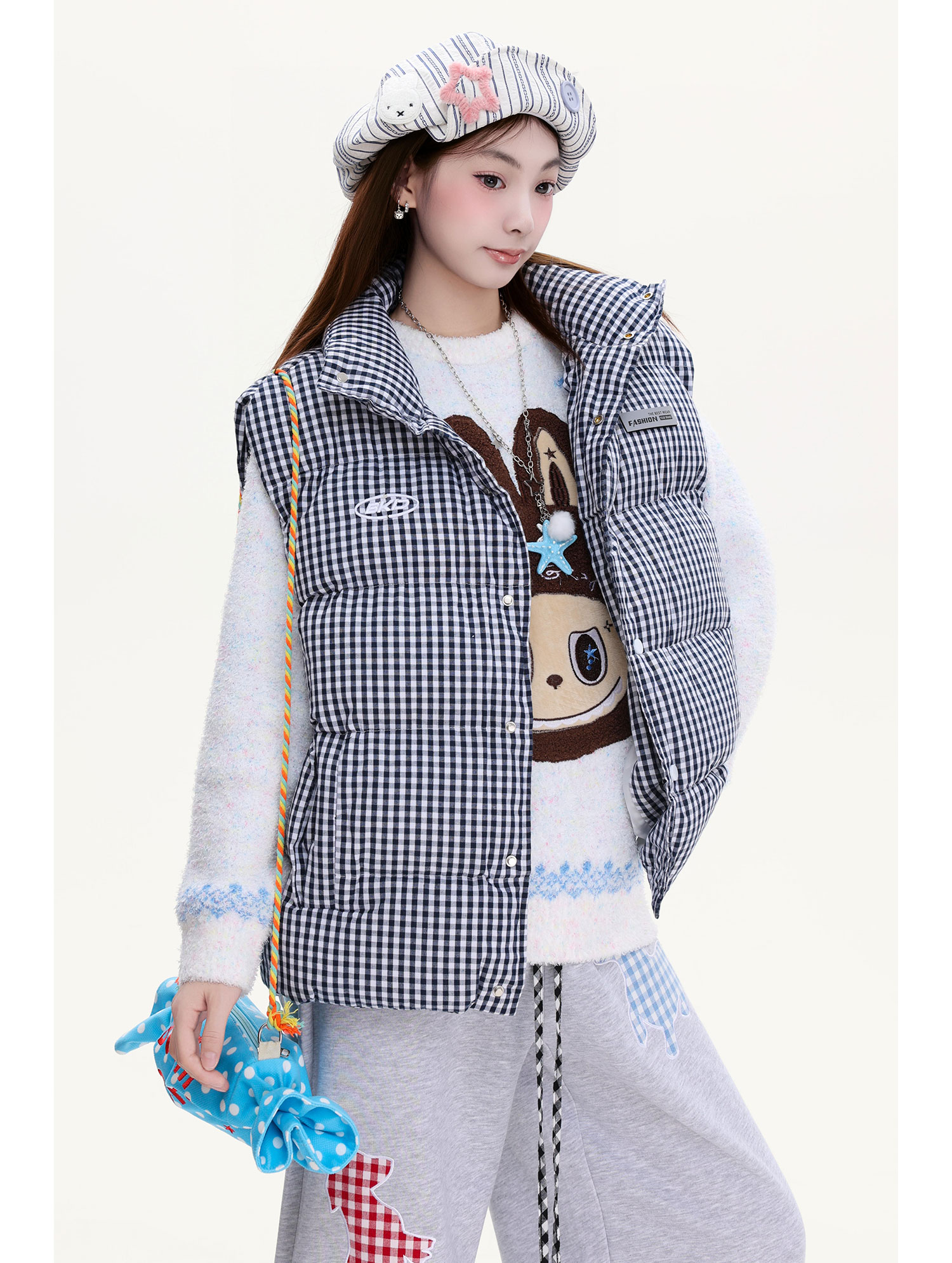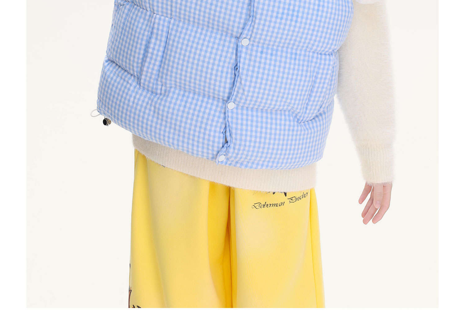 Pbb Jennie Style Vest Blue Plaid Cotton Jacket Women's American Retro Vest Padded Thickened Vest