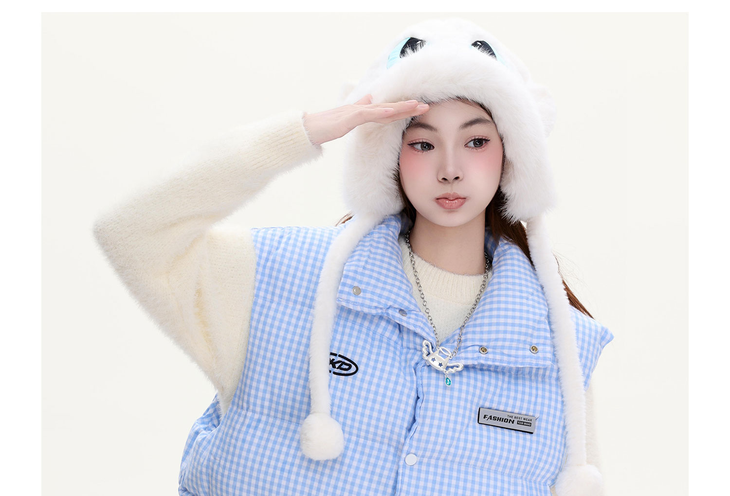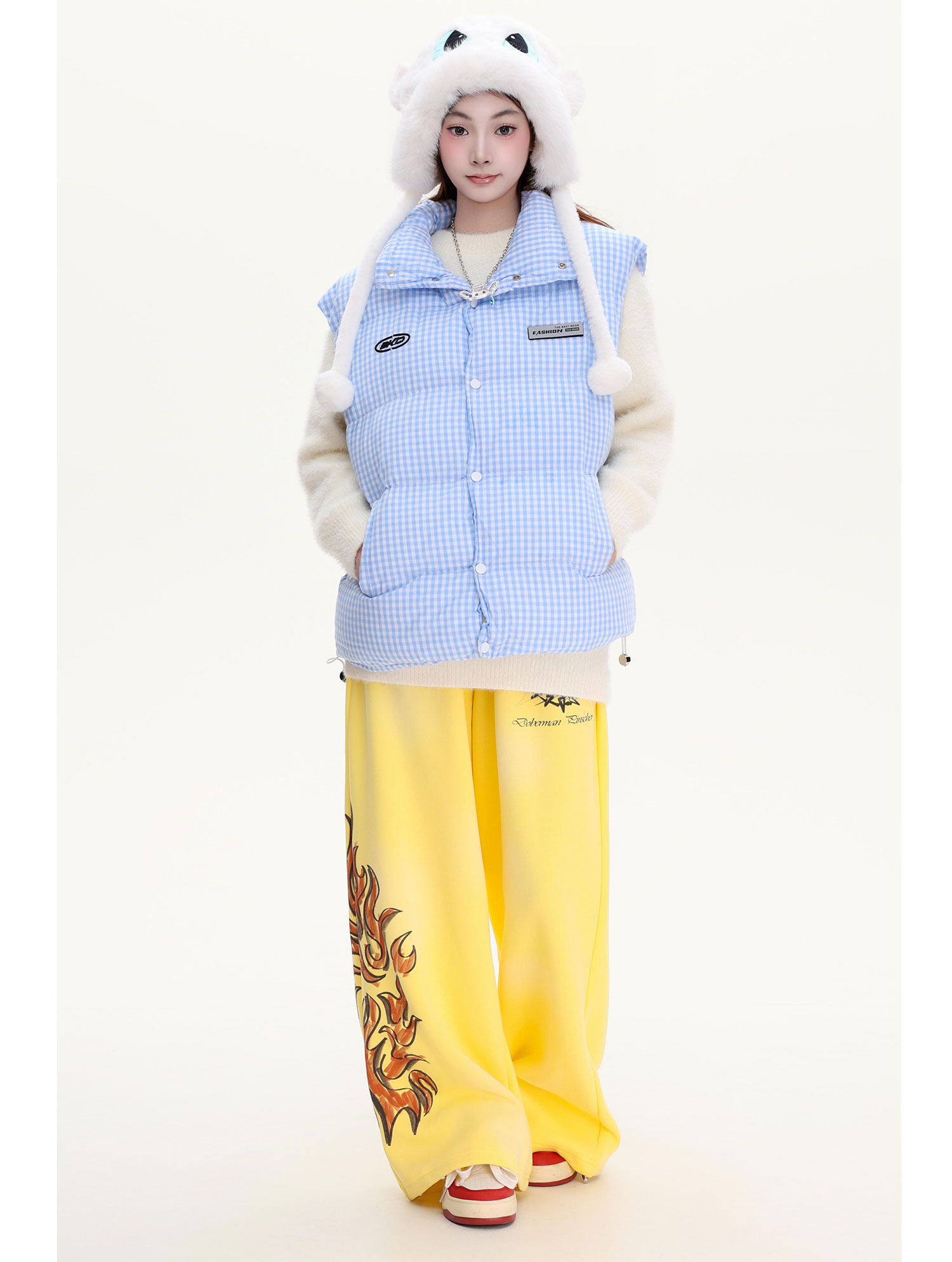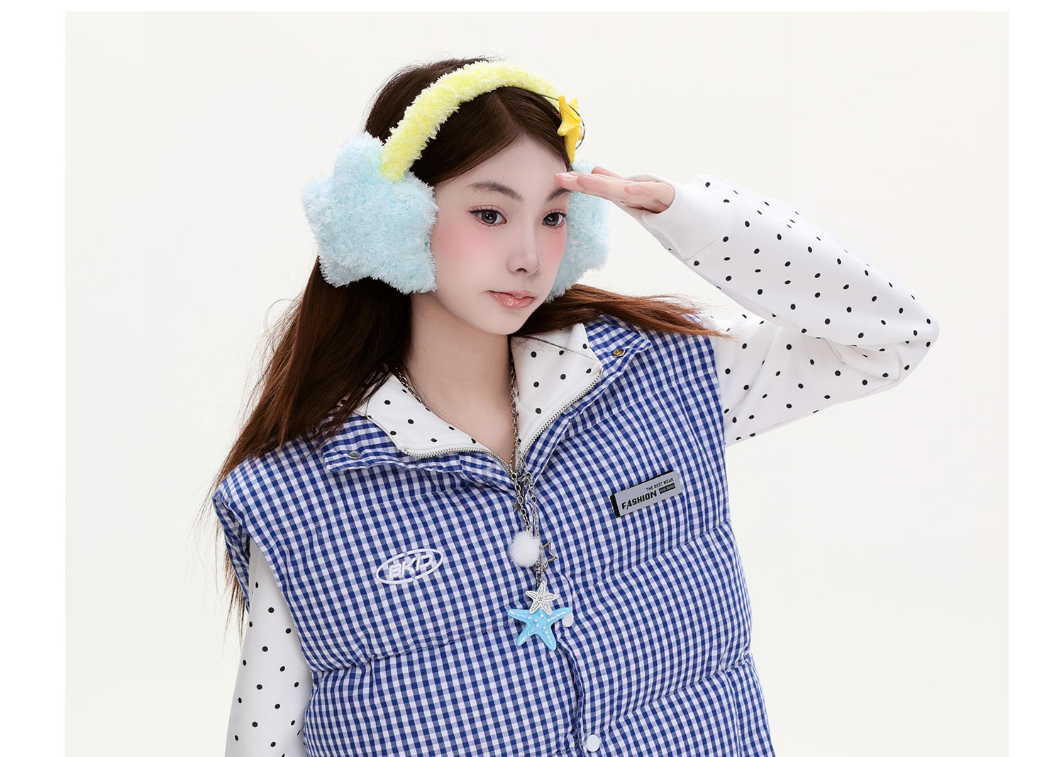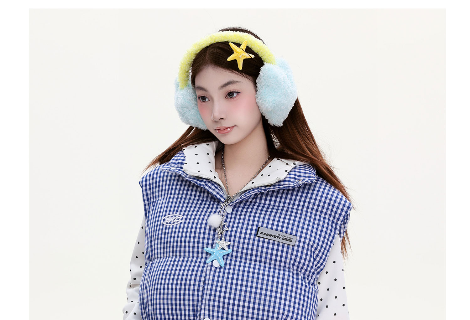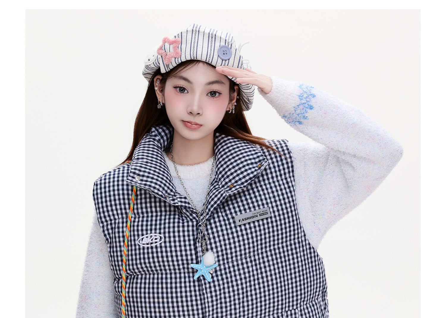 Pbb Jennie Style Vest Blue Plaid Cotton Jacket Women's American Retro Vest Padded Thickened Vest