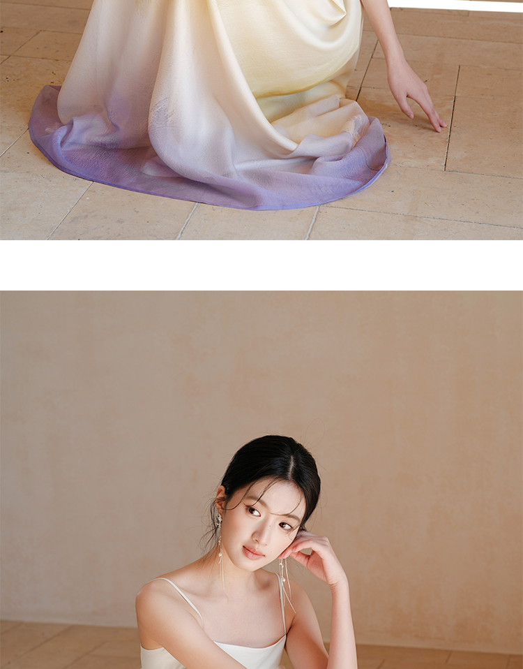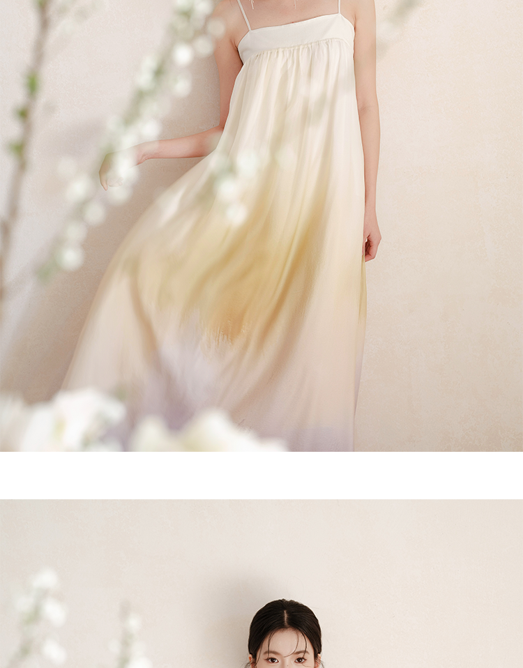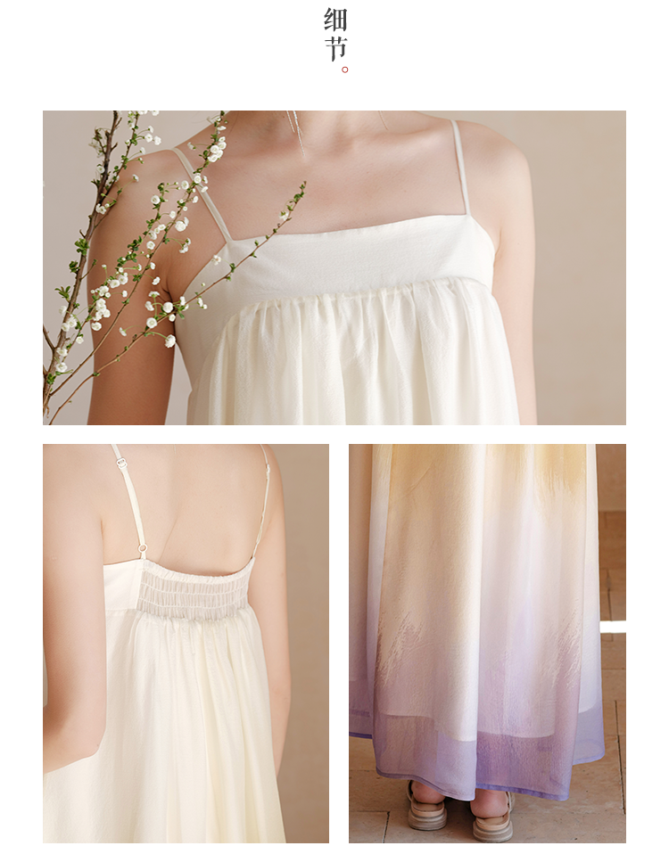 Chu Chanyi's New Chinese-Style National Fashion Spaghetti Strap Long Dress 2025 New Loose-Fitting Elegant Dreamy Sheer Gradient Dress