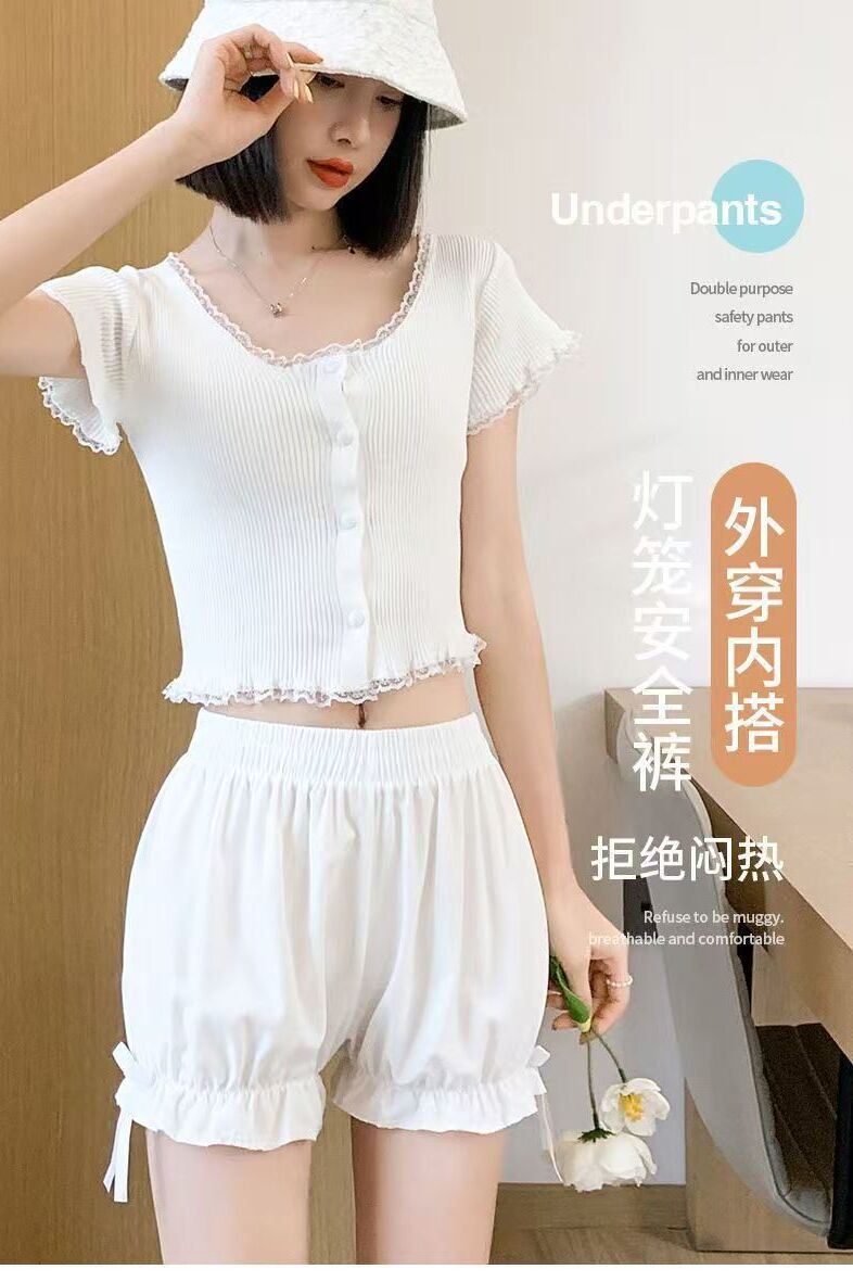 Pumpkin Pants for Women, Summer Thin Style, Jk Safety Shorts, Anti-Exposure, Can Be Worn Outside, White Loose Lantern Safety Shorts