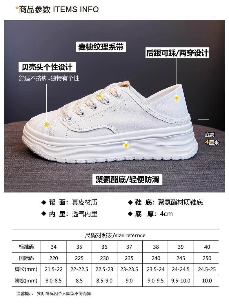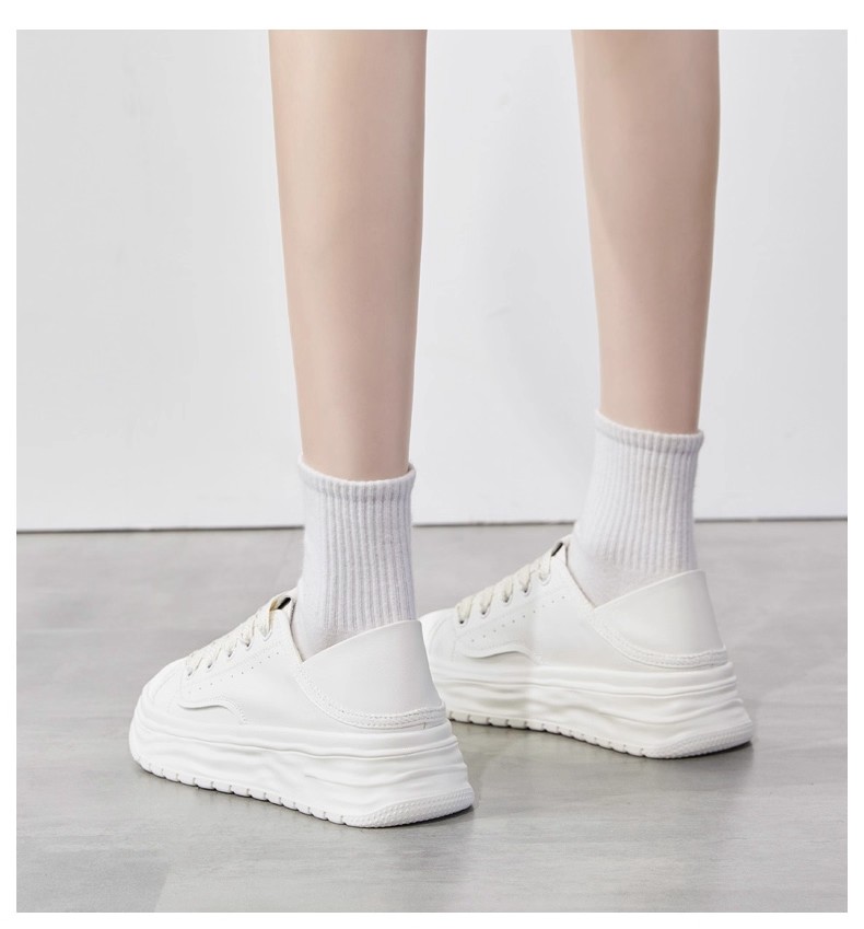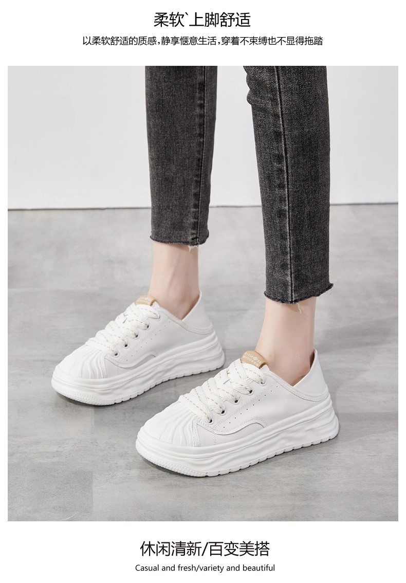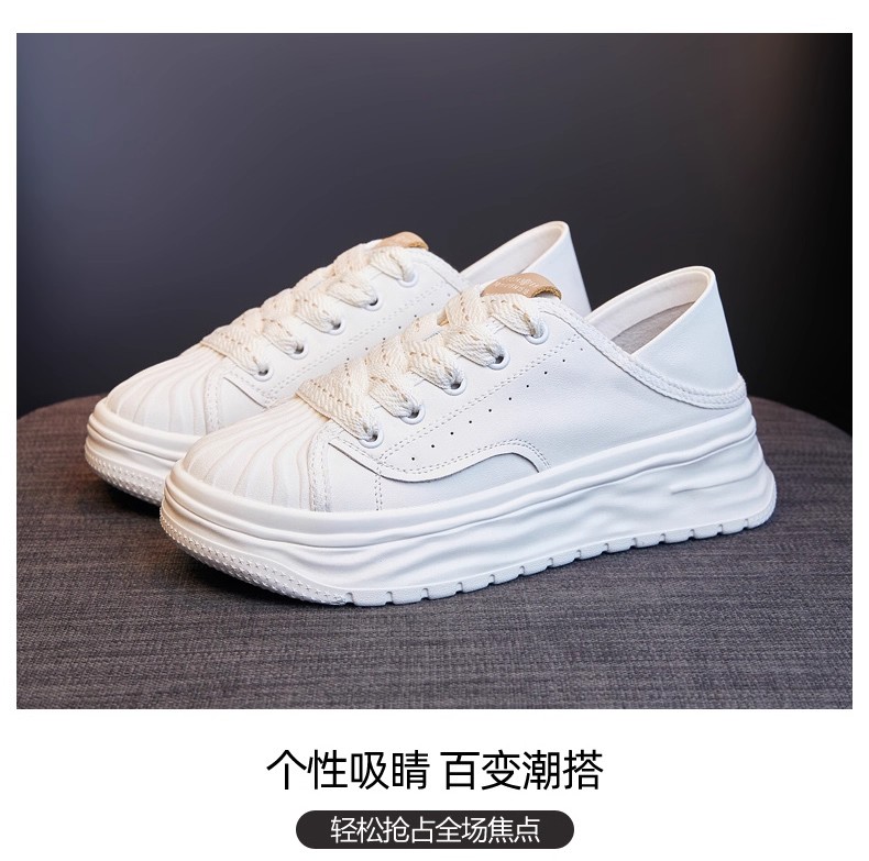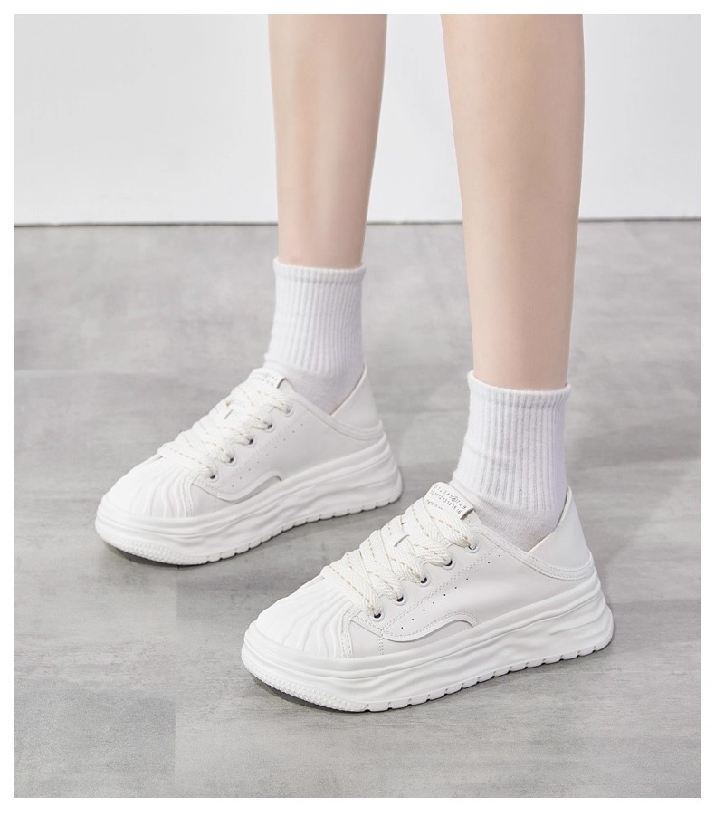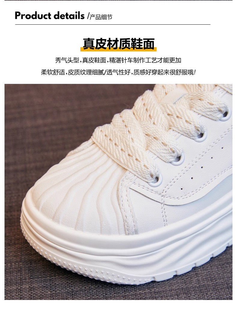 Hong Kong Genuine Leather Shell Toe Sports Casual Shoes for Women 2025 Autumn New Thick-Soled White Shoes Fashionable Lace-Up Sneakers