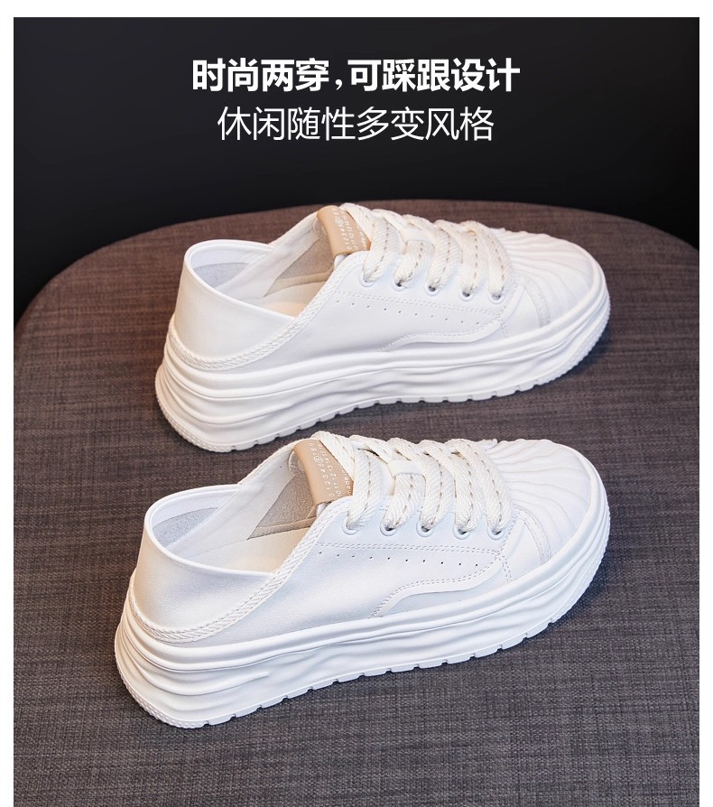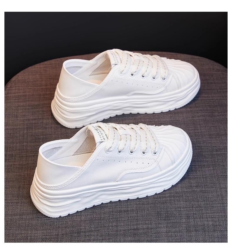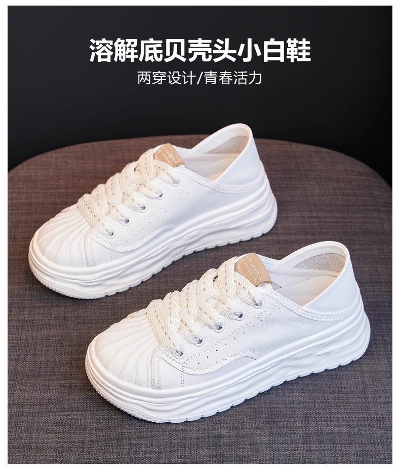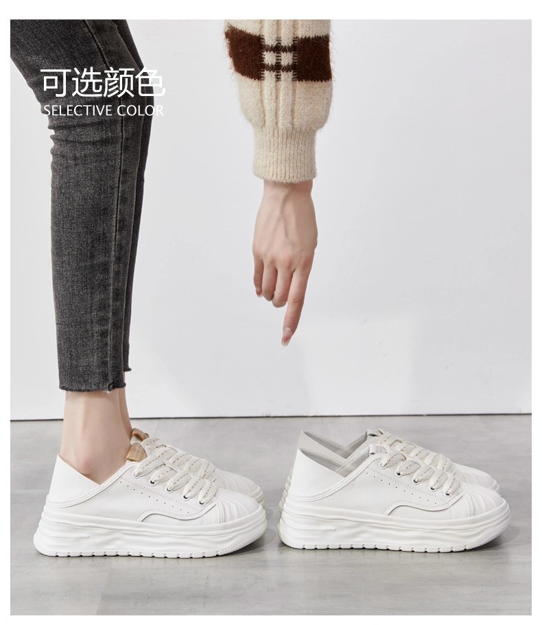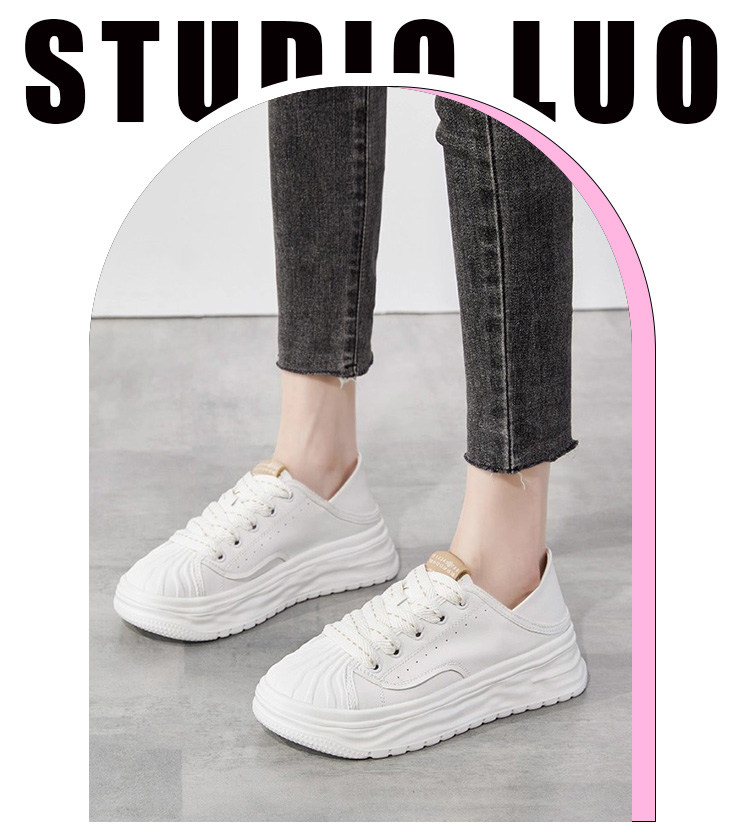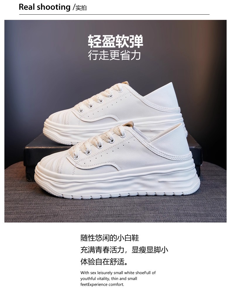 Hong Kong Genuine Leather Shell Toe Sports Casual Shoes for Women 2025 Autumn New Thick-Soled White Shoes Fashionable Lace-Up Sneakers