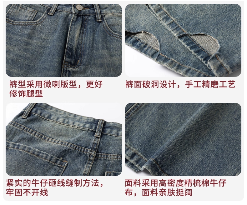 Madwitch American Cleanfit Casual Straight Wide-Leg Jeans for Men, Retro Vintage Loose Pants