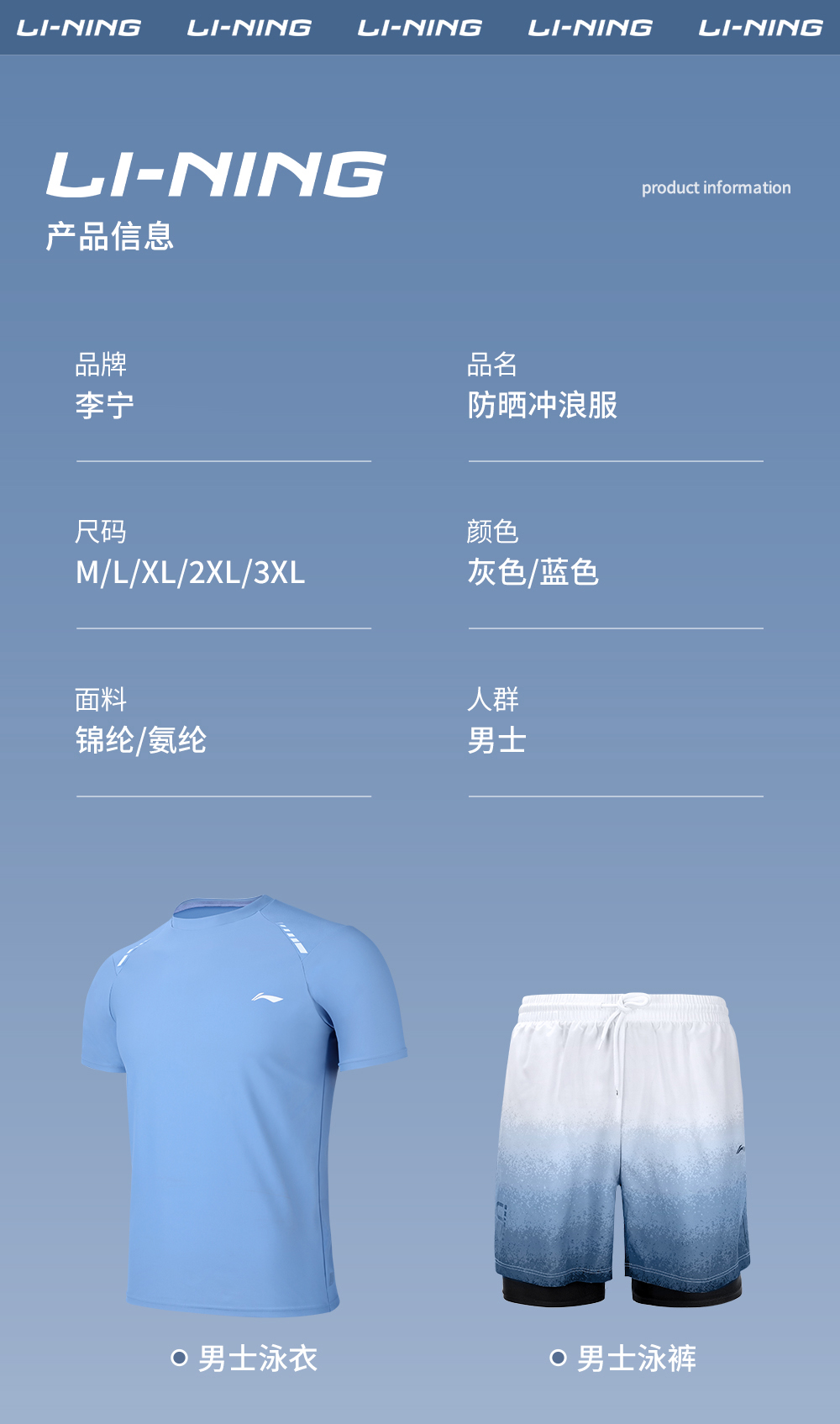 Li Ning Men's Short-Sleeved Quick-Drying Sun-Protective Swimwear for Hot Springs, Beach, and Seaside, Loose-Fitting Professional Swim Trunks and Swimming Gear