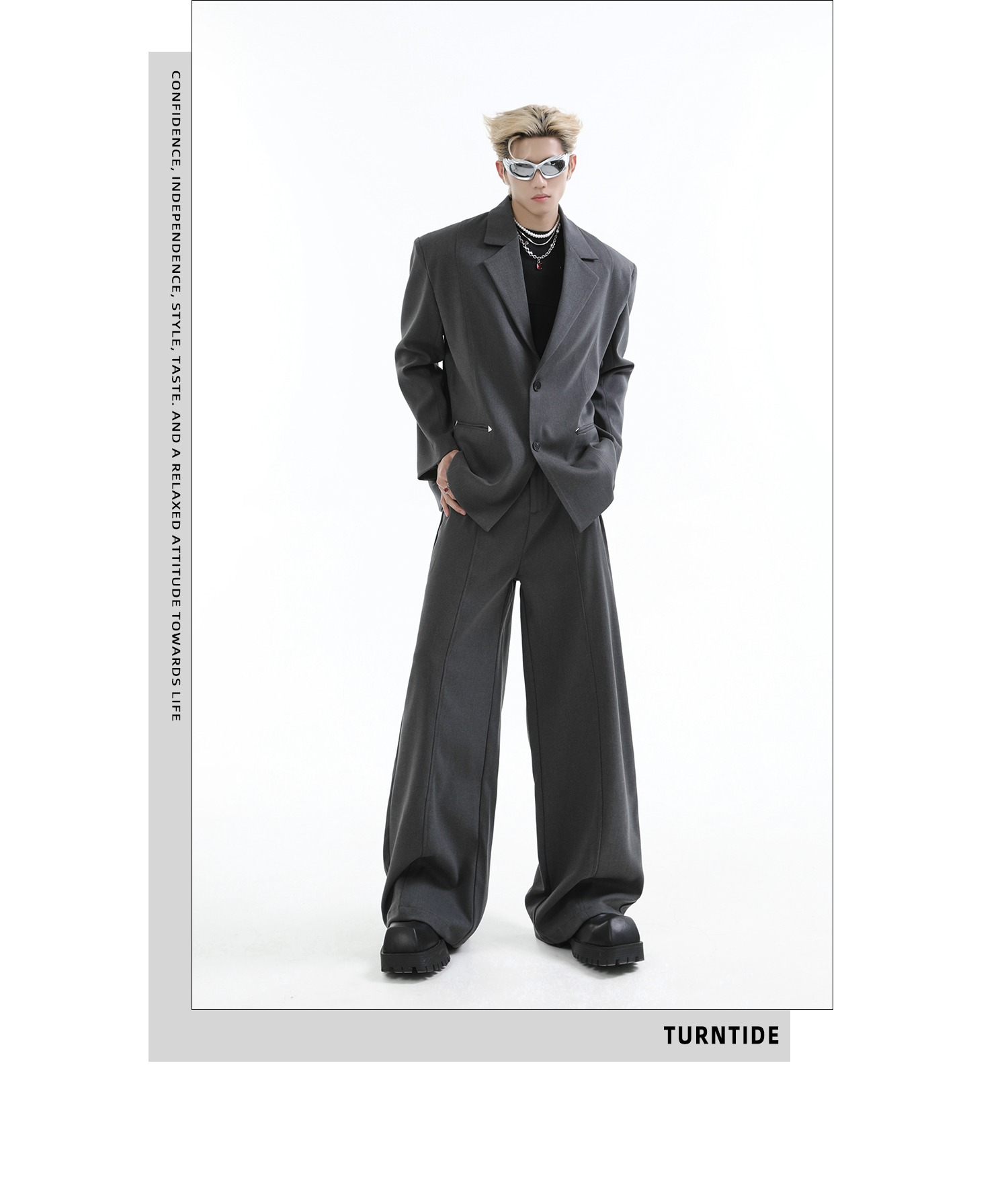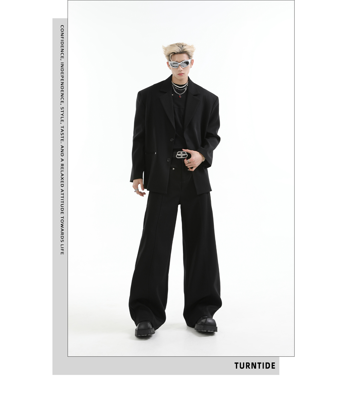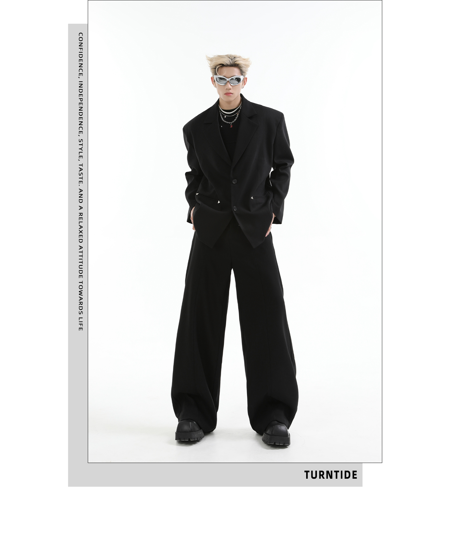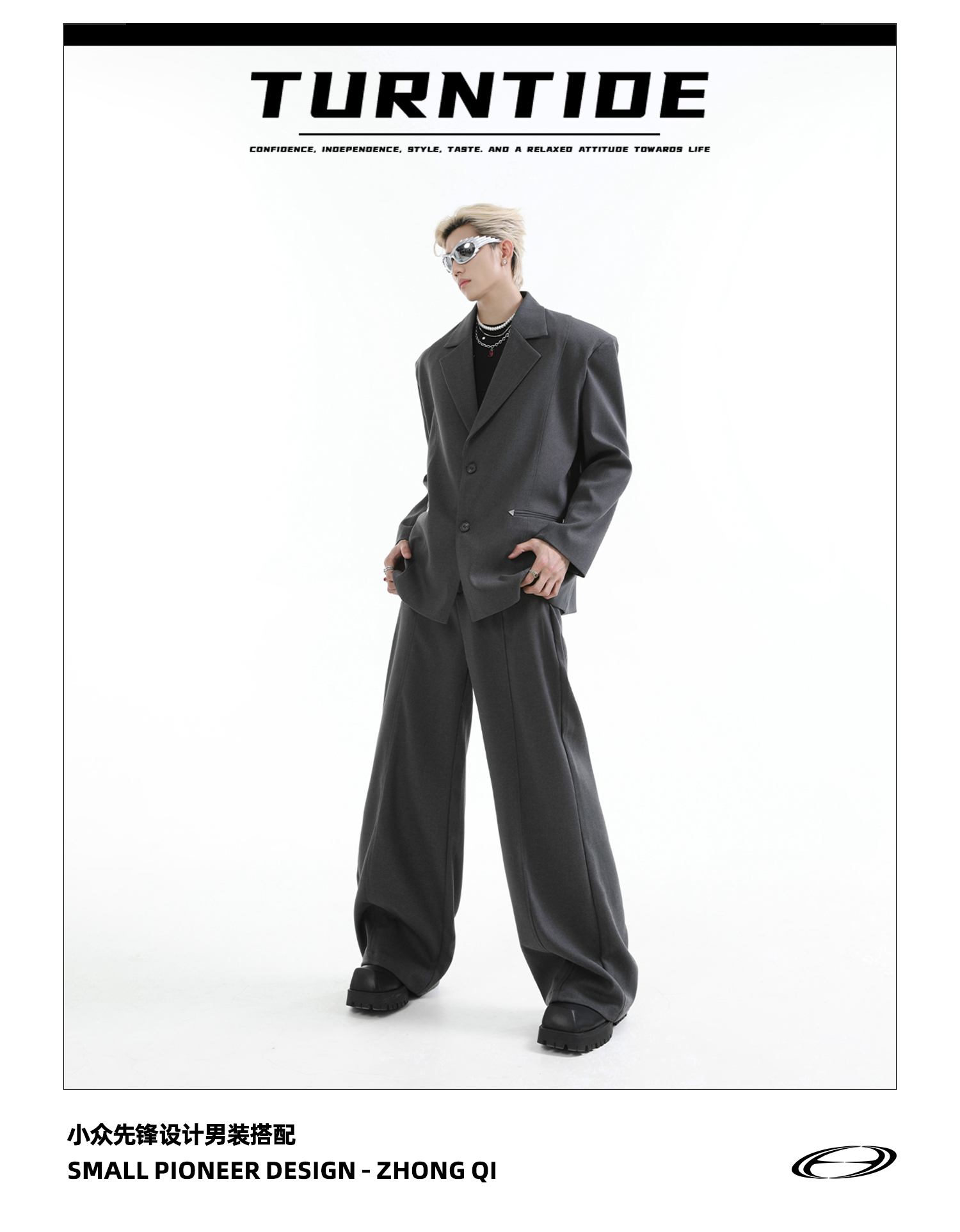 Turntide High-End Minimalist Three-Dimensional Silhouette Suit, Elegant and Sophisticated Wide-Leg Deconstructed Trousers for Men