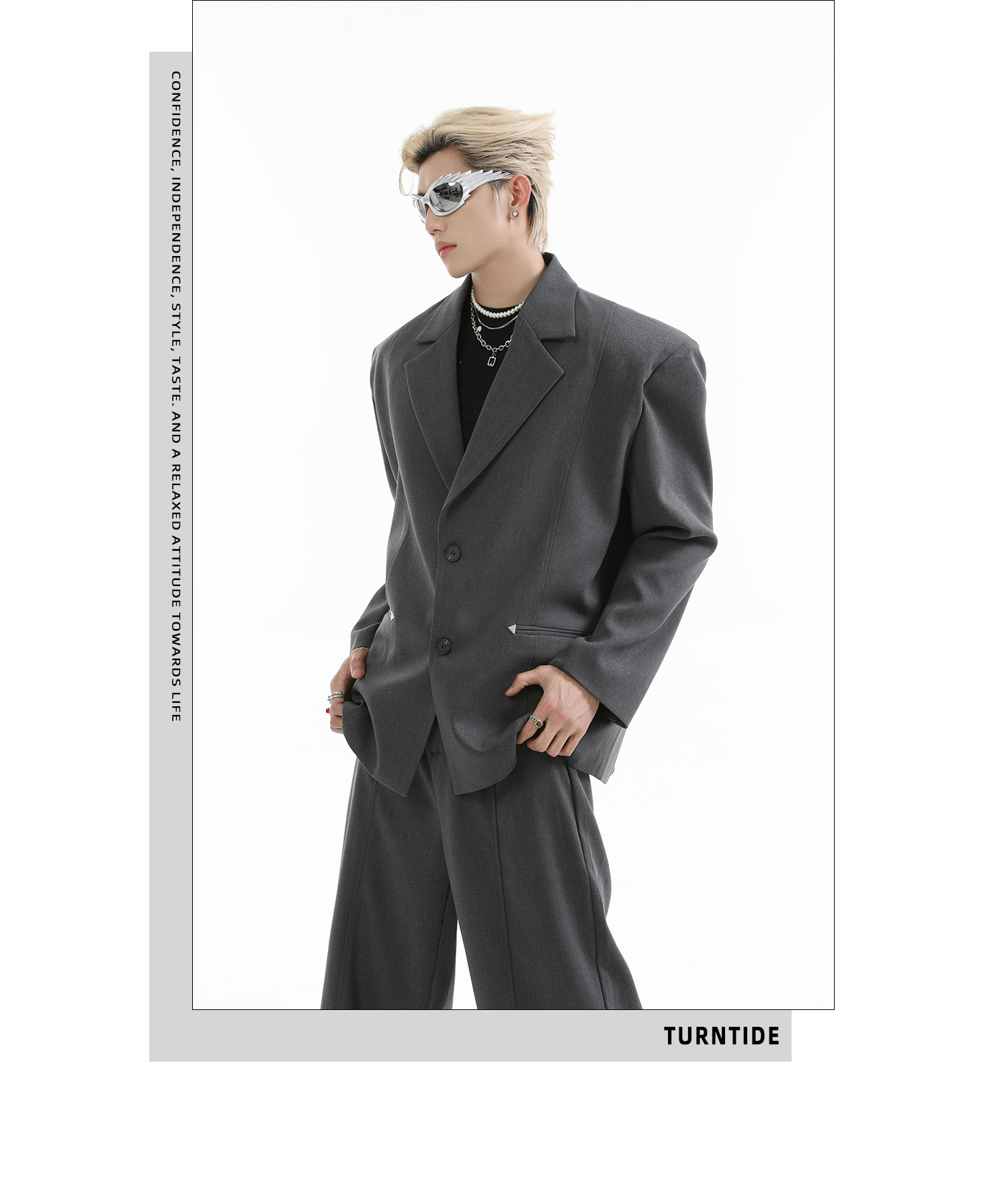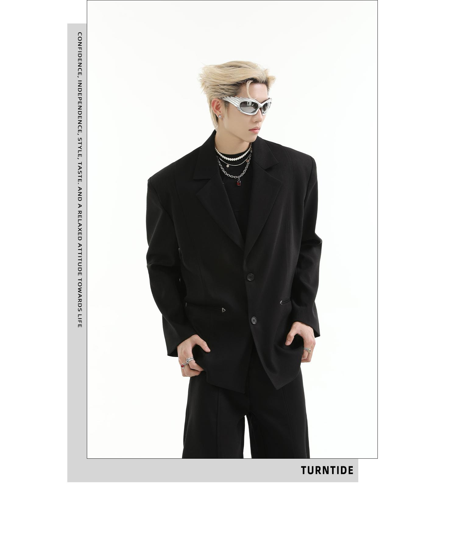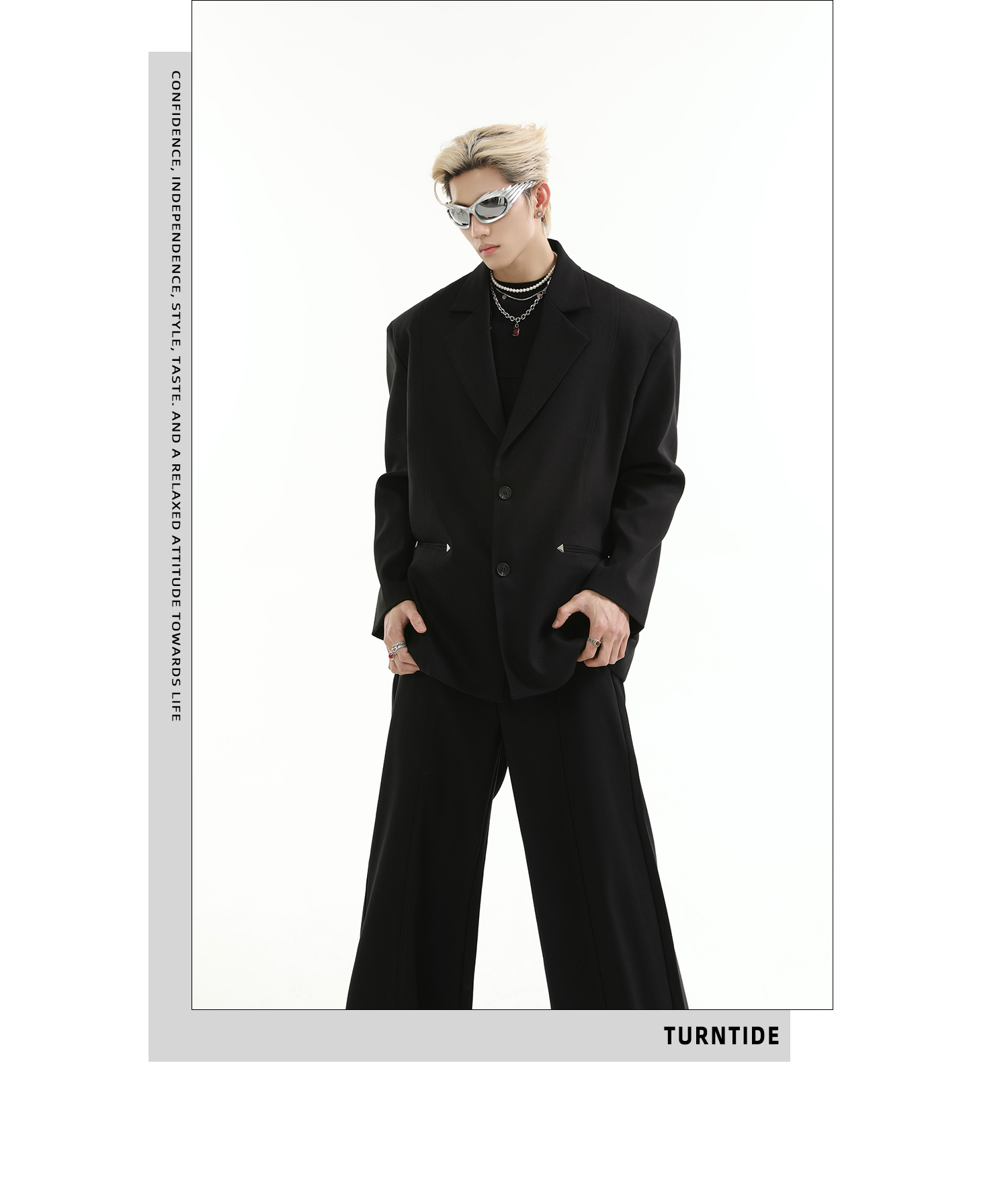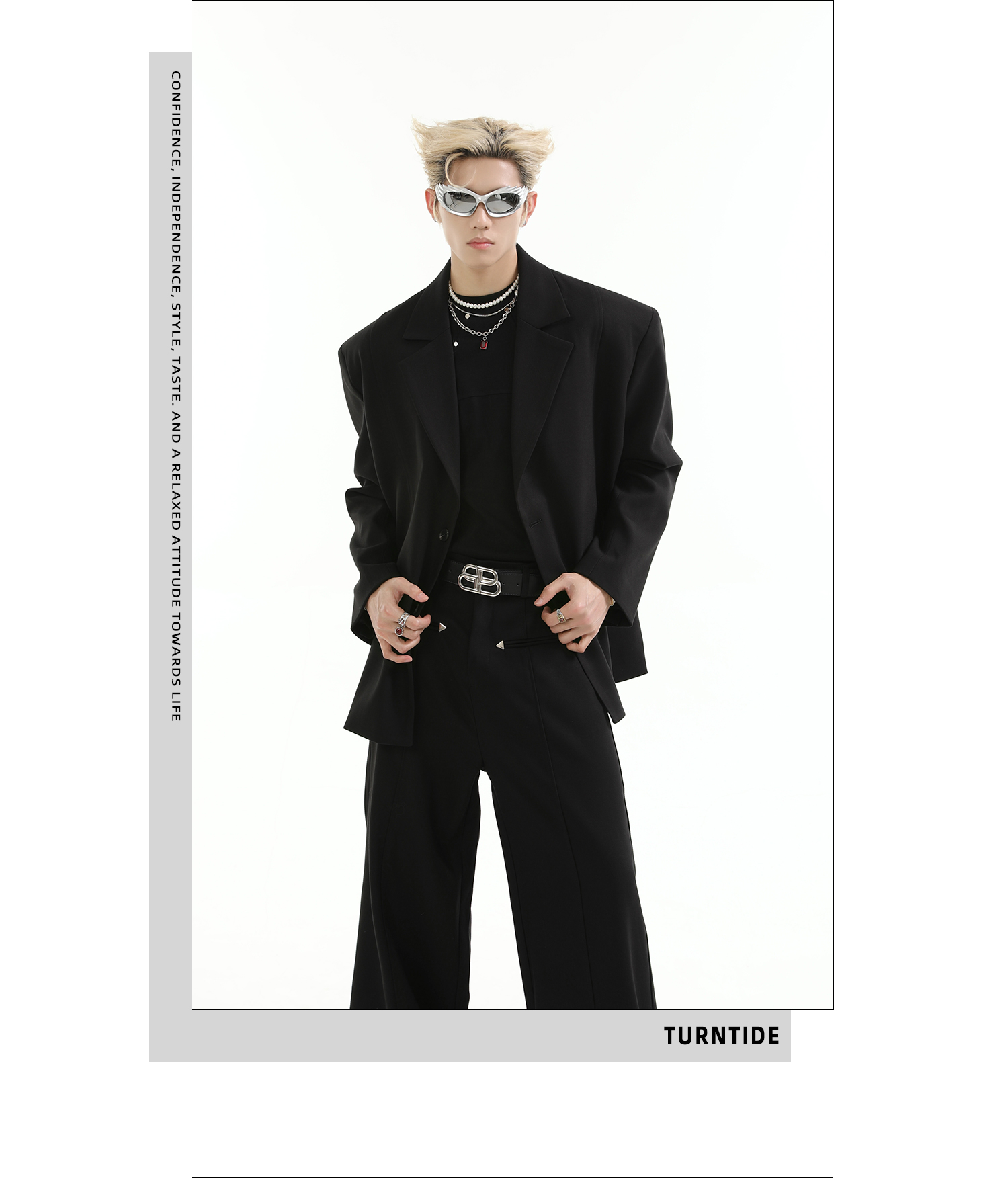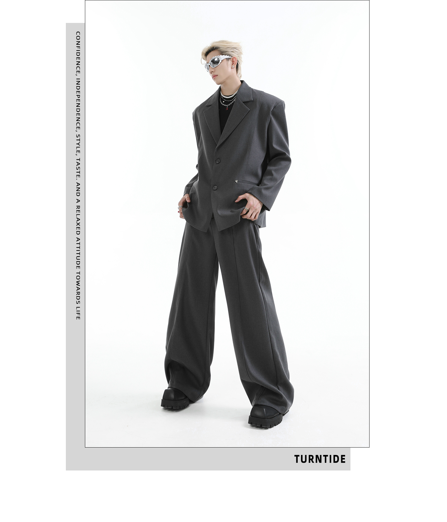 Turntide High-End Minimalist Three-Dimensional Silhouette Suit, Elegant and Sophisticated Wide-Leg Deconstructed Trousers for Men