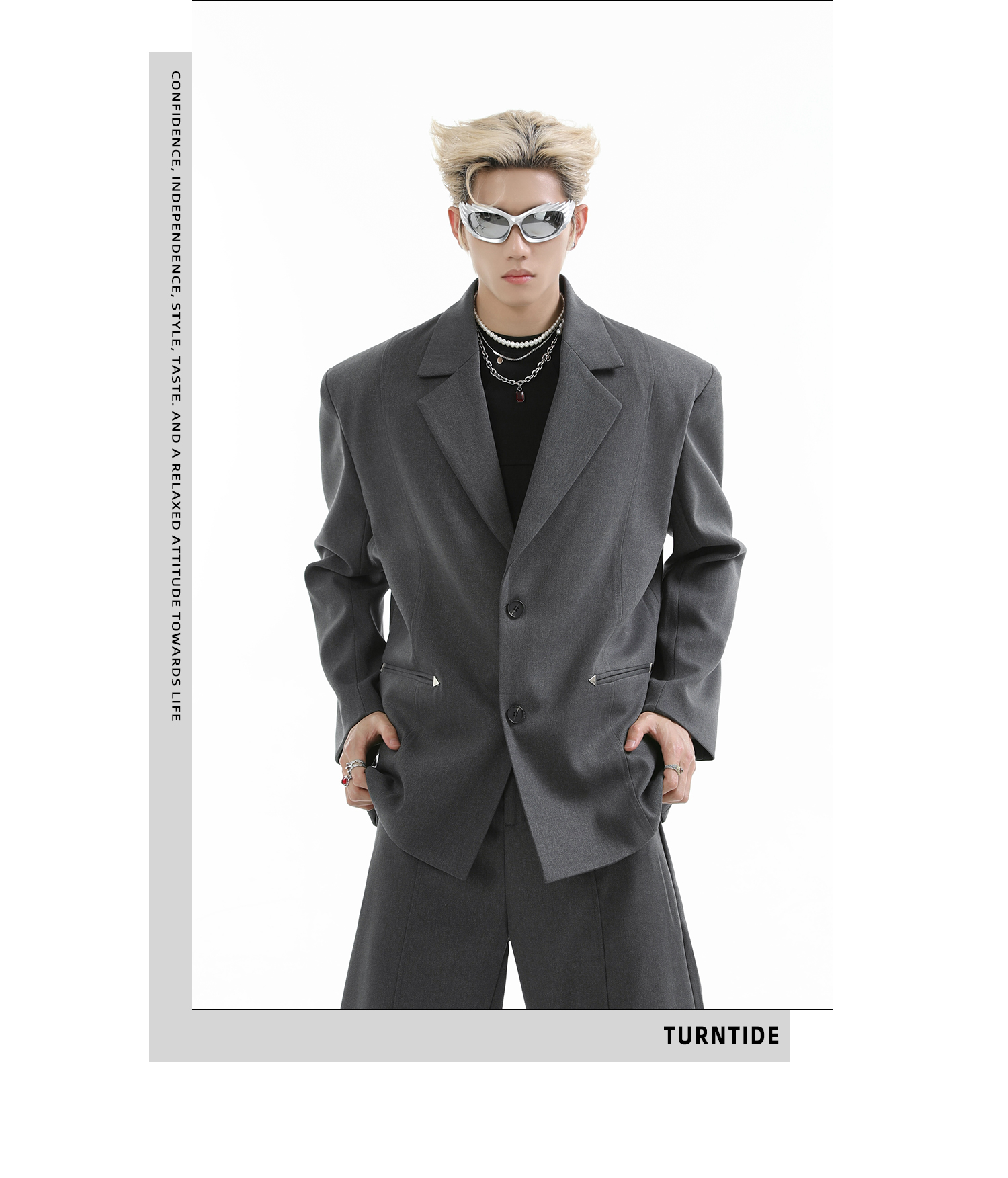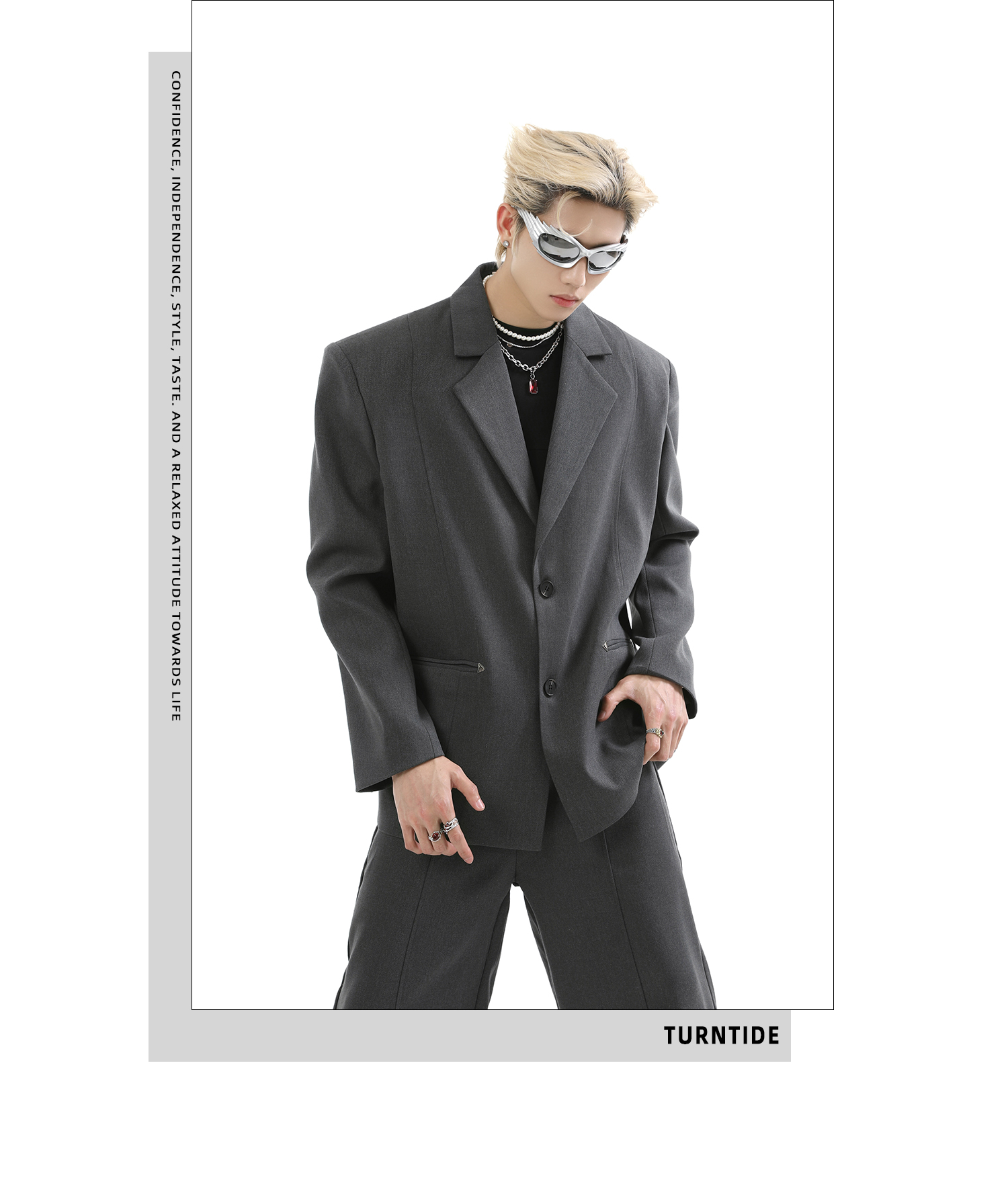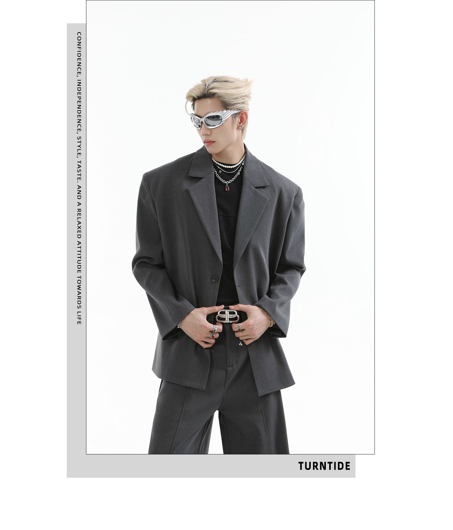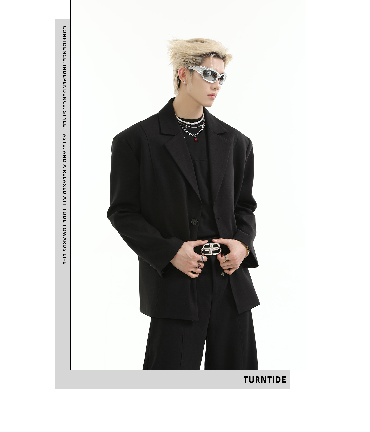 Turntide High-End Minimalist Three-Dimensional Silhouette Suit, Elegant and Sophisticated Wide-Leg Deconstructed Trousers for Men