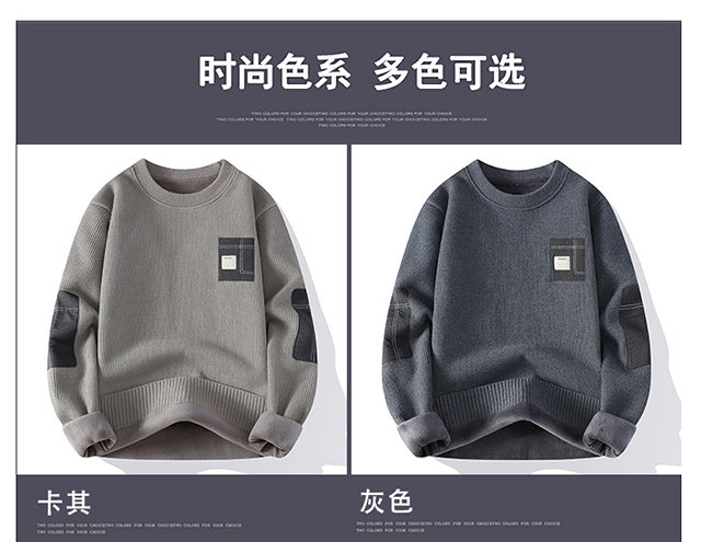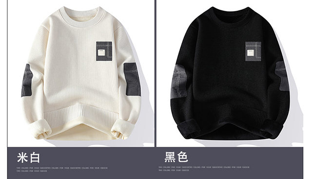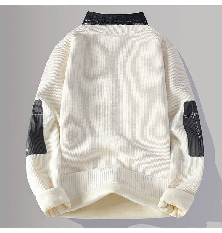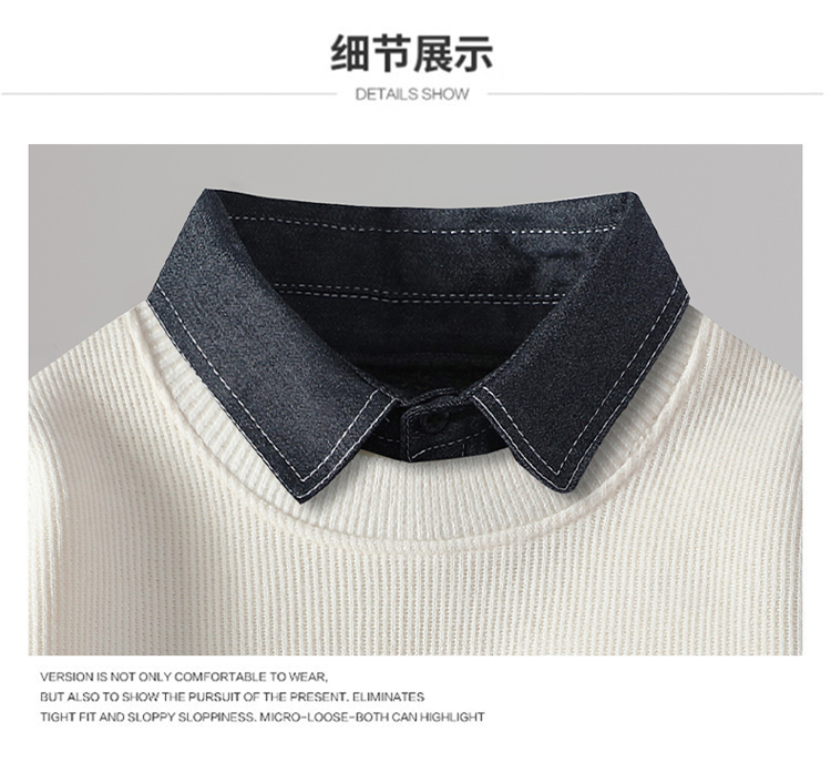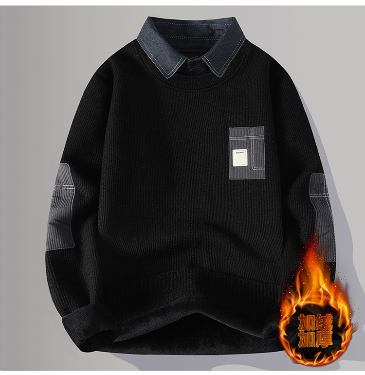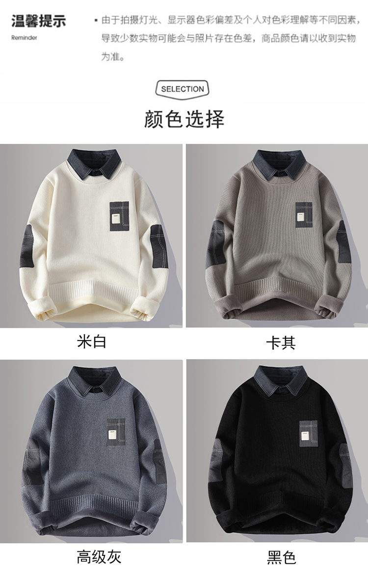 Playboy One-Piece Fleece Sweater for Men, Autumn and Winter, Youth Color-Blocking Fake Two-Piece Casual Warm Shirt Collar Knitwear