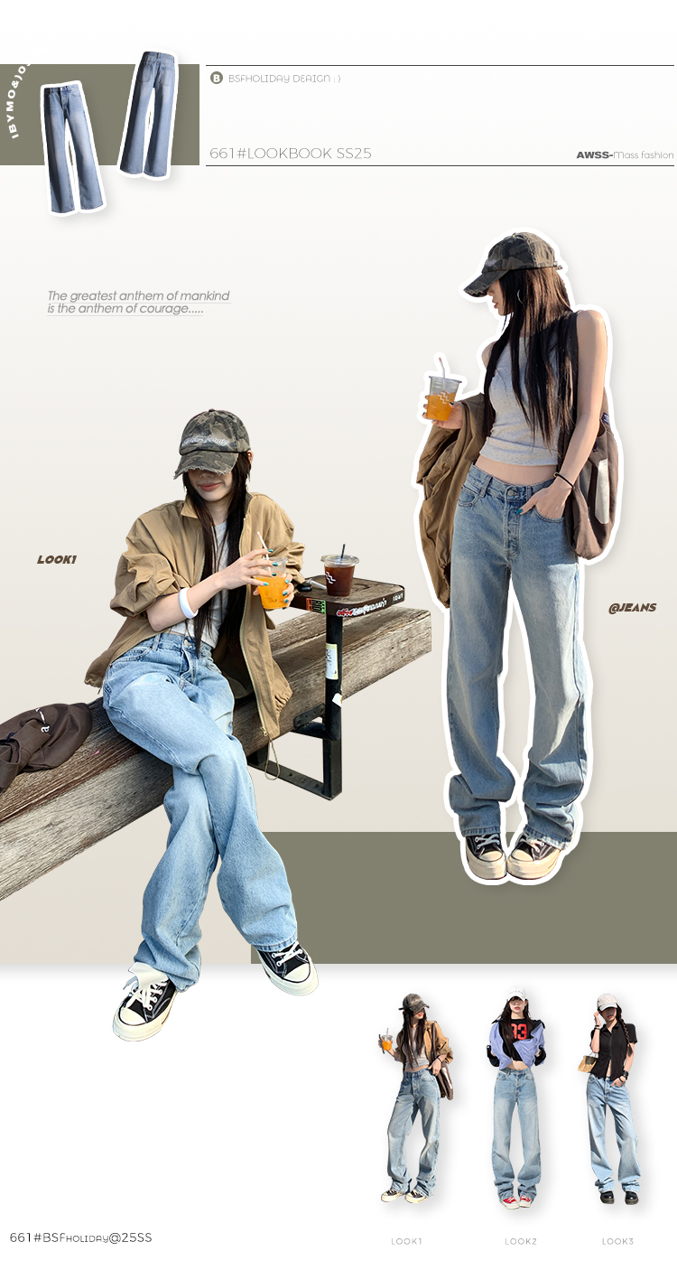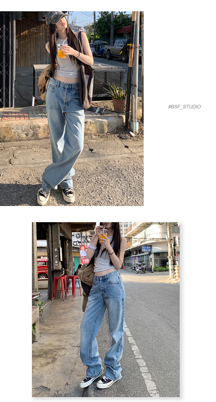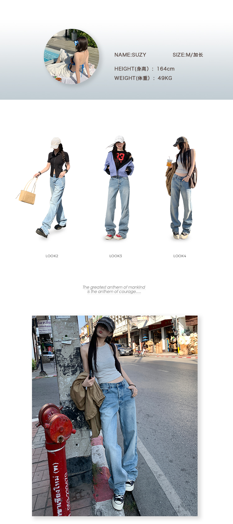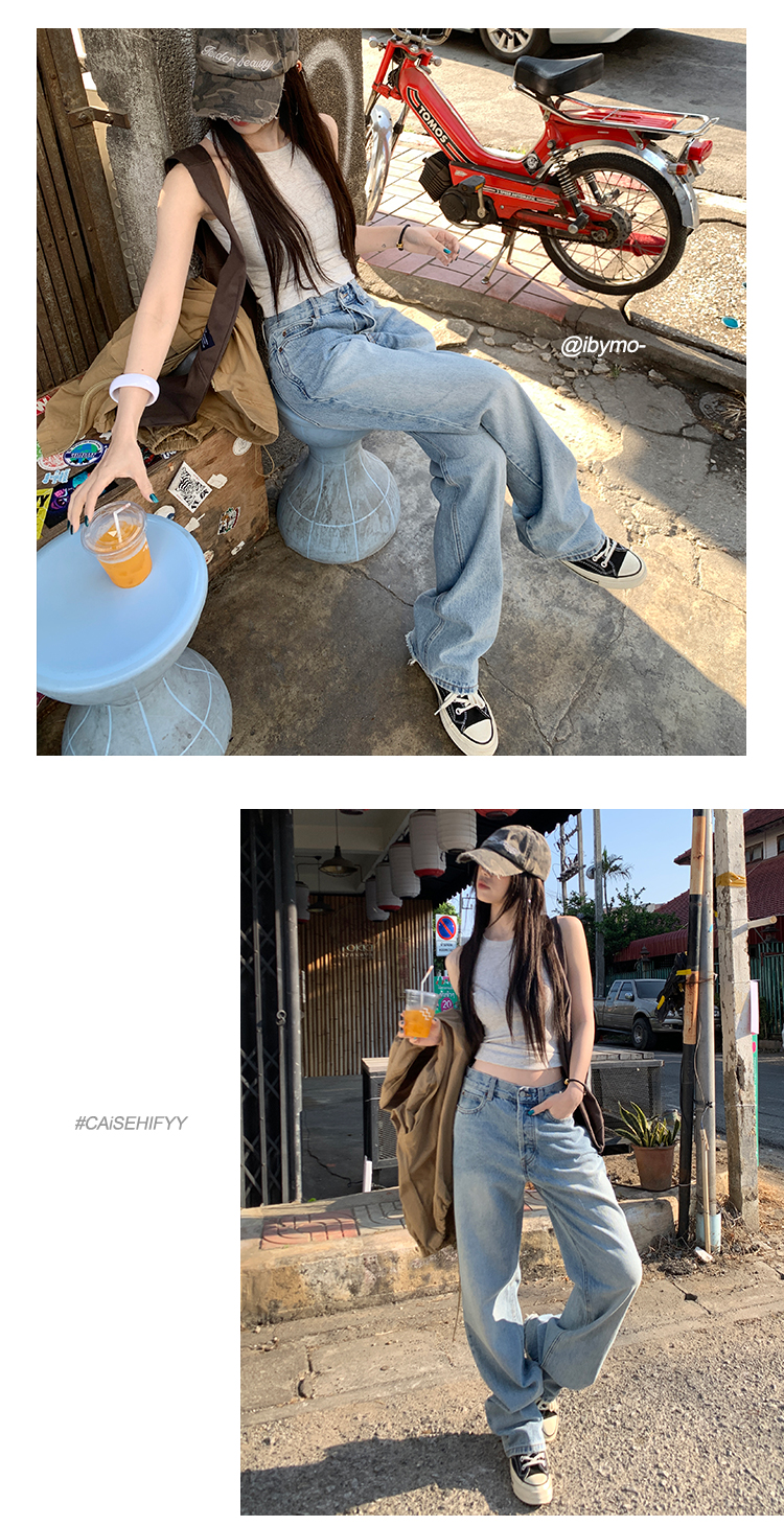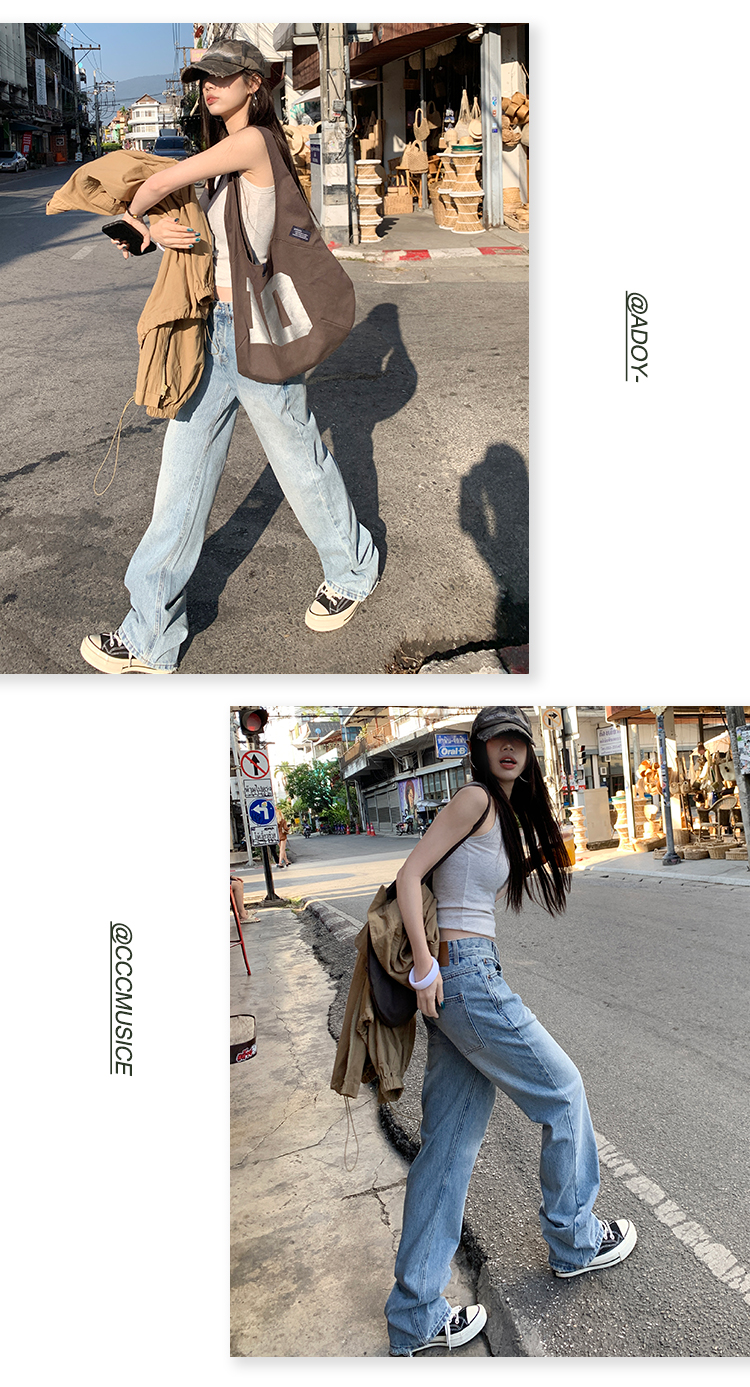 Light Blue Straight-Leg Jeans for Women, 2025 Autumn and Winter New Style, American Style, Slimming, Versatile, Narrow Fit, Loose Pants