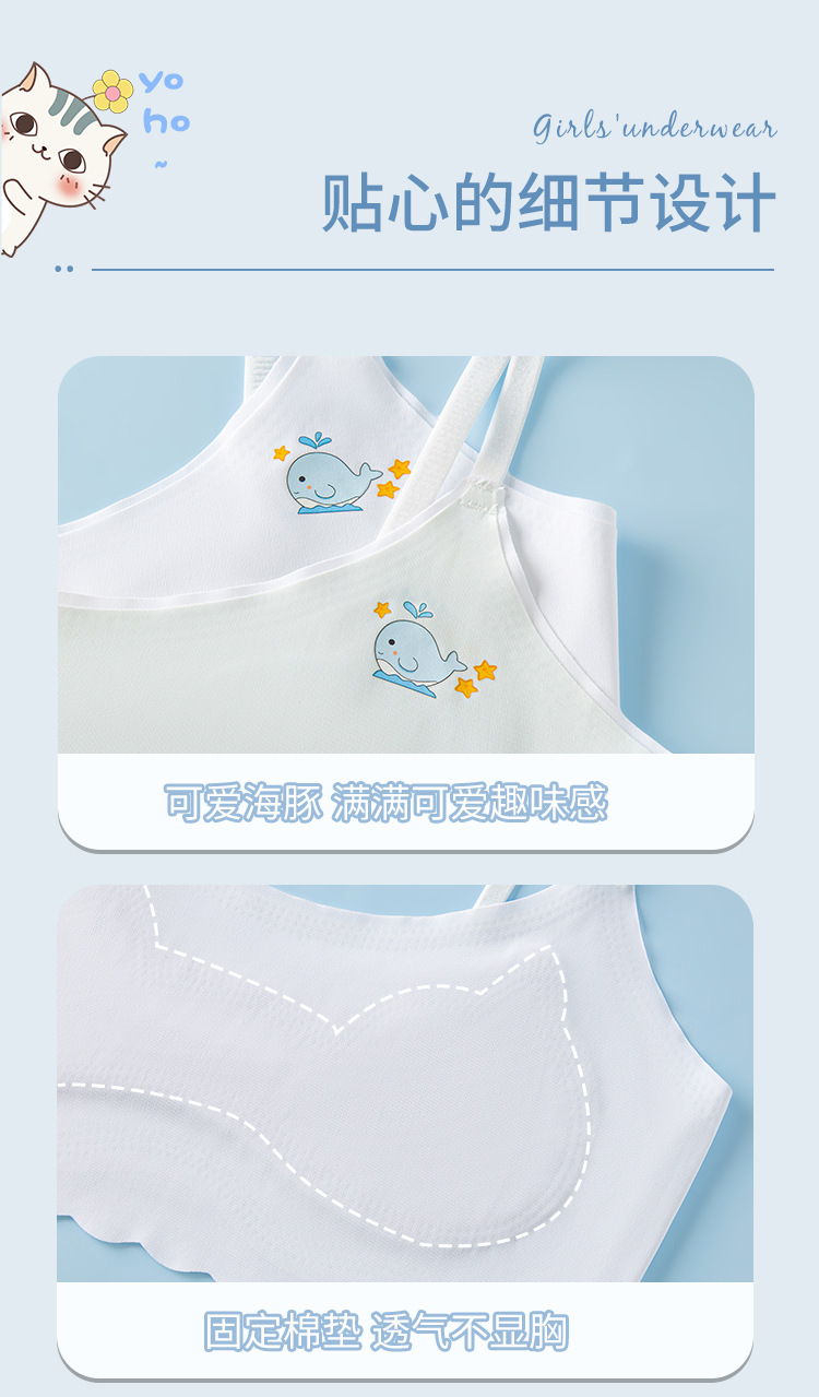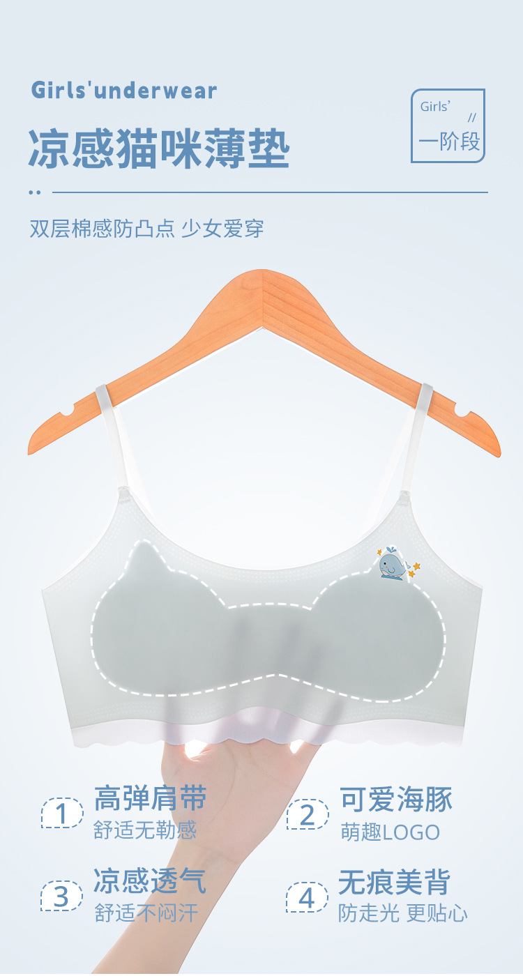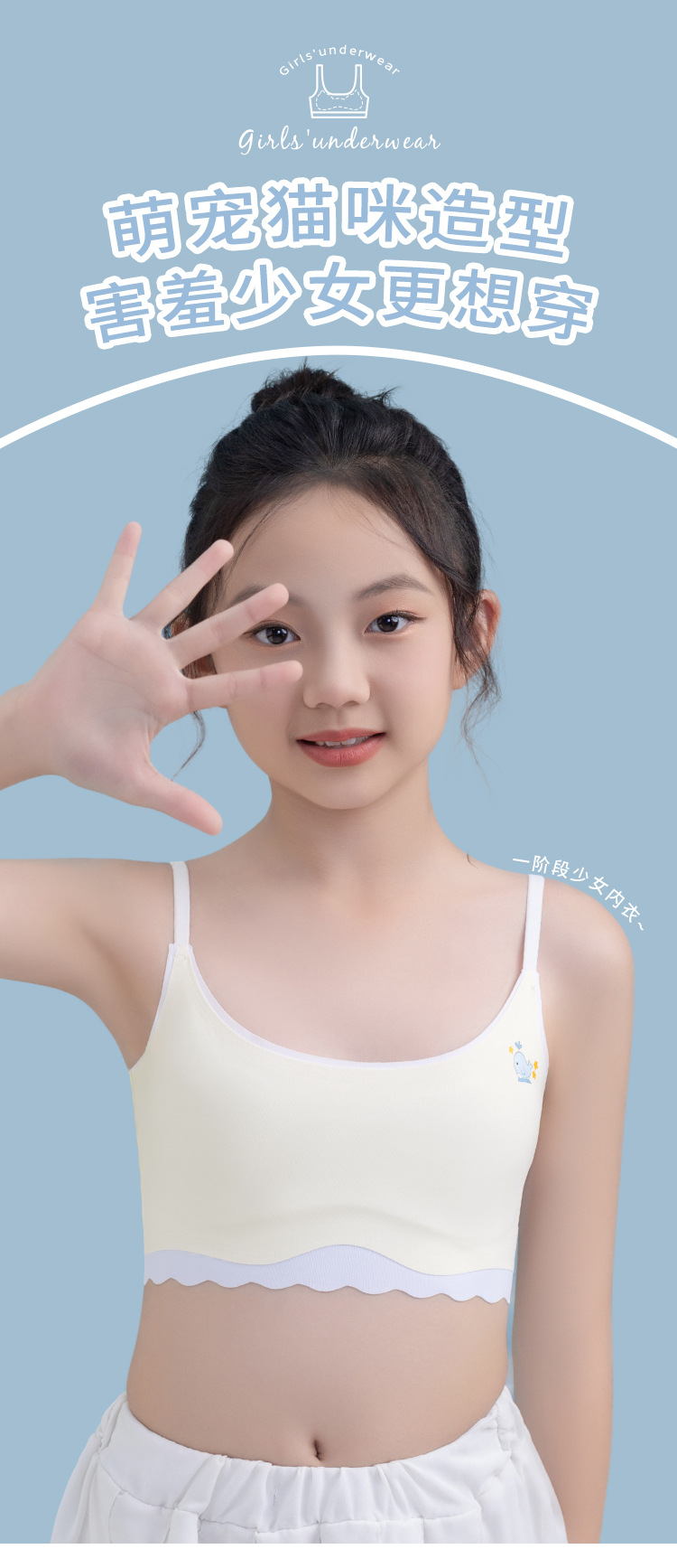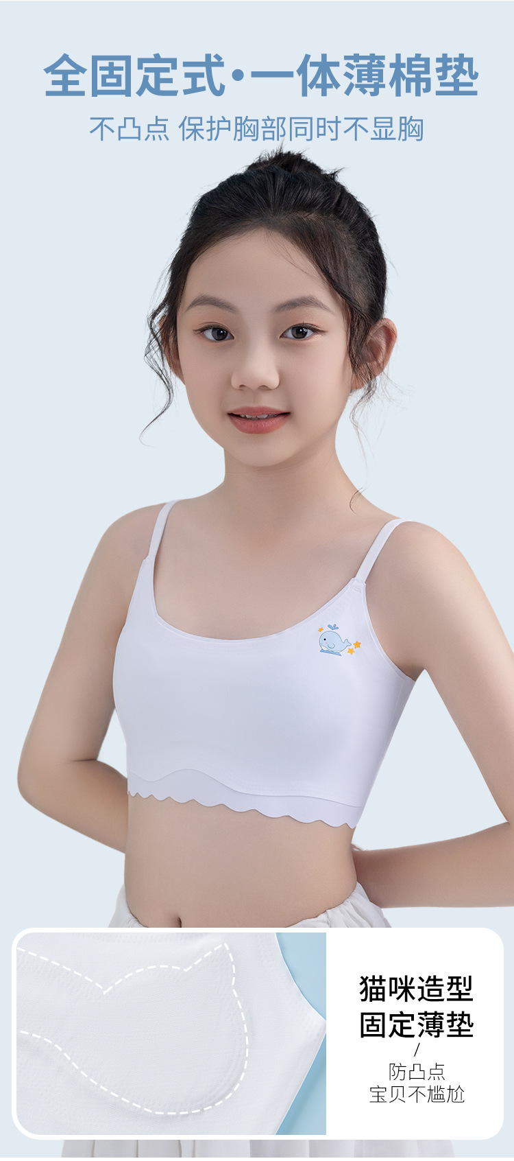 Buy 1 Get 1 Free Seamless Cooling Camisole for Girls Aged 6-12, Elementary School Students, Cat-Themed Underwear, Teen Bra Bb01