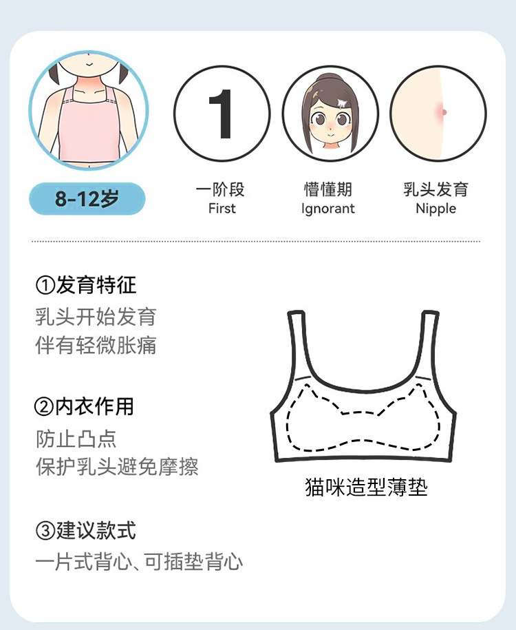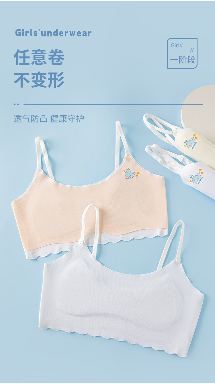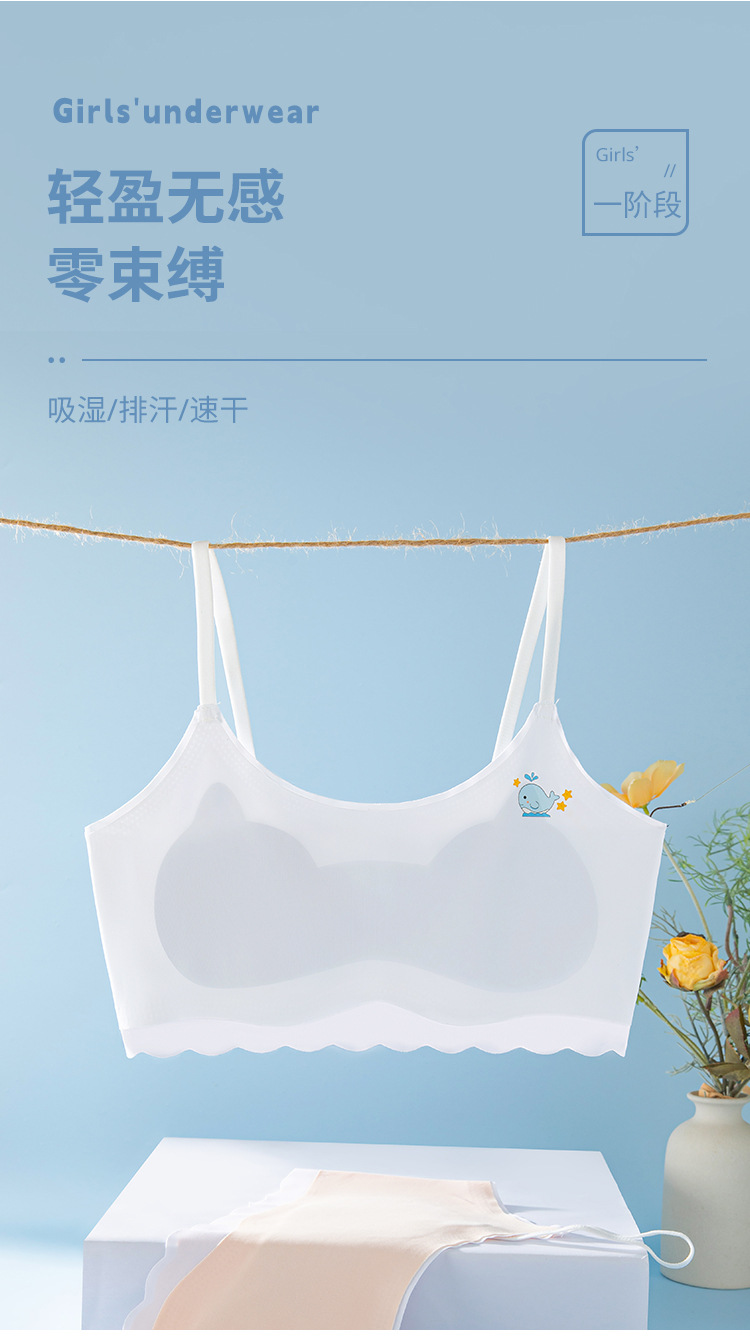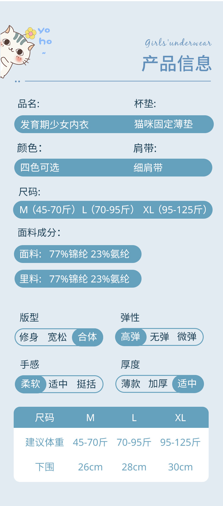 Buy 1 Get 1 Free Seamless Cooling Camisole for Girls Aged 6-12, Elementary School Students, Cat-Themed Underwear, Teen Bra Bb01