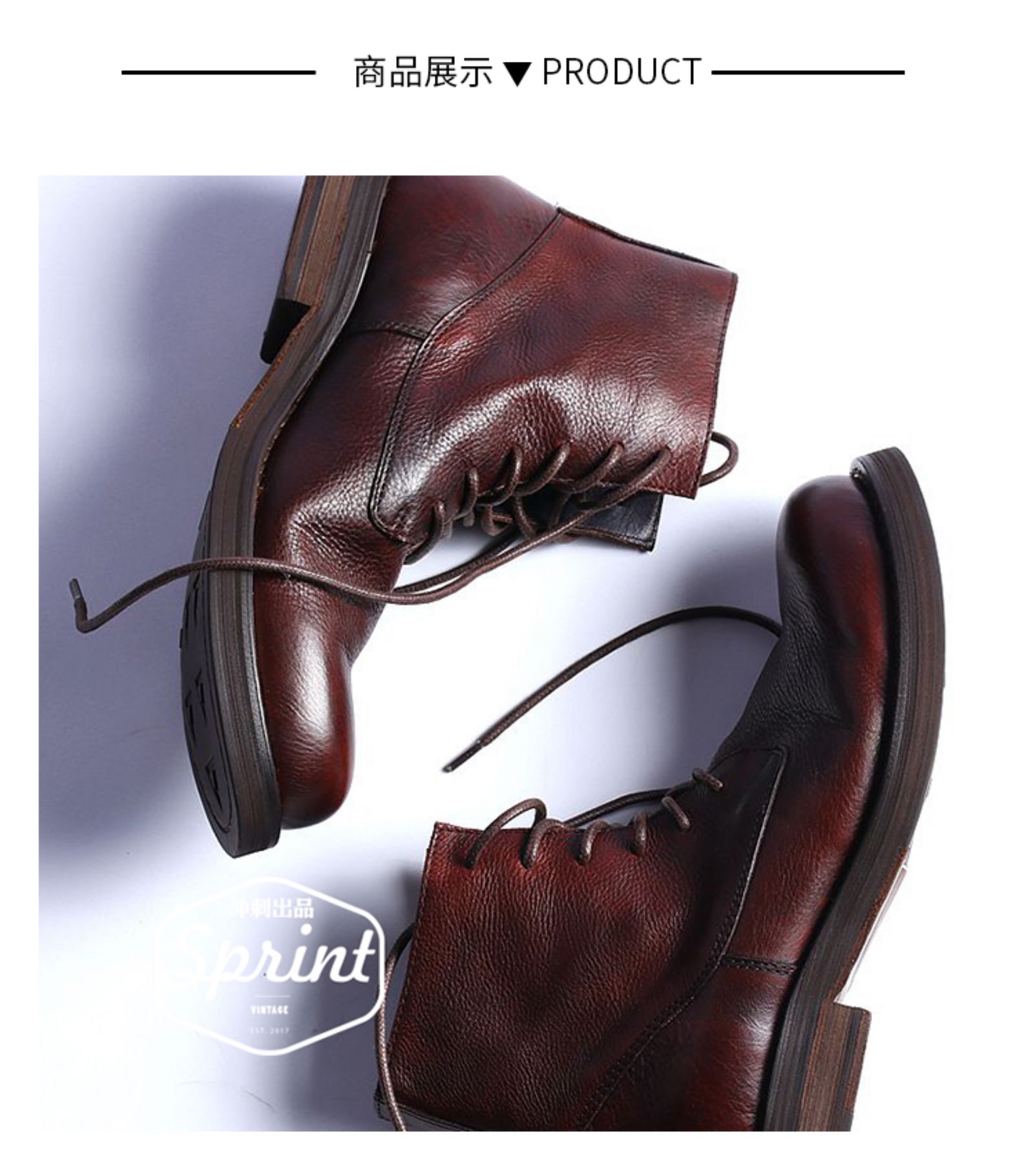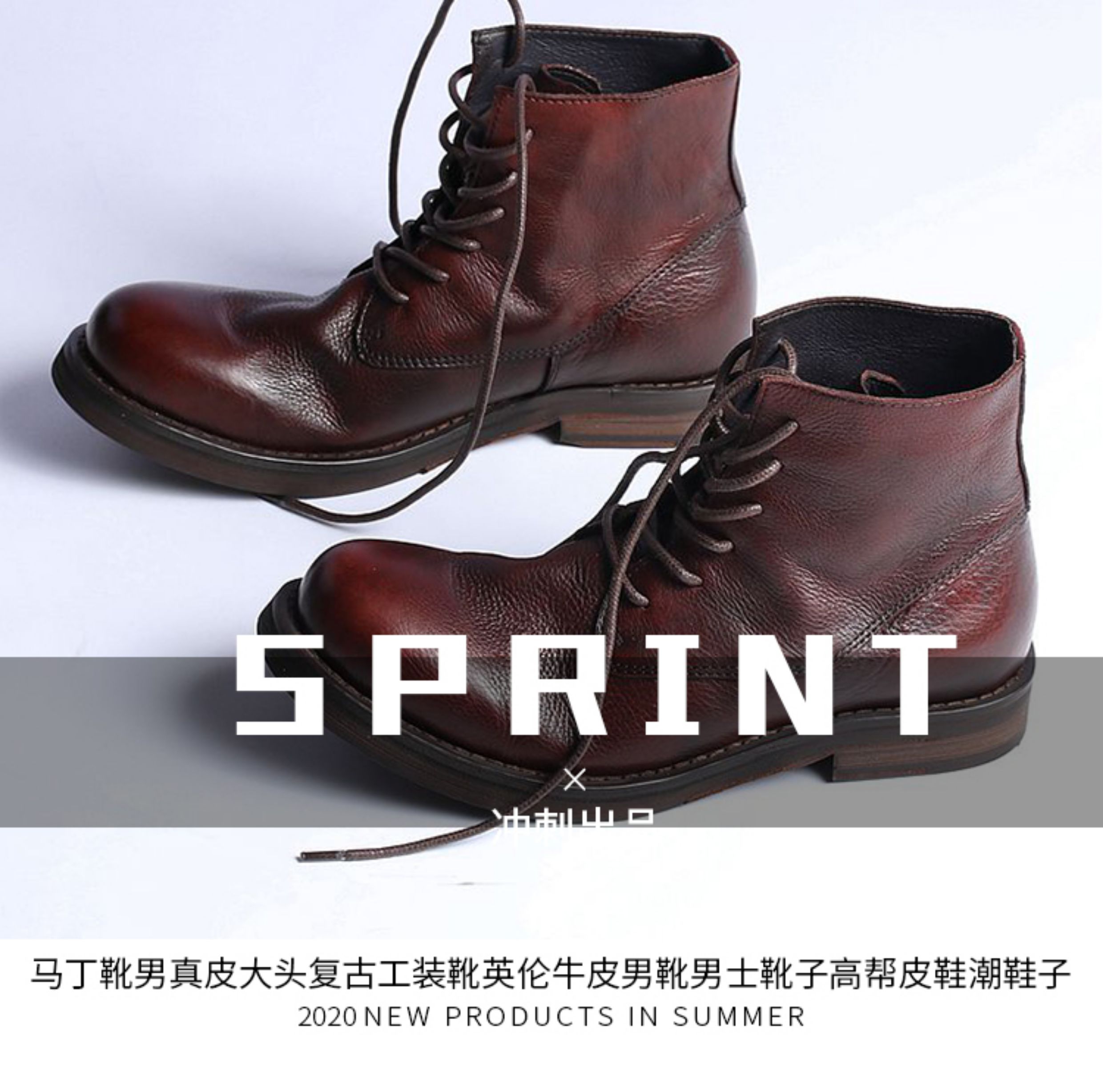 Oversized Martin Boots for Men, Genuine Leather, Large Toe, Retro Work Boots, British Style Cowhide Men's Boots, Men's High-Top Leather Shoes