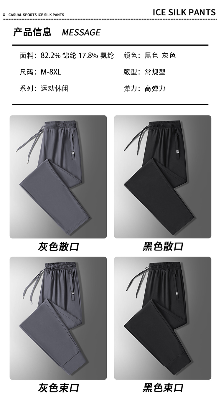 Ice Silk Pants Men's Summer Thin Quick-Drying Pants Men's Casual Pants Loose Pants Plus Size Sports Pants Straight-Leg Long Pants