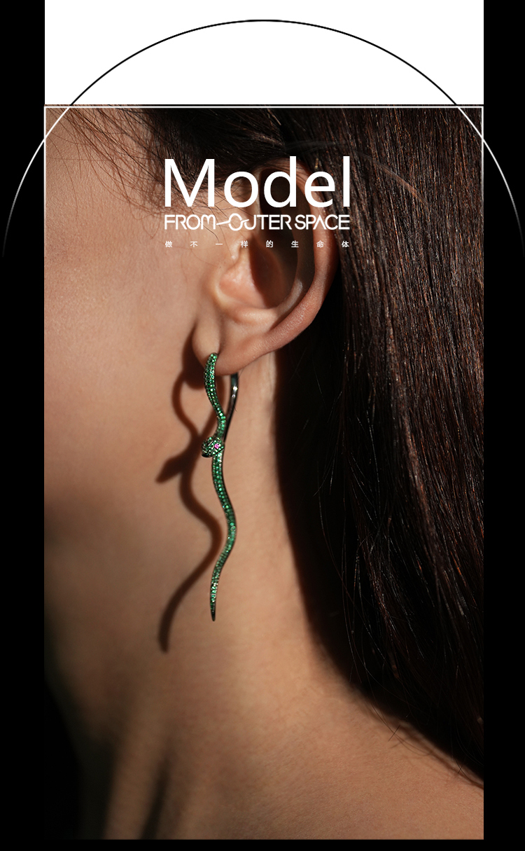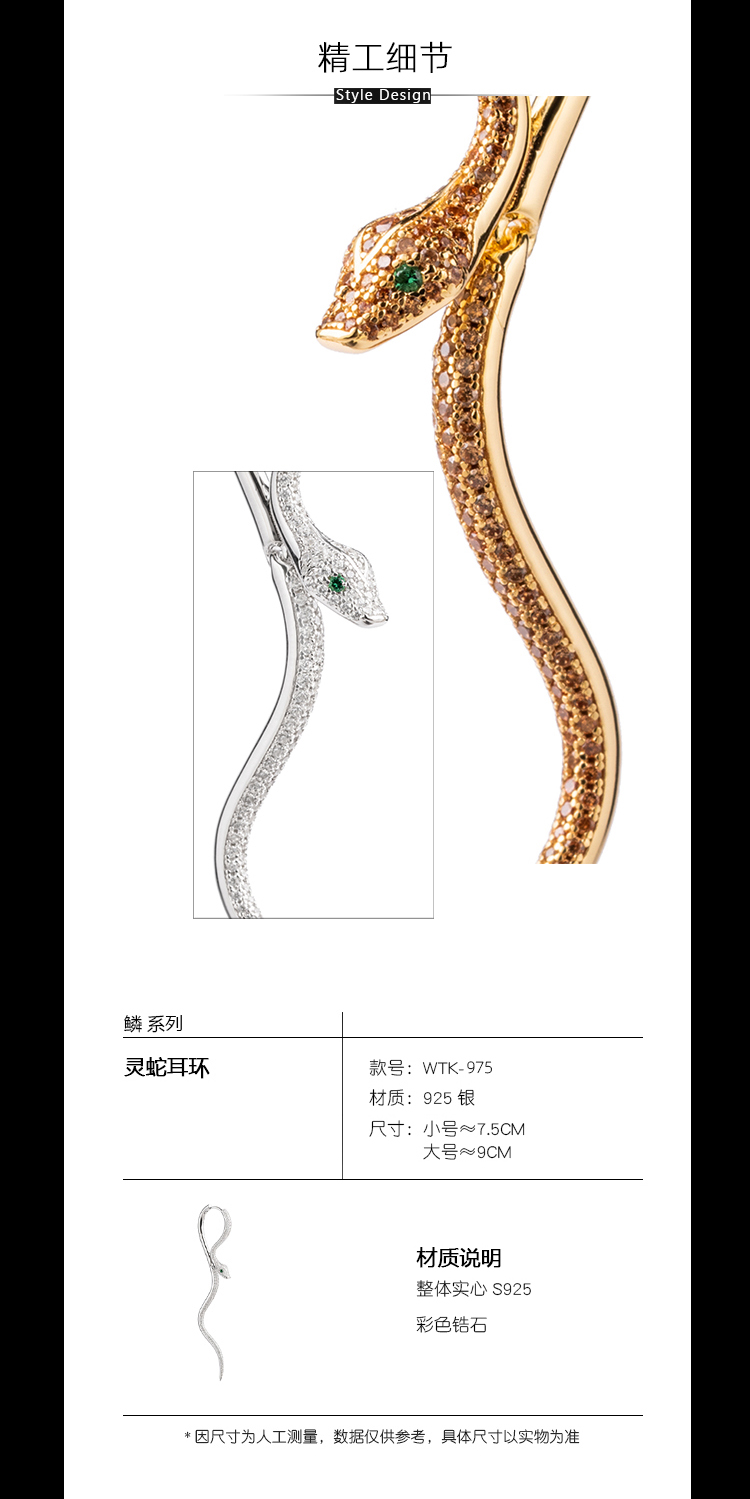 Fos Official Authentic Trendy Earrings Versatile Celebrity Style Snake Full-Embellished Earrings High-End 925 Silver Snake-Shaped Earrings