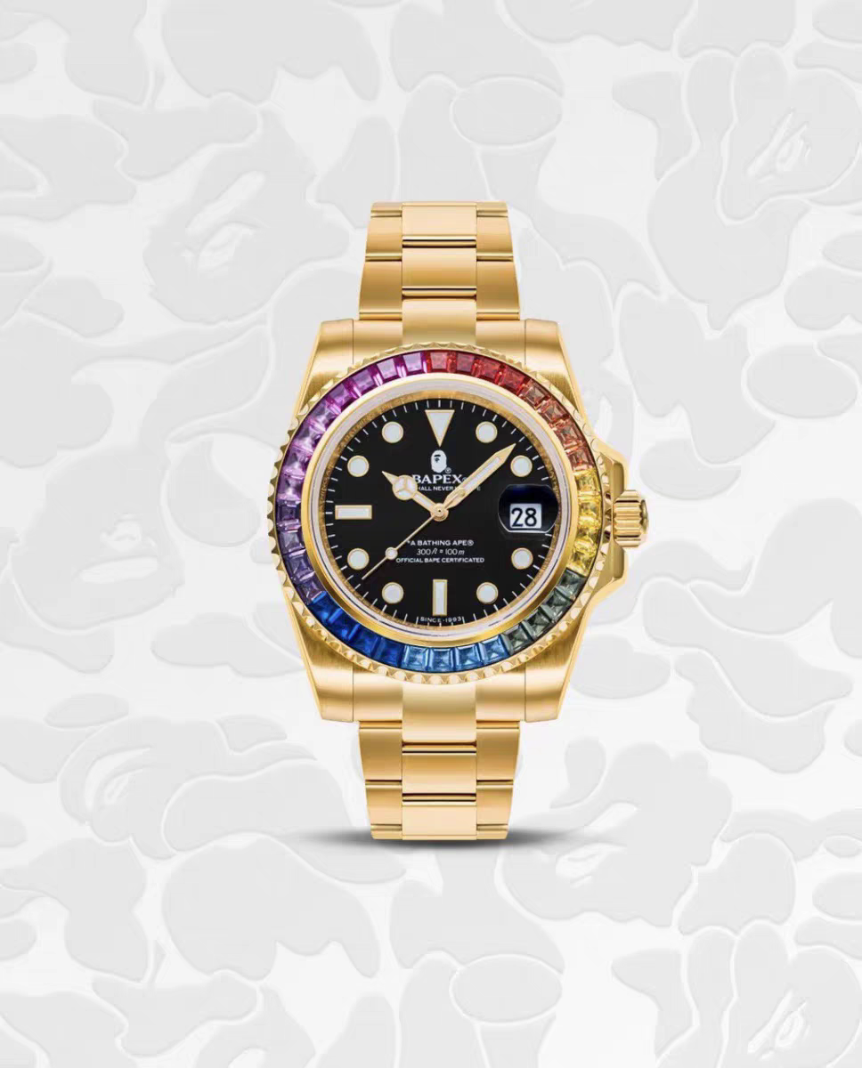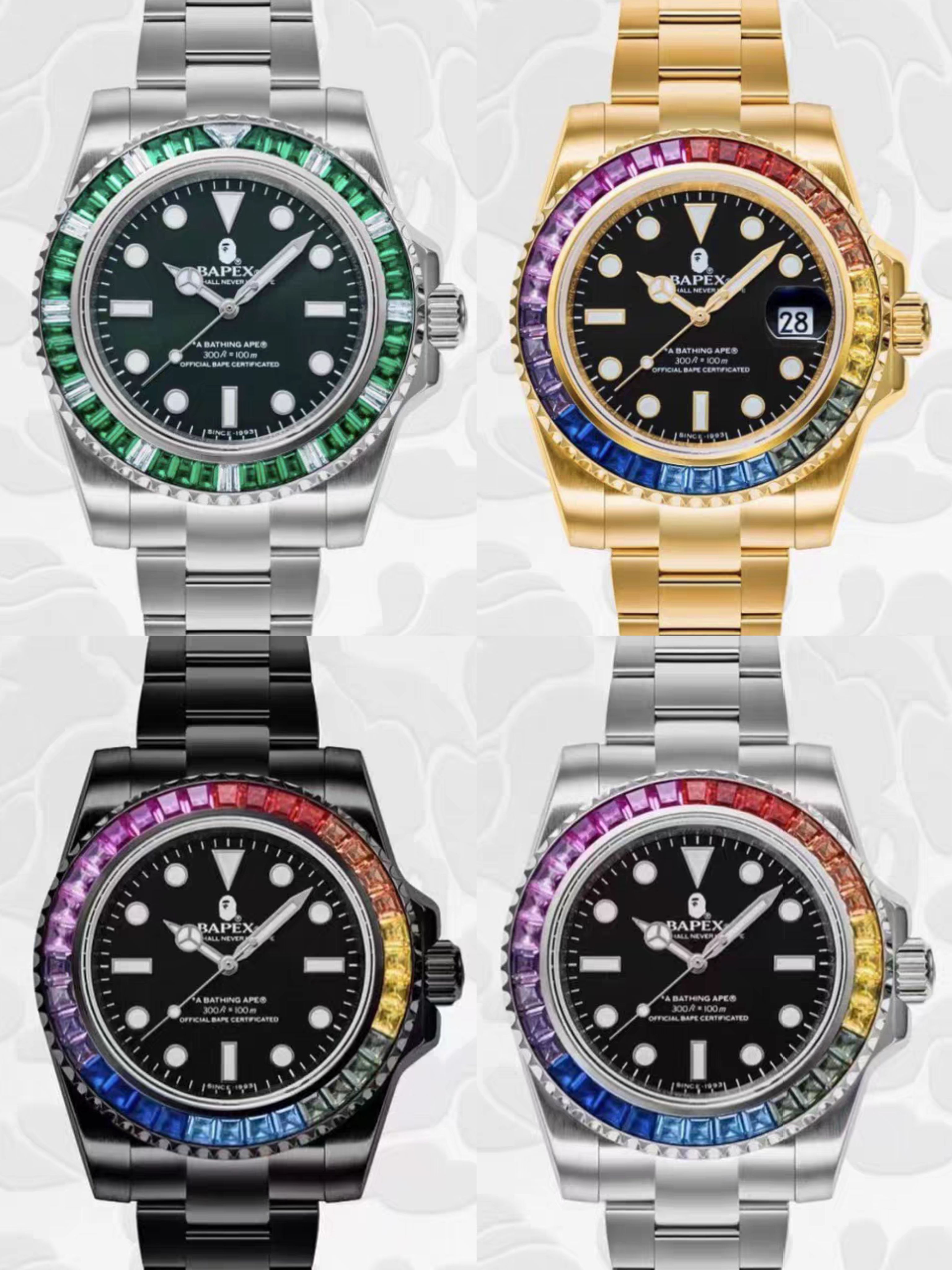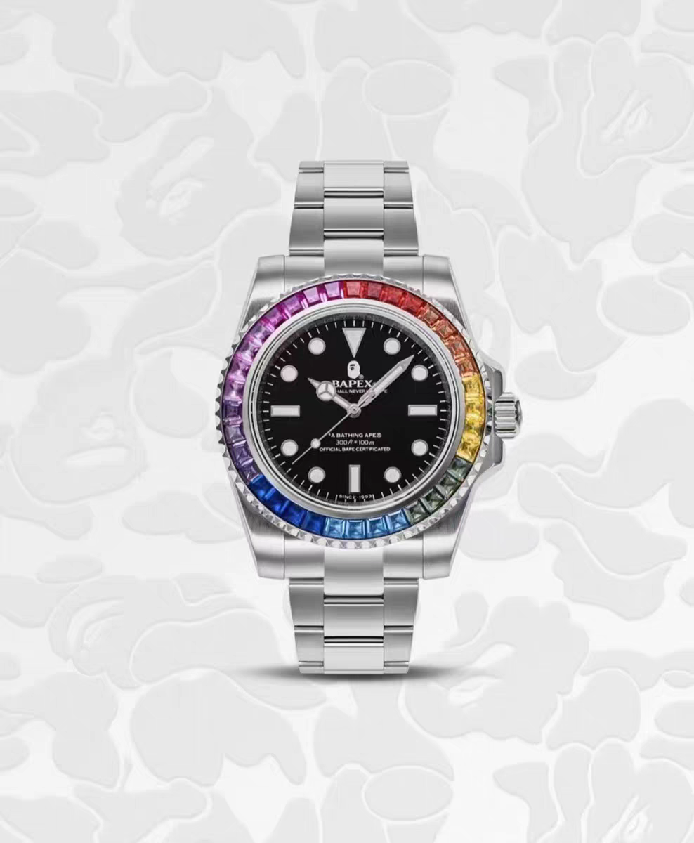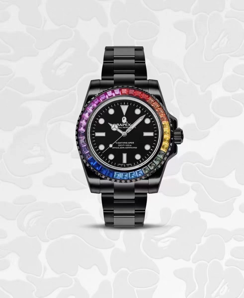 Bape Type1 Bapex Crystal Stone Men's Mechanical Waterproof Stainless Steel Tension Ice Sugar Watch