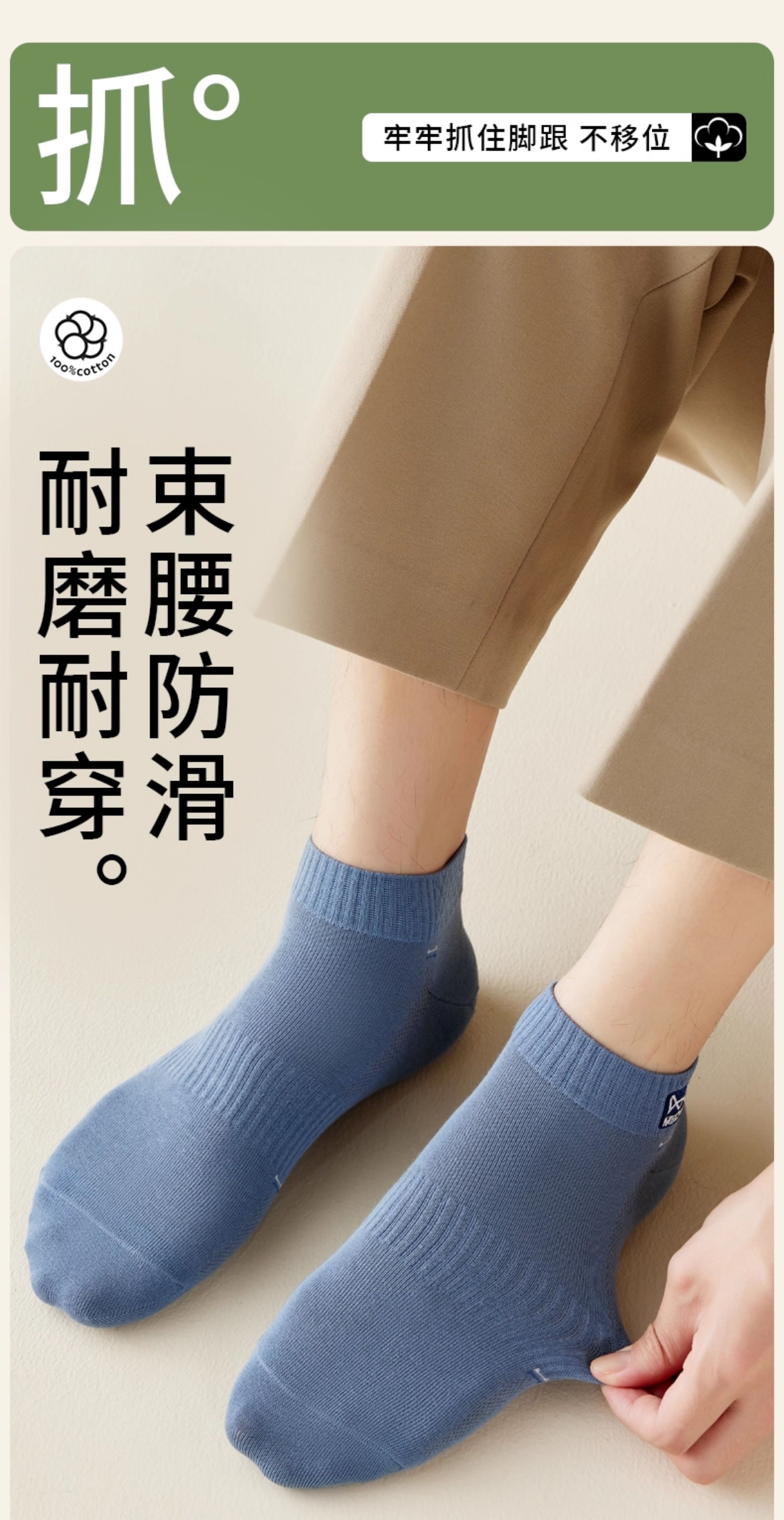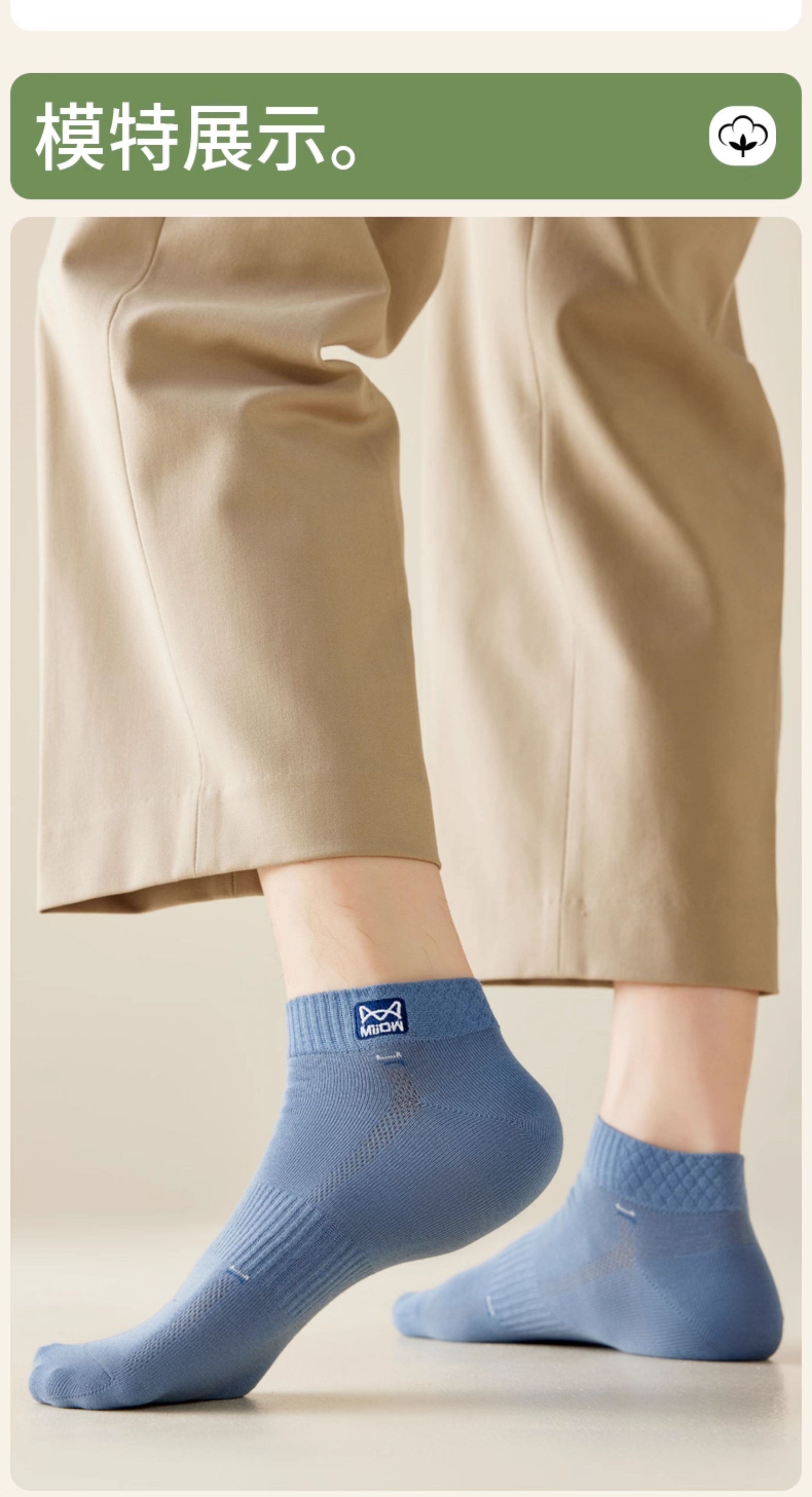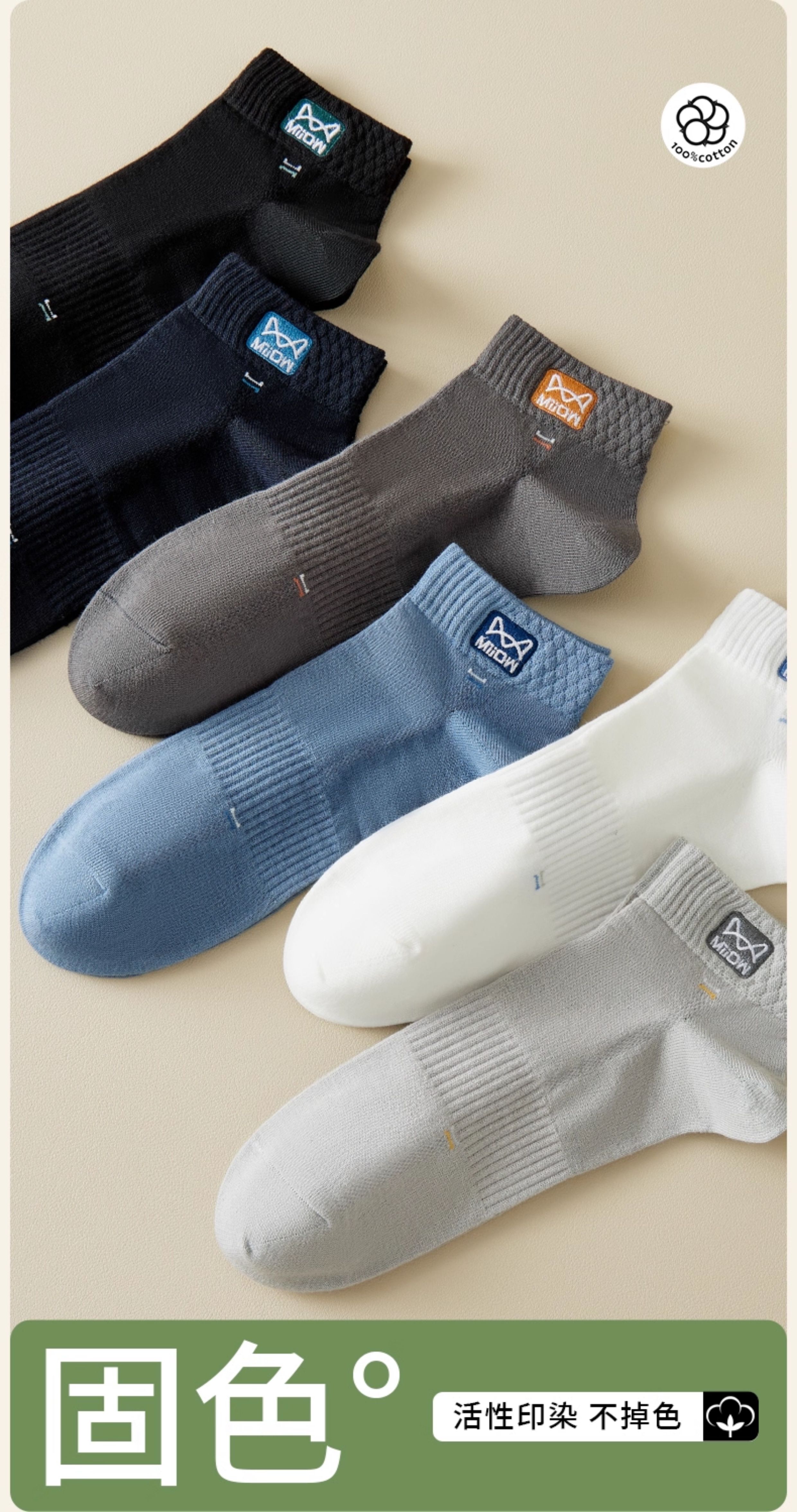 Catman Socks Men's Pure Cotton Short Socks Spring and Autumn Thin Antibacterial Deodorant Summer Men's Low-Cut Socks for Autumn and Winter