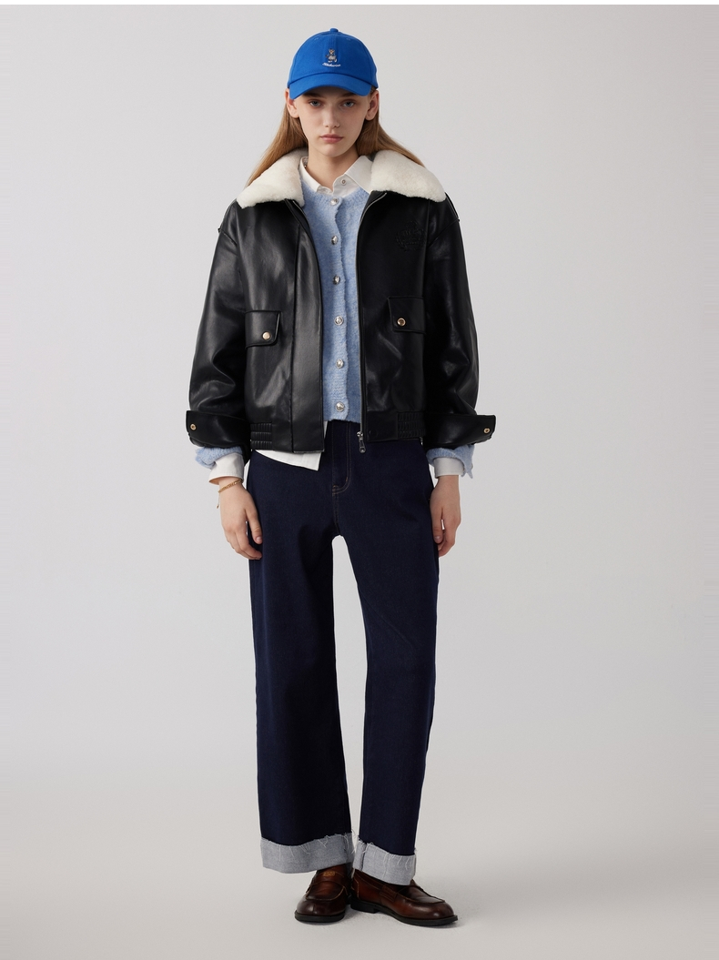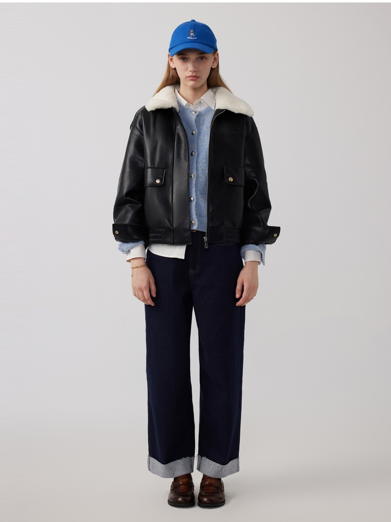 Teenieweenie Bear Winter Sweet Cool Style Detachable Textured Wool Leather Collar Jacket Coat for Women