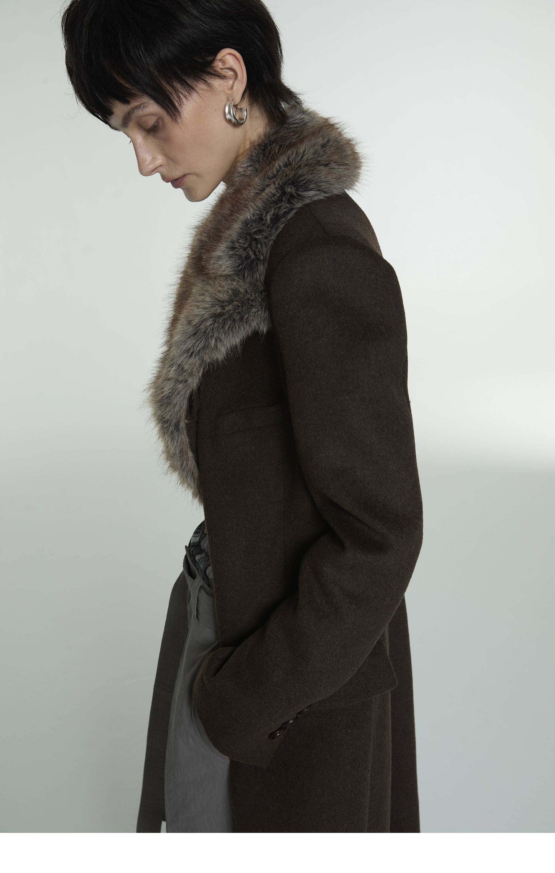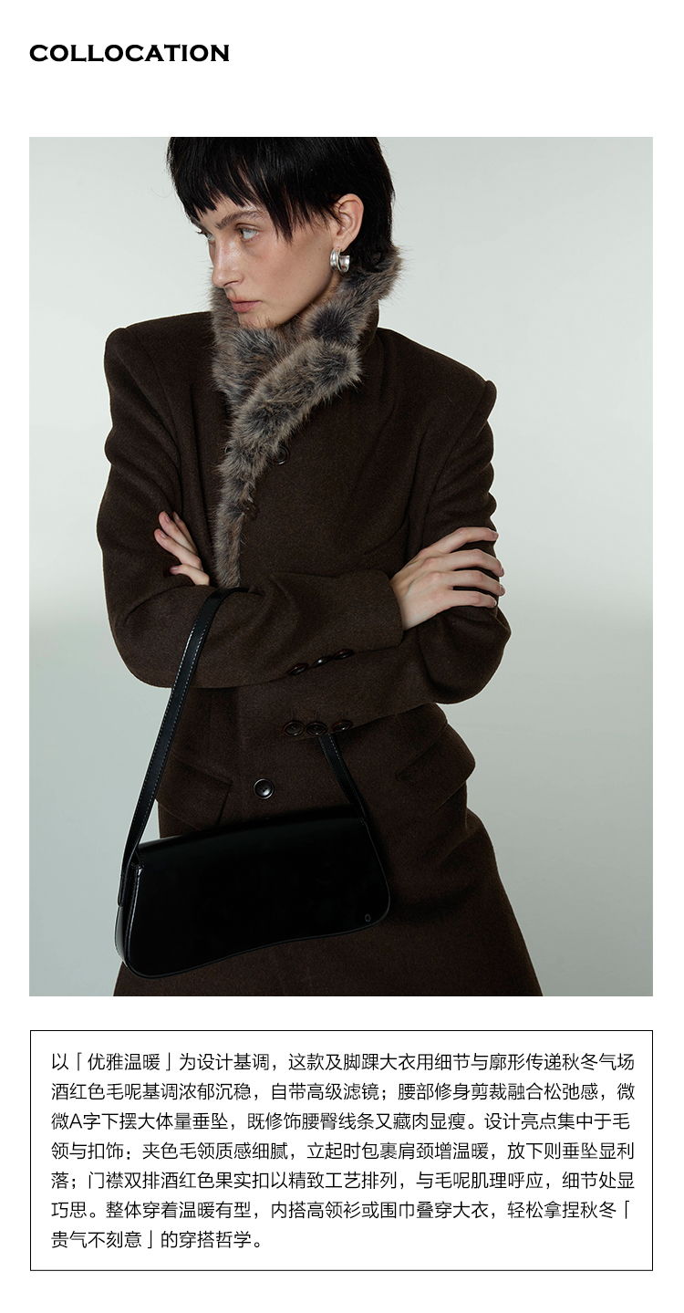 Sip Class Designer Brand Burgundy Fur Collar Woolen Coat for Women Winter Long Stand Collar Woolen Jacket