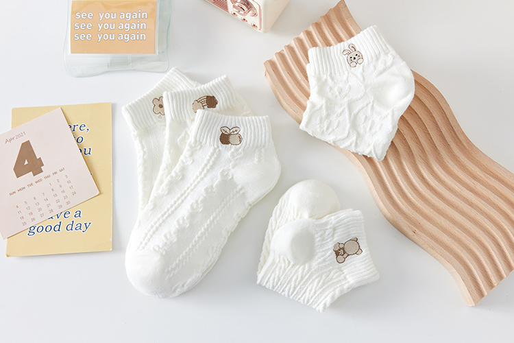 White Socks Women's Short Socks Summer Breathable Anti-Odor Student Cartoon Socks Cute Japanese Style Low-Cut Boat Socks