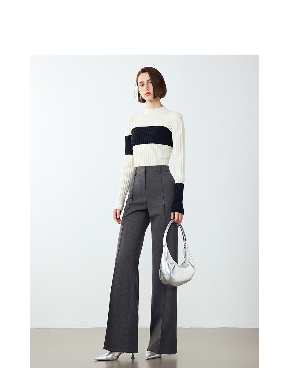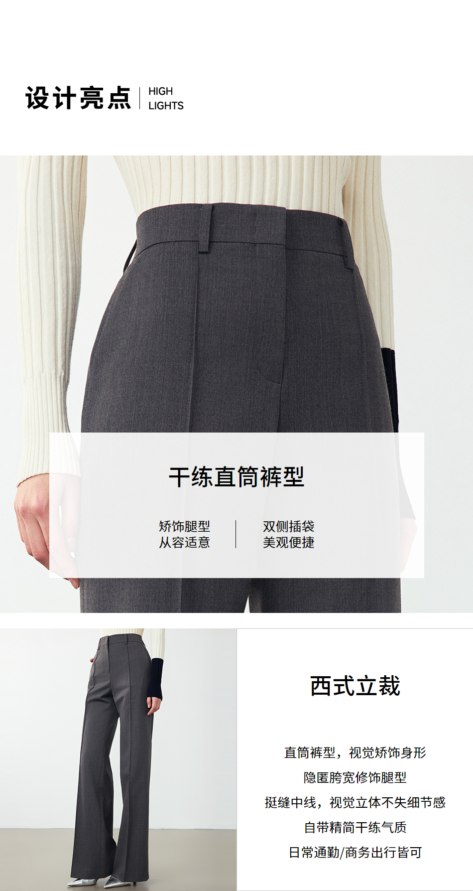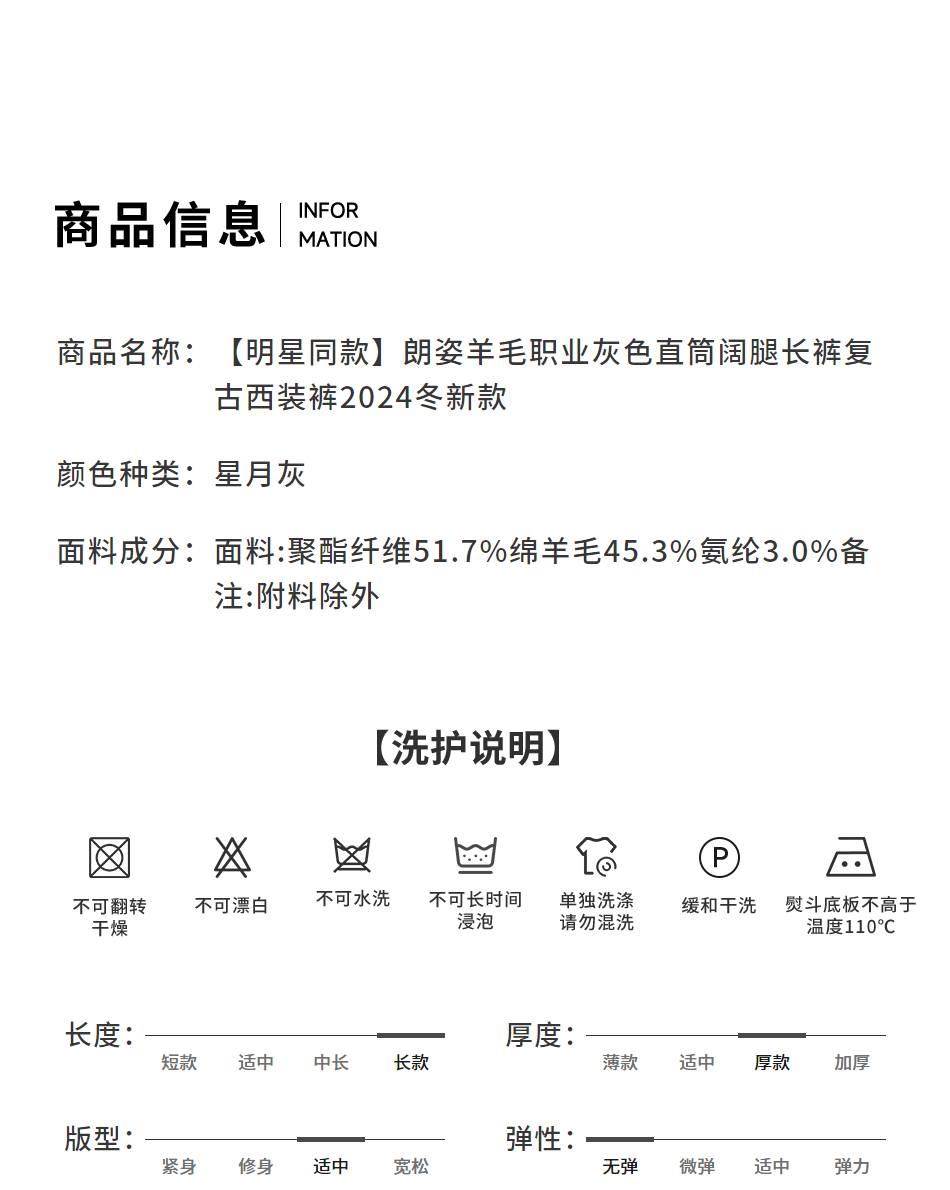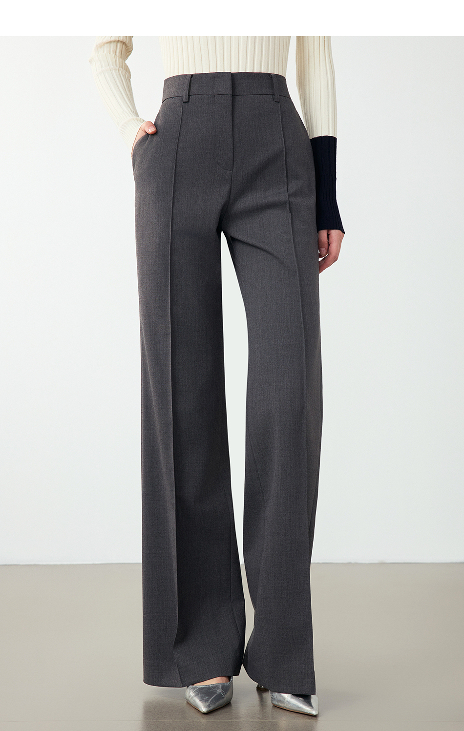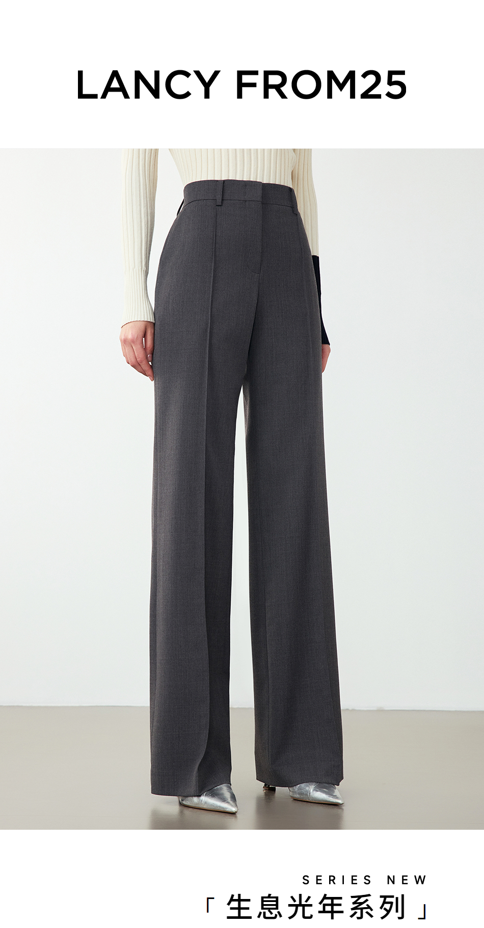 [Celebrity Style] Langzi Wool Professional Gray Straight Wide-Leg Trousers Vintage Suit Pants 2024 Winter New Style