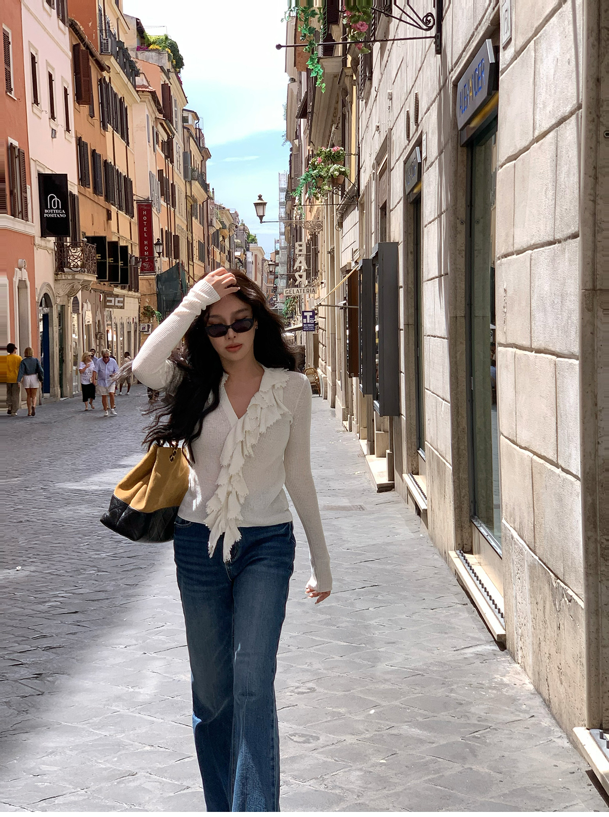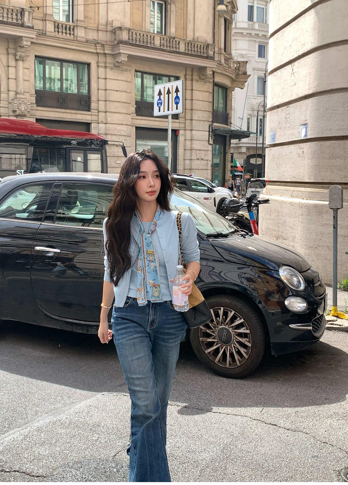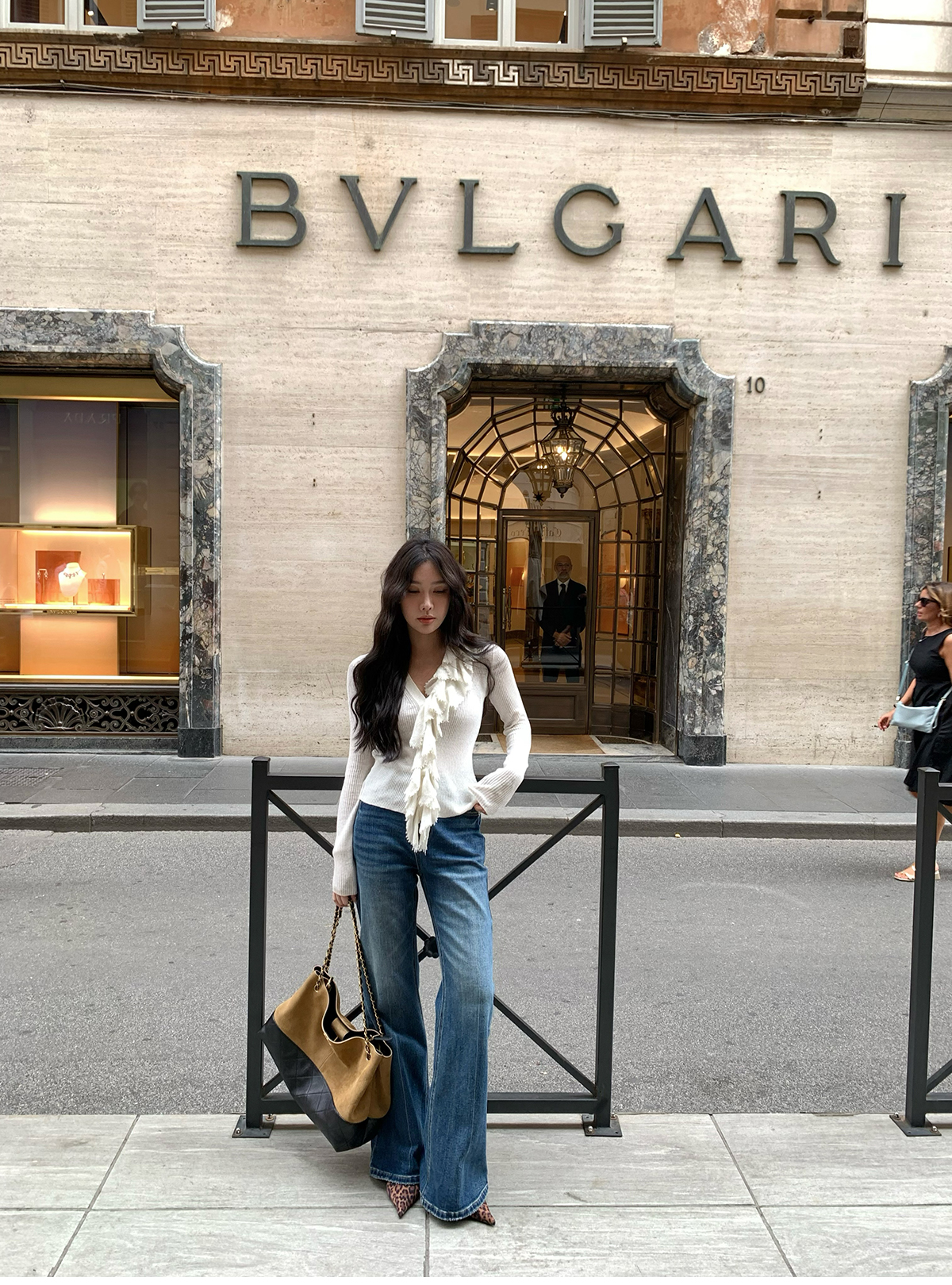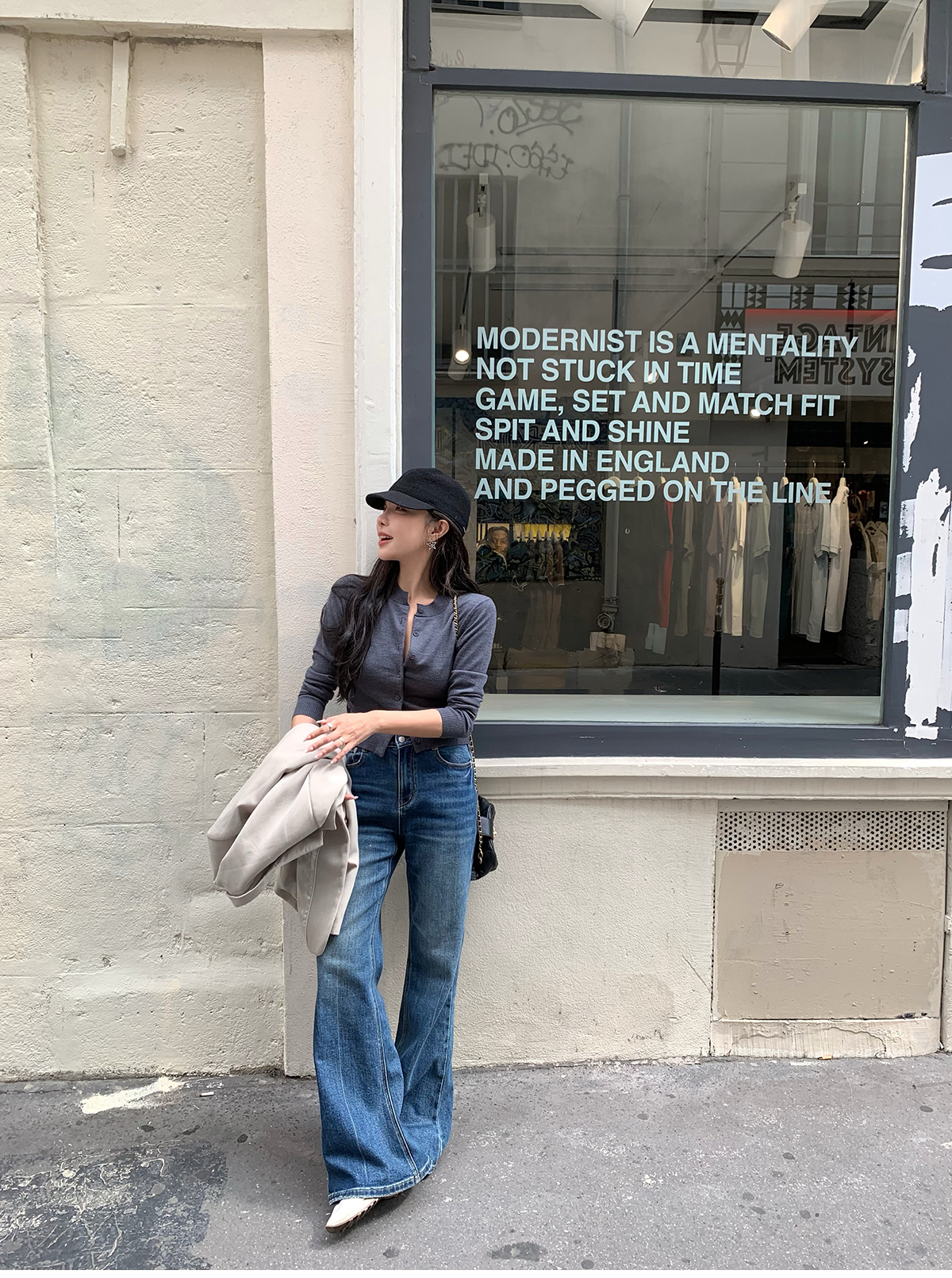 Shi Wei Liang Slimming Magic Tool Y*L Classic Style Handmade Whiskered Washed Floor-Length Flared Jeans