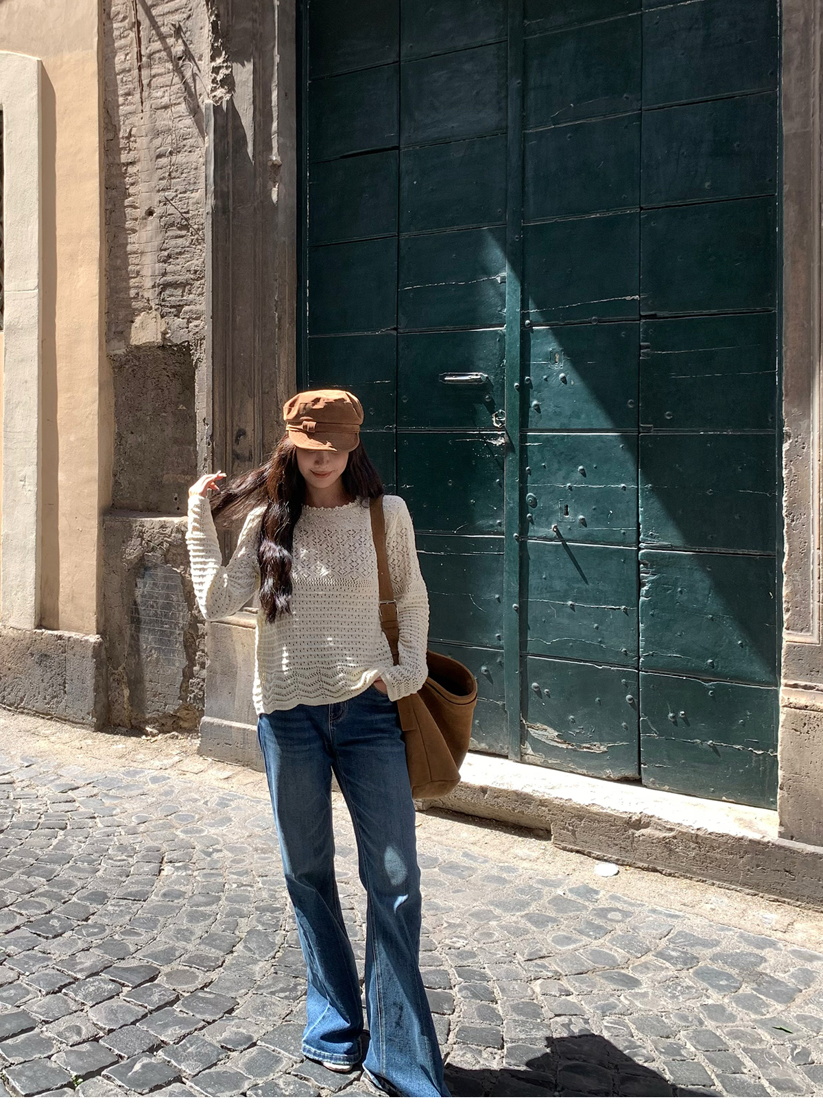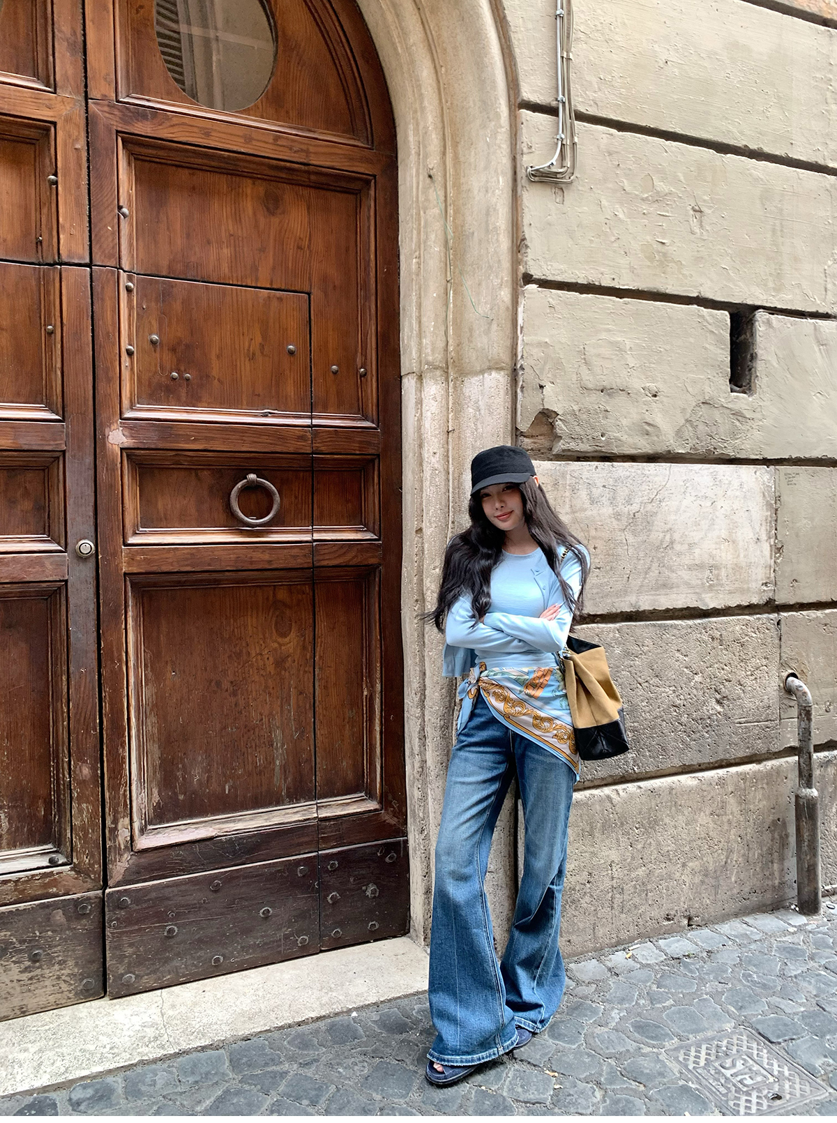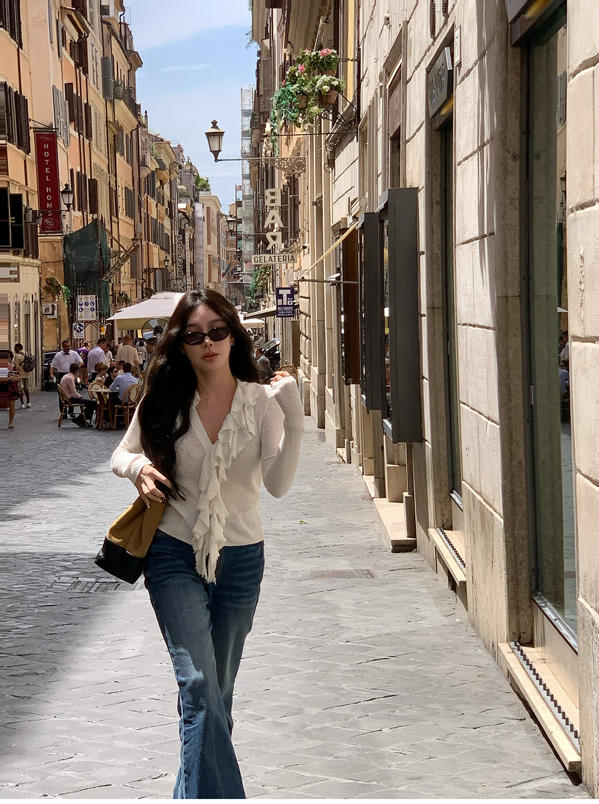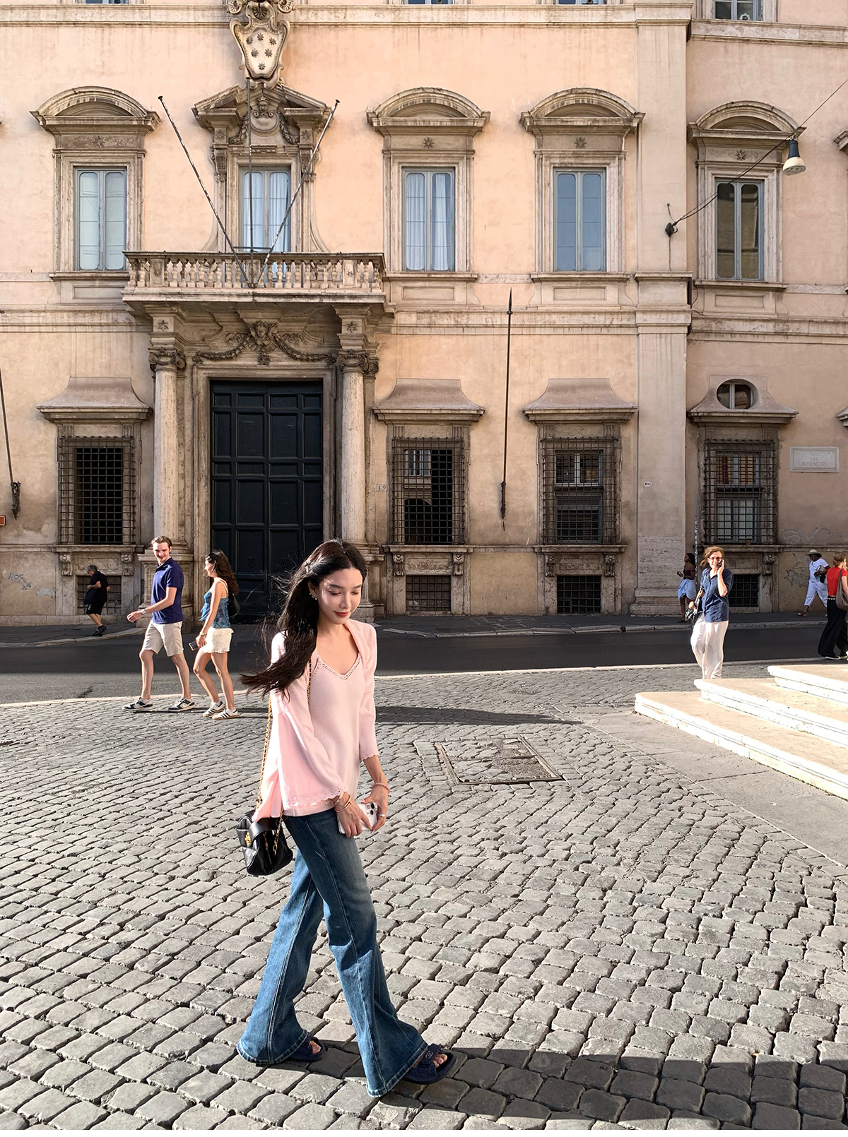 Shi Wei Liang Slimming Magic Tool Y*L Classic Style Handmade Whiskered Washed Floor-Length Flared Jeans