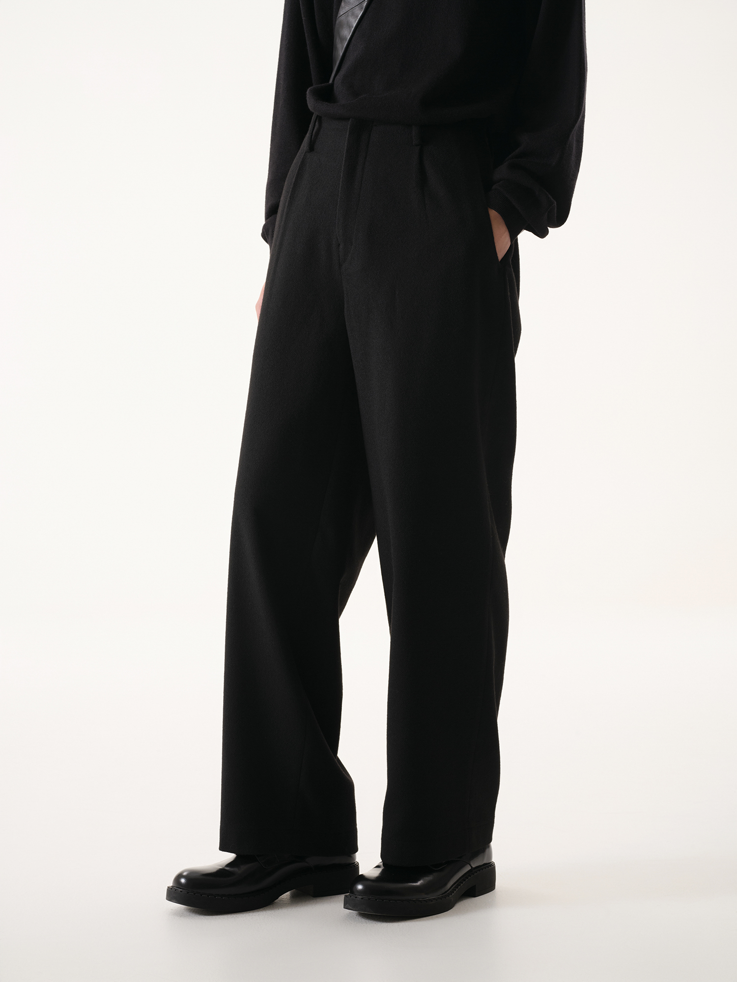 【Whitt Epure】Wp Shirakawa Australian Wool Blend Self-Tie Waist Loose Trousers Casual Dress Pants for Men