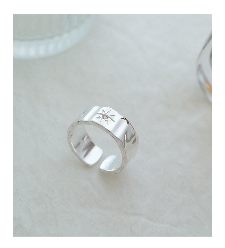 All-Over S925 Sterling Silver Six-Pointed Star Niche Design Textured Ring ins Style High-End Open Ring for Men and Women Couples