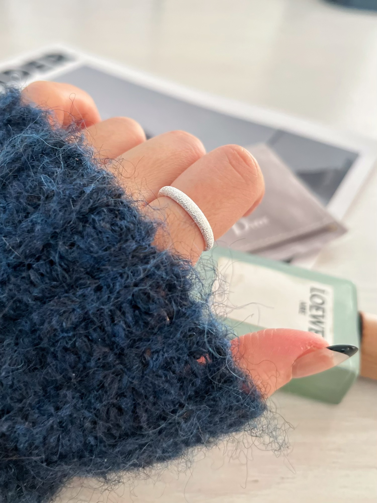 Galaxy/Korean Silver Jewelry Niche Design ins Sterling Silver Crushed Ice S925 Silver Starry Sky Open Ring for Women
