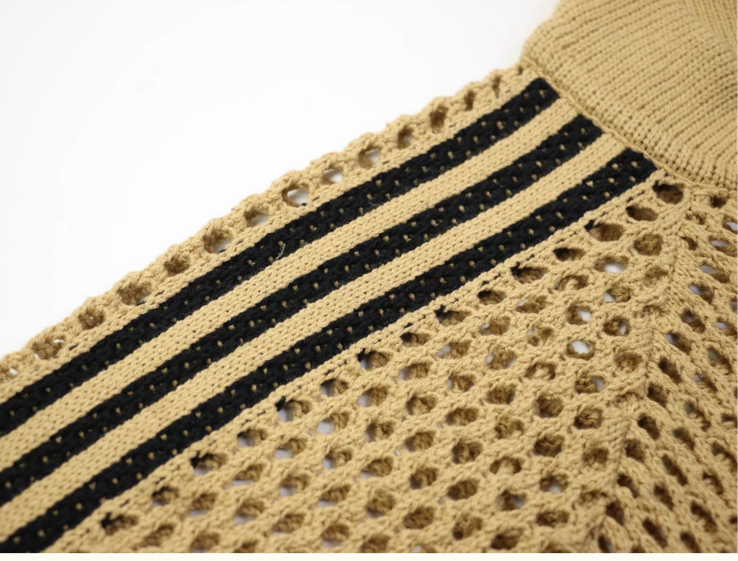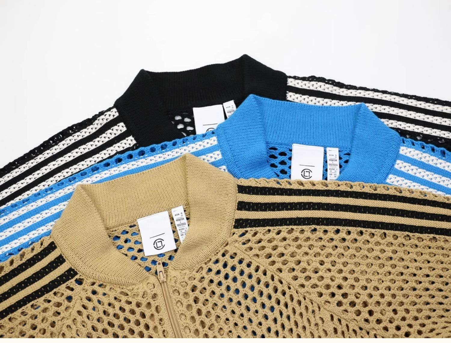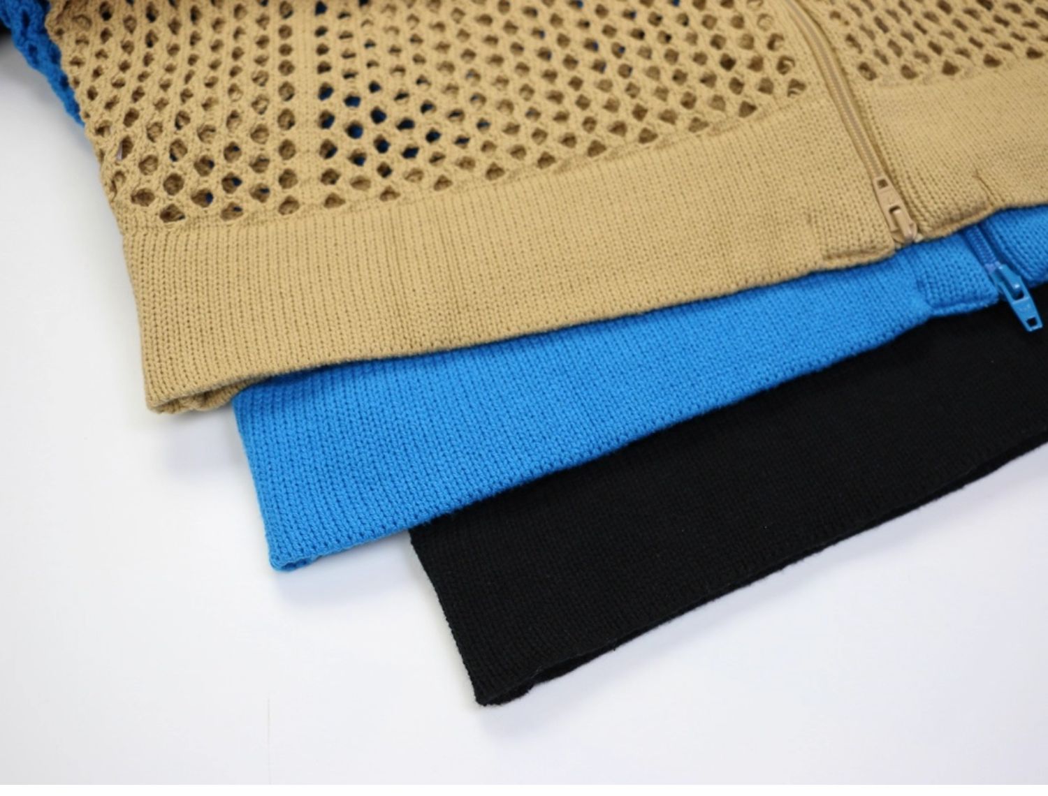 Trendy Brand Style Hollow Knit Sweater for Men and Women, Short Loose Fit, Stand Collar, Couple Long-Sleeve Baseball Jacket