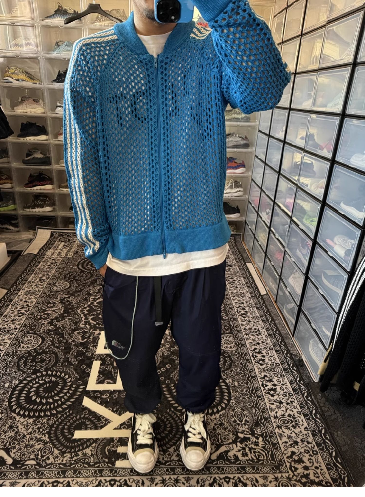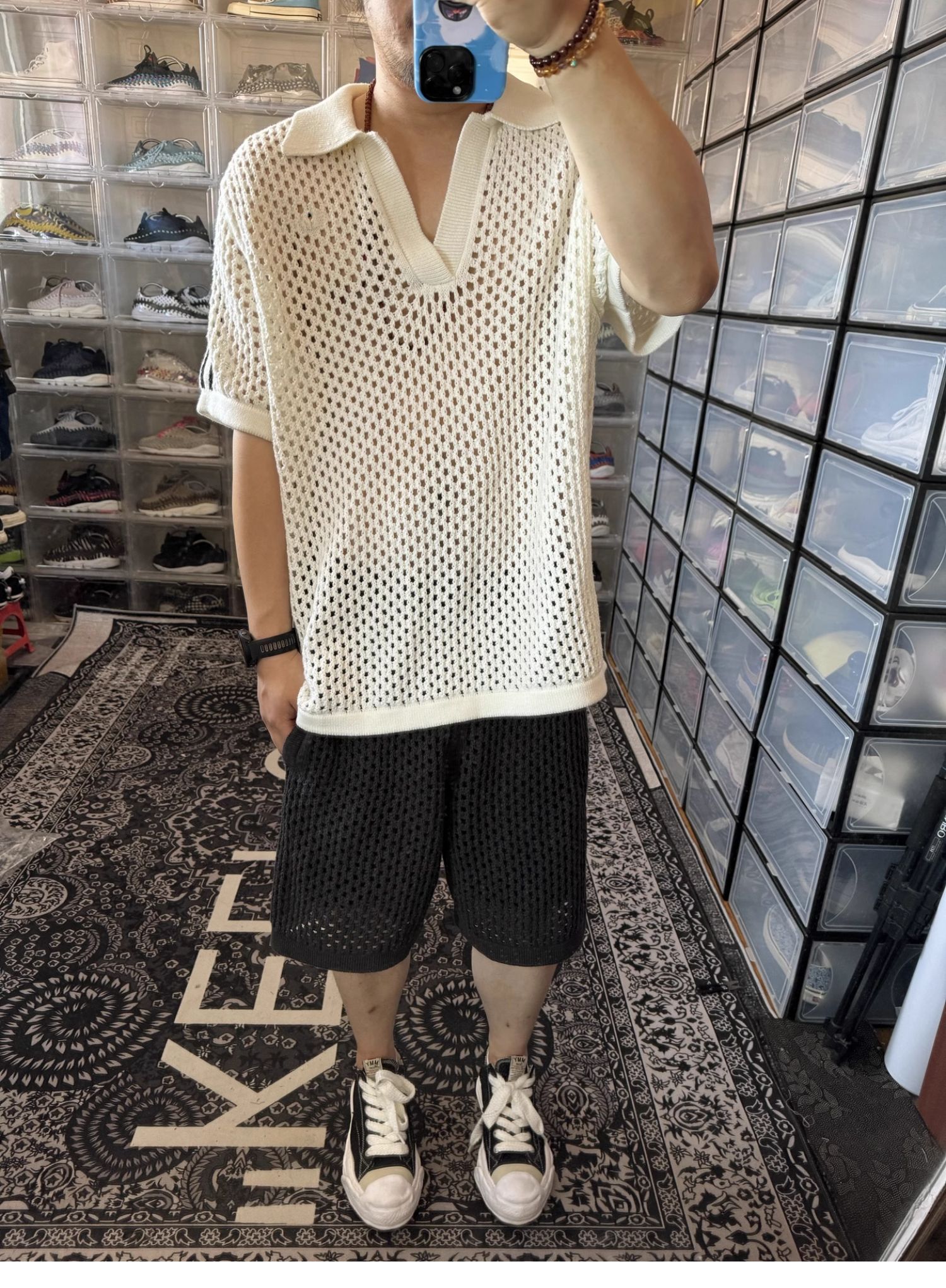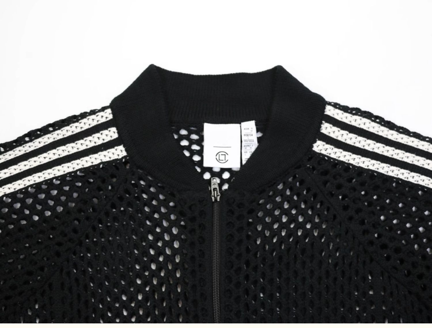 Trendy Brand Style Hollow Knit Sweater for Men and Women, Short Loose Fit, Stand Collar, Couple Long-Sleeve Baseball Jacket
