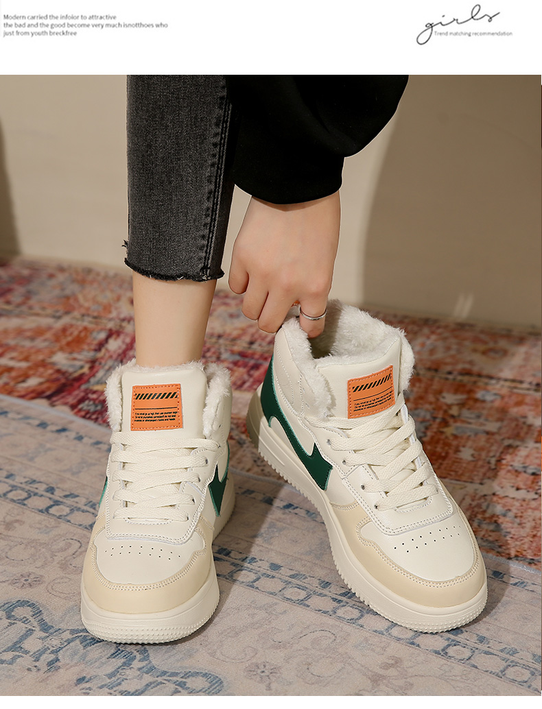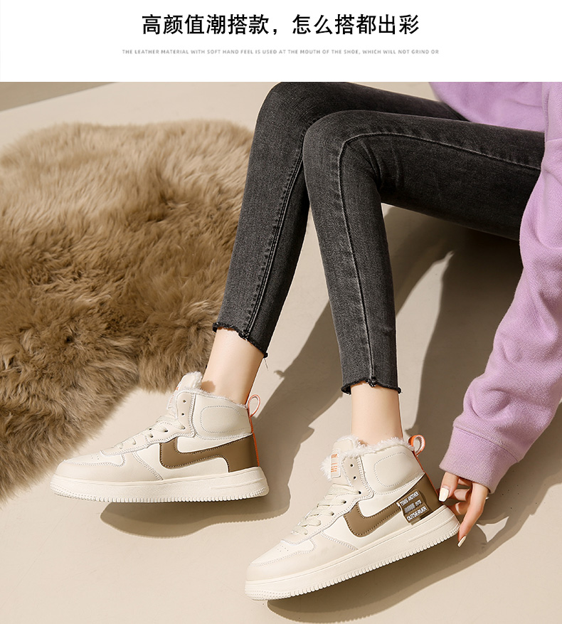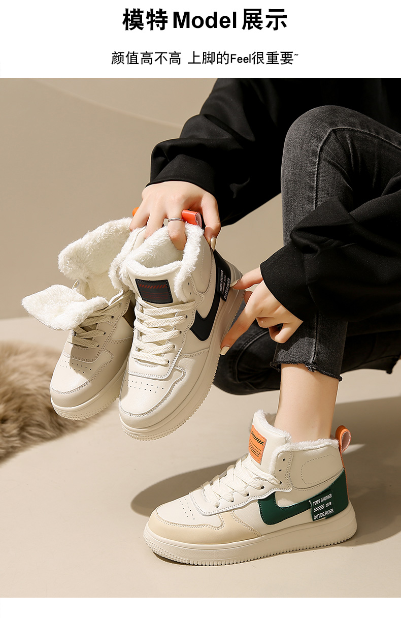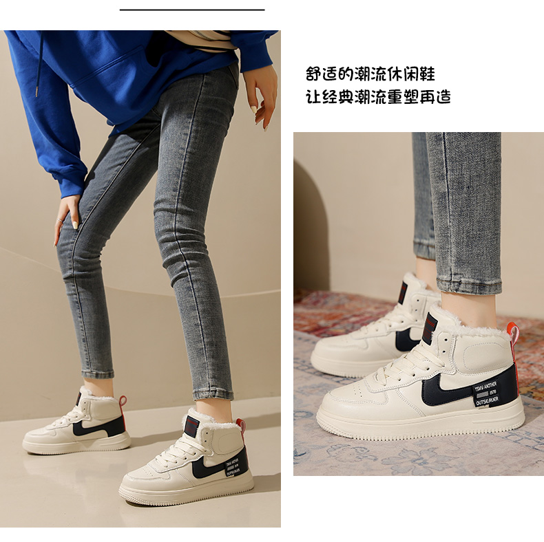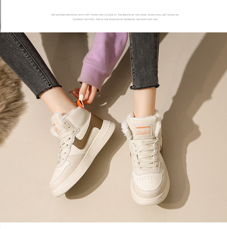 Large Size 41-43 High-Top Cotton Shoes for Women, Winter Fleece-Lined, Warm, Wide-Foot, Plus-Size, Pregnant Women, Casual Sports Snow Boots