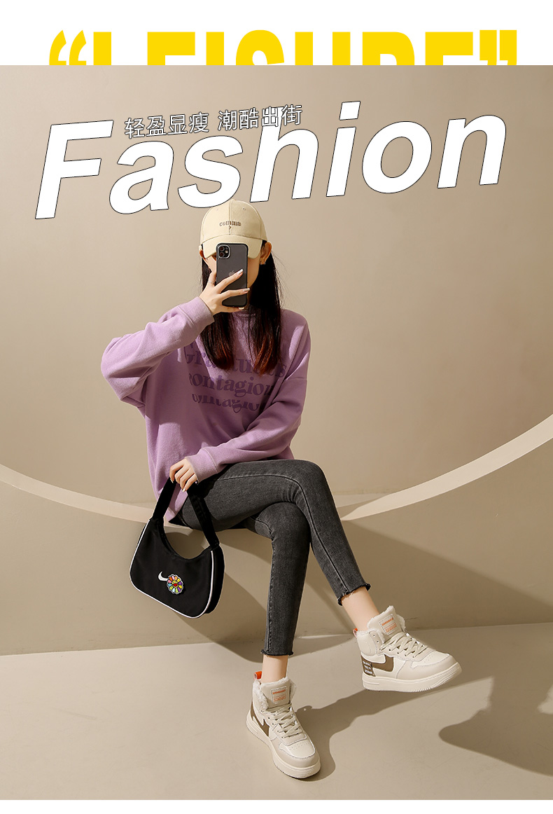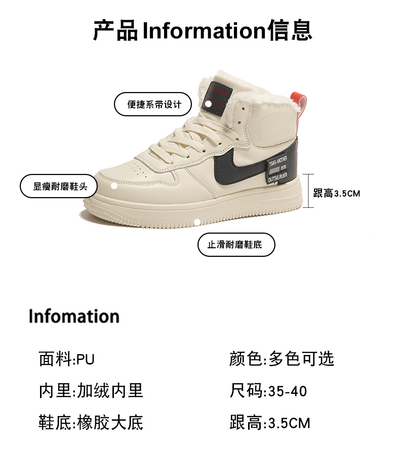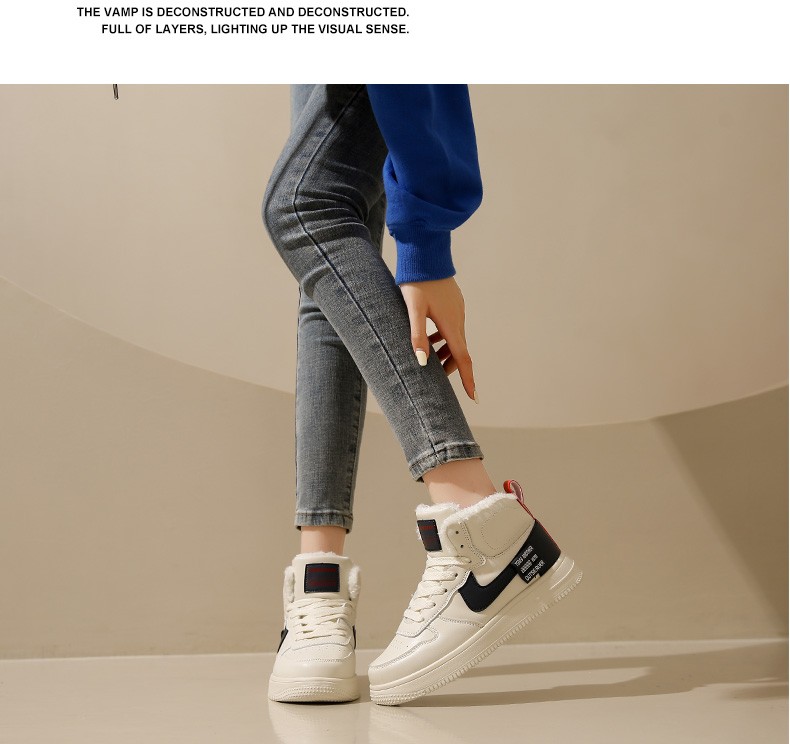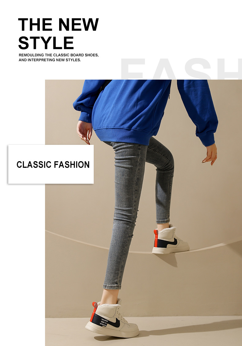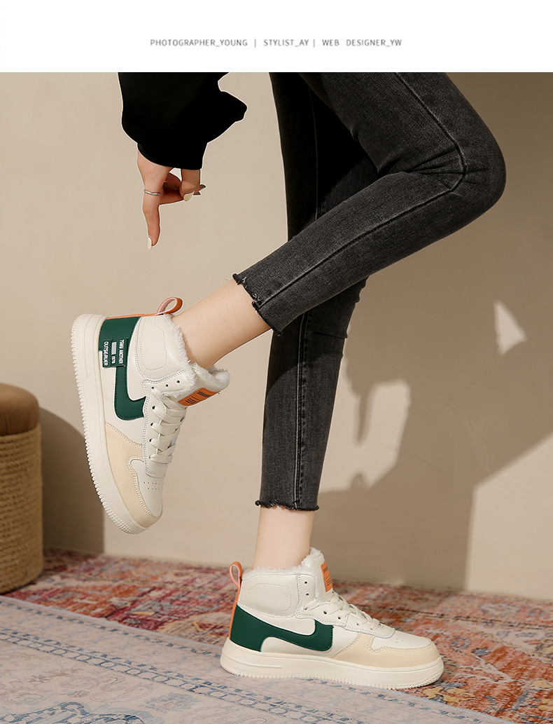 Large Size 41-43 High-Top Cotton Shoes for Women, Winter Fleece-Lined, Warm, Wide-Foot, Plus-Size, Pregnant Women, Casual Sports Snow Boots