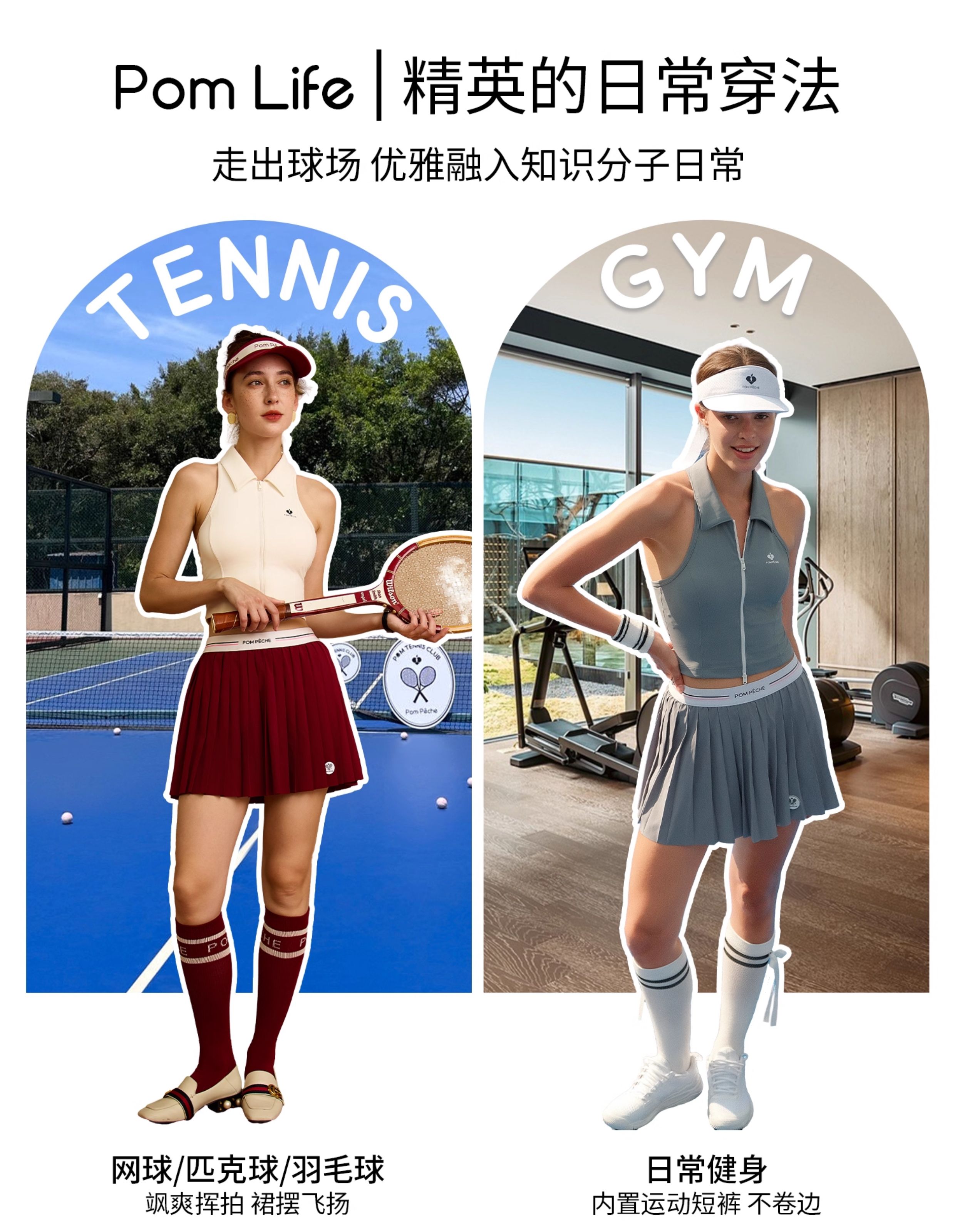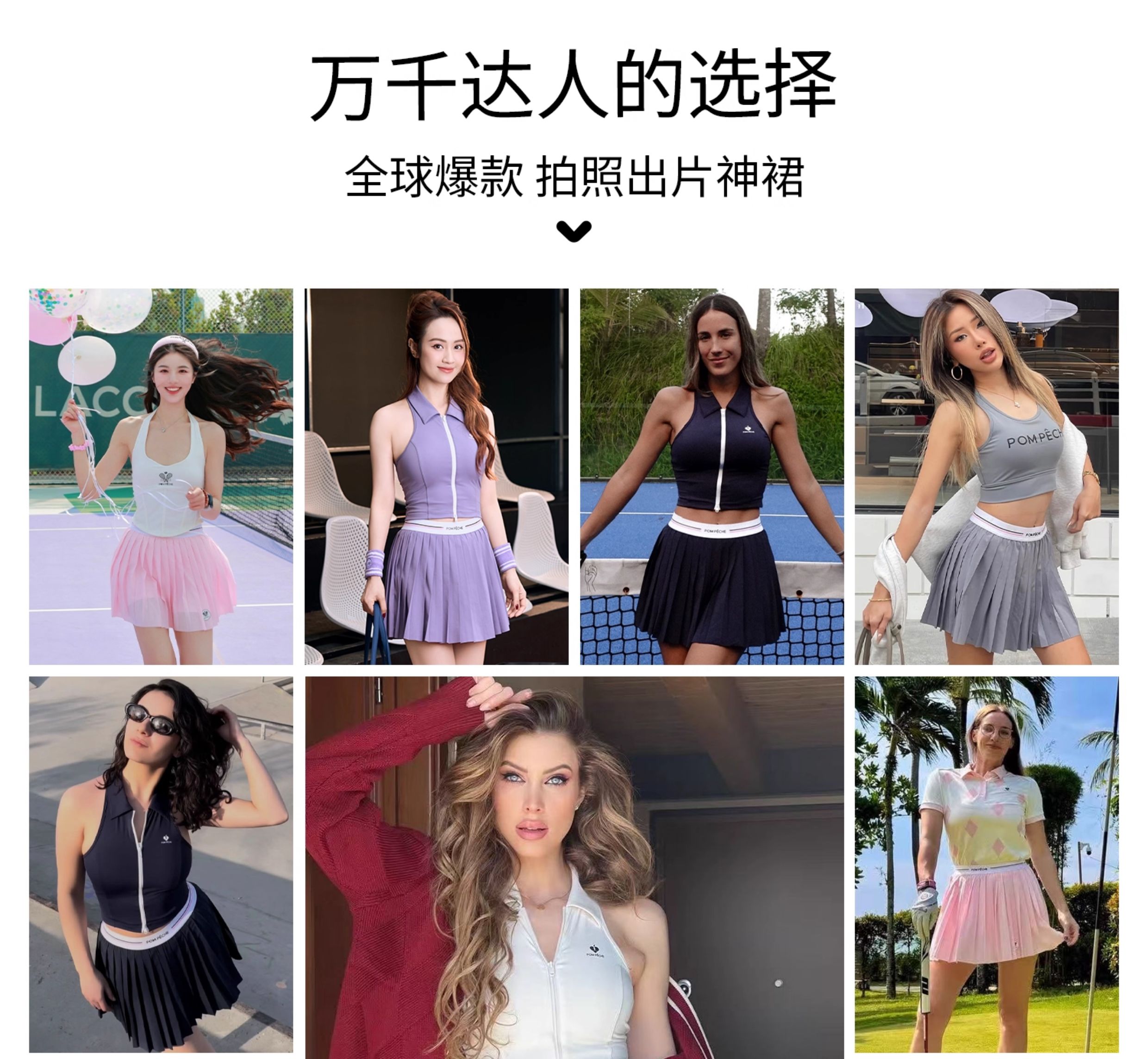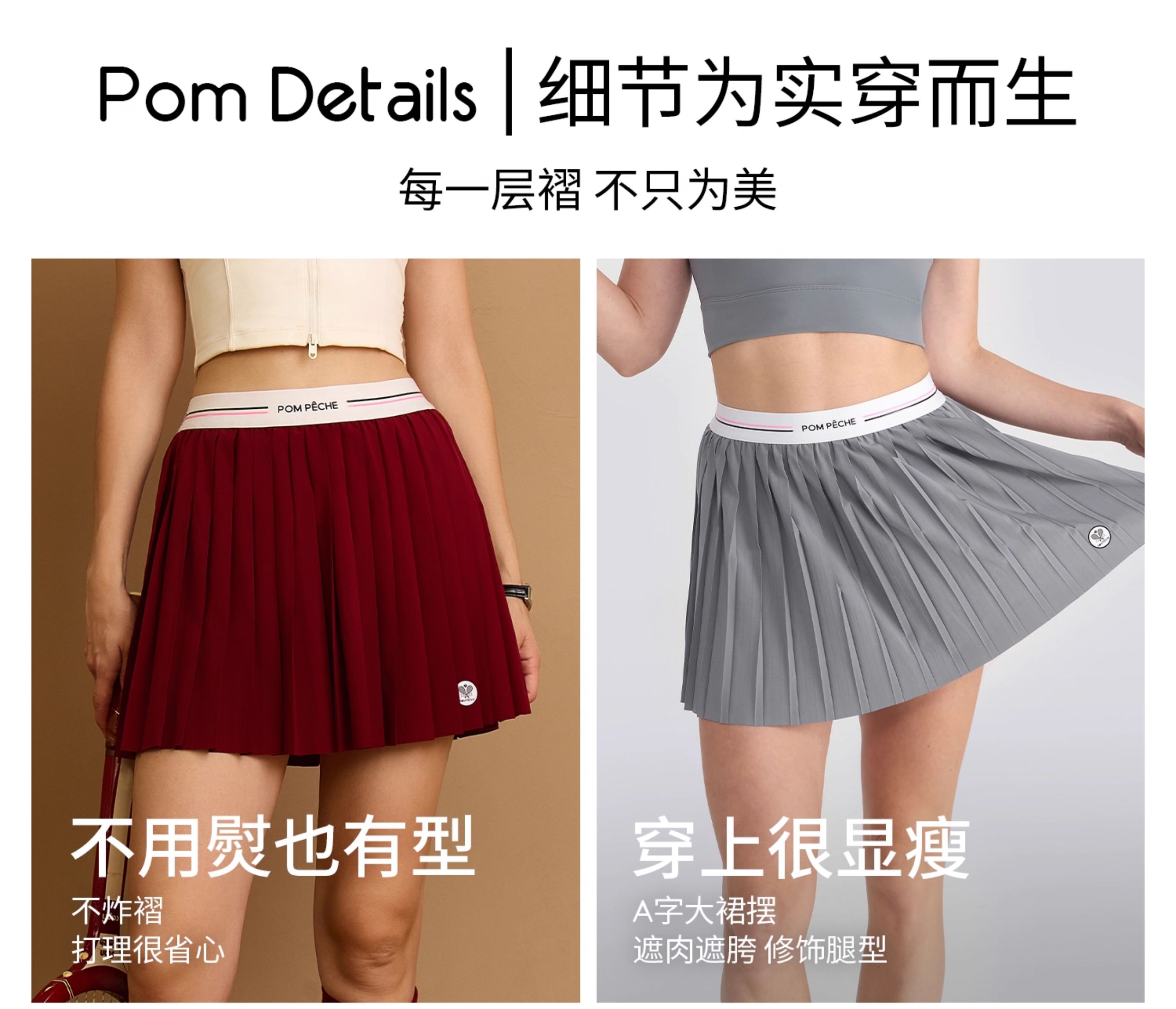 Pleated Tennis Skirt for Women with Built-In Shorts, Suitable for Golf, Running, High-Waisted A-Line Sports Skirt, Pompeche