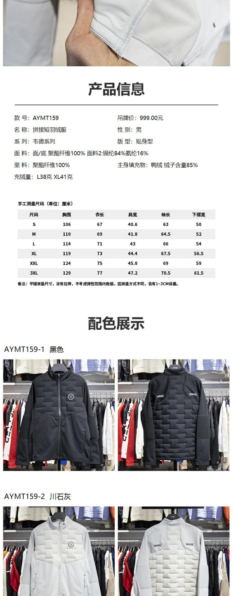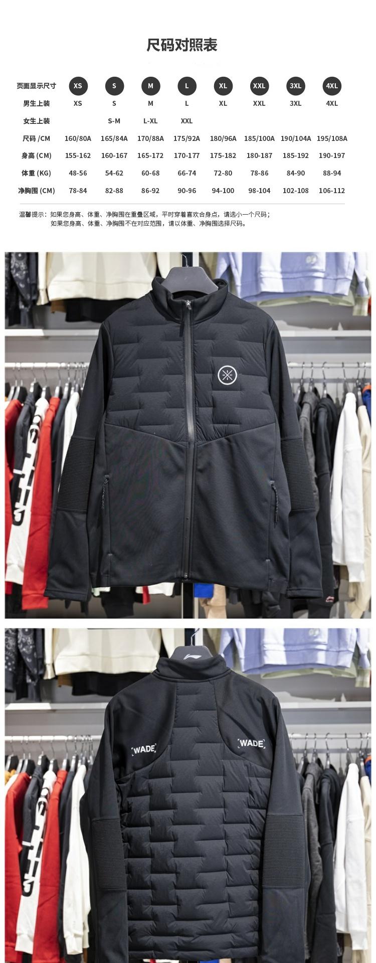 Li Ning Men's down Jacket 2023 Winter Wade Series Stand Collar Windproof Warm Patchwork Jacket Aymt159