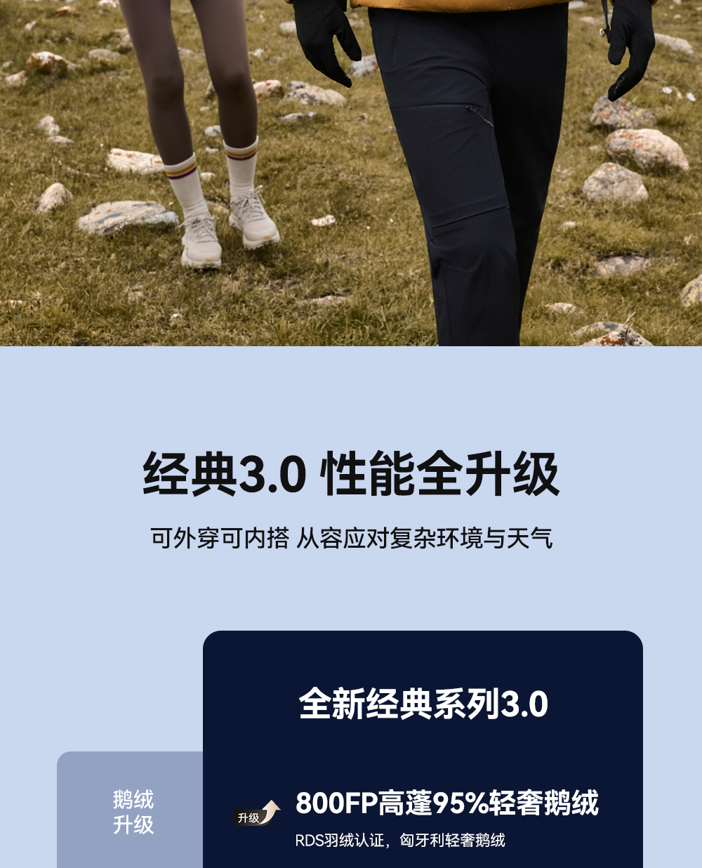 [Classic 3.0] Pelliot Lightweight Ribbed down Jacket 800 Fill Power Women's Coat Outdoor Softshell Jacket Inner Liner Men's