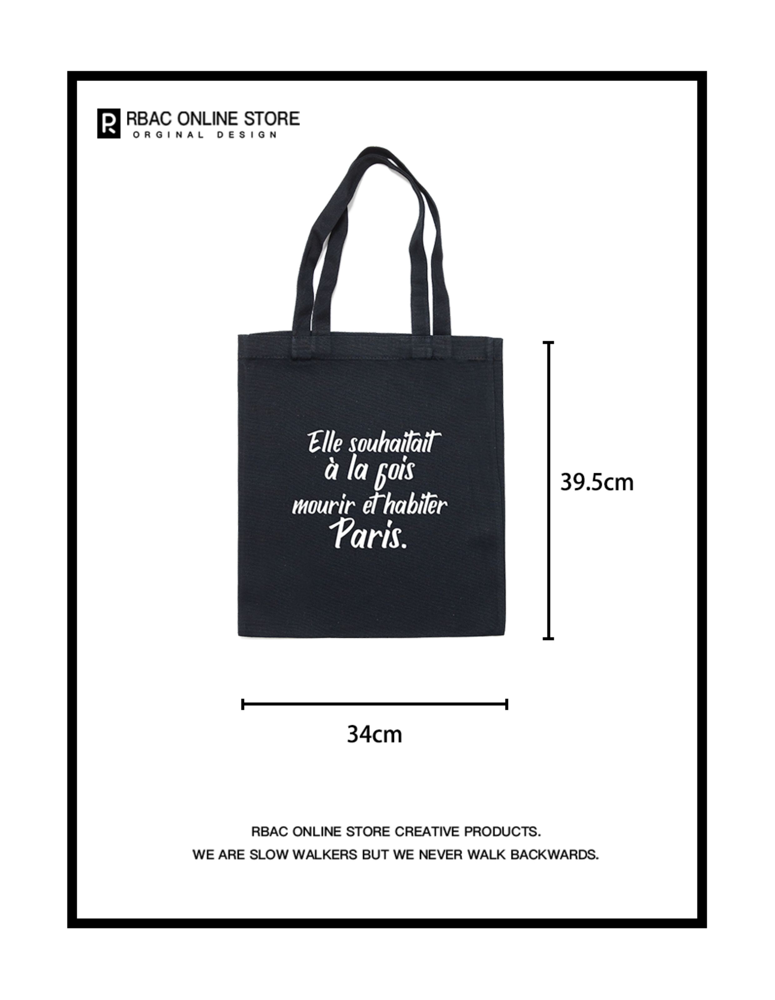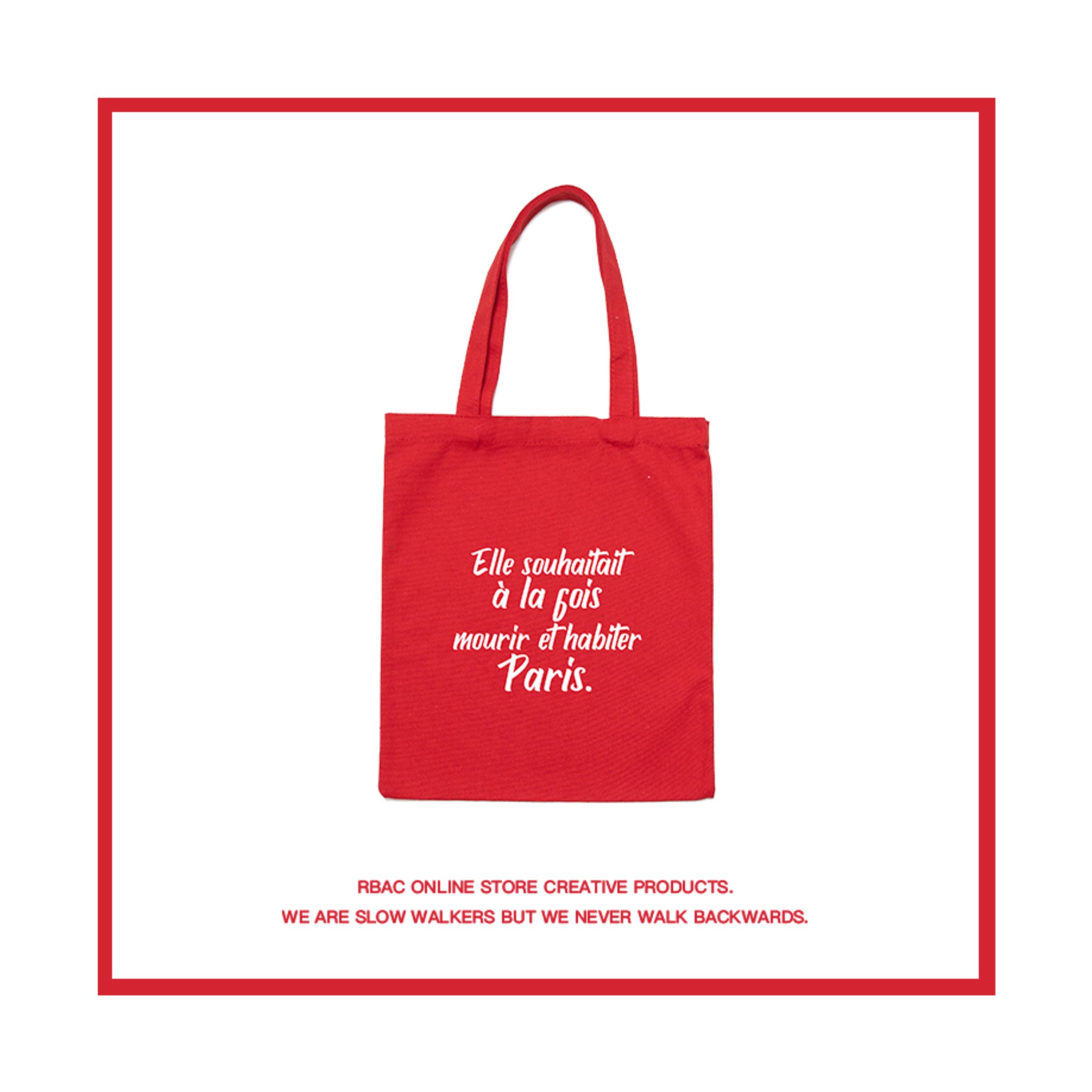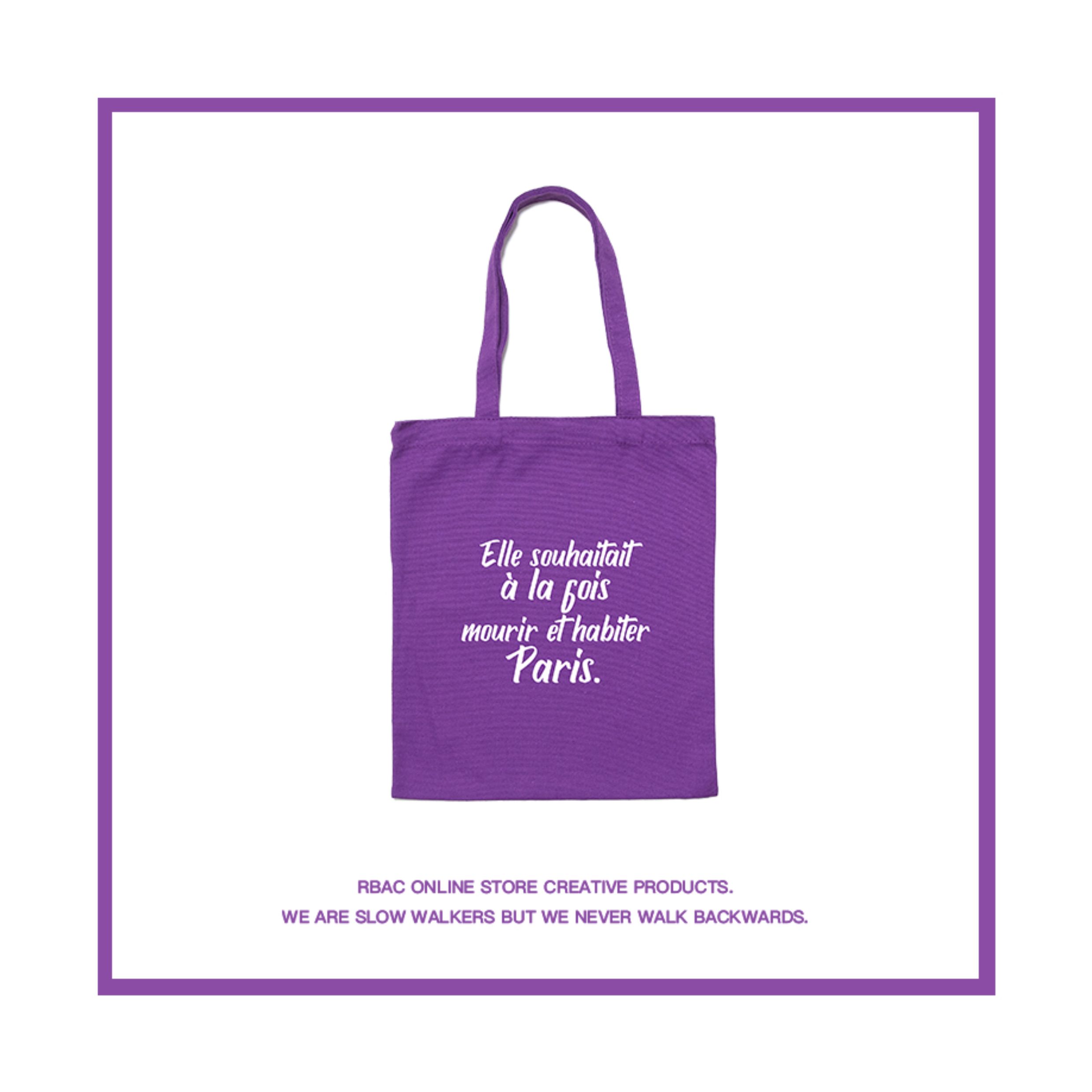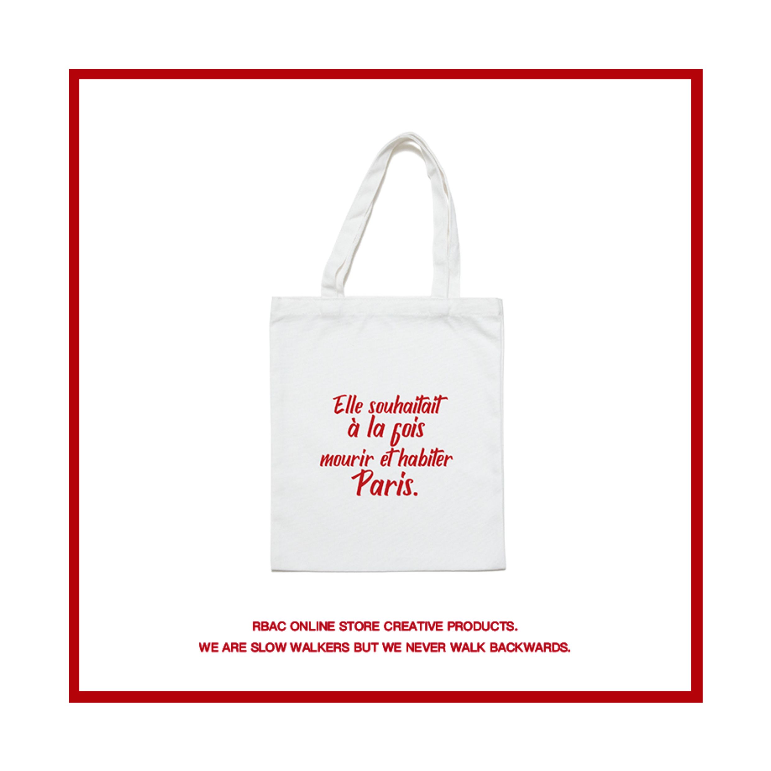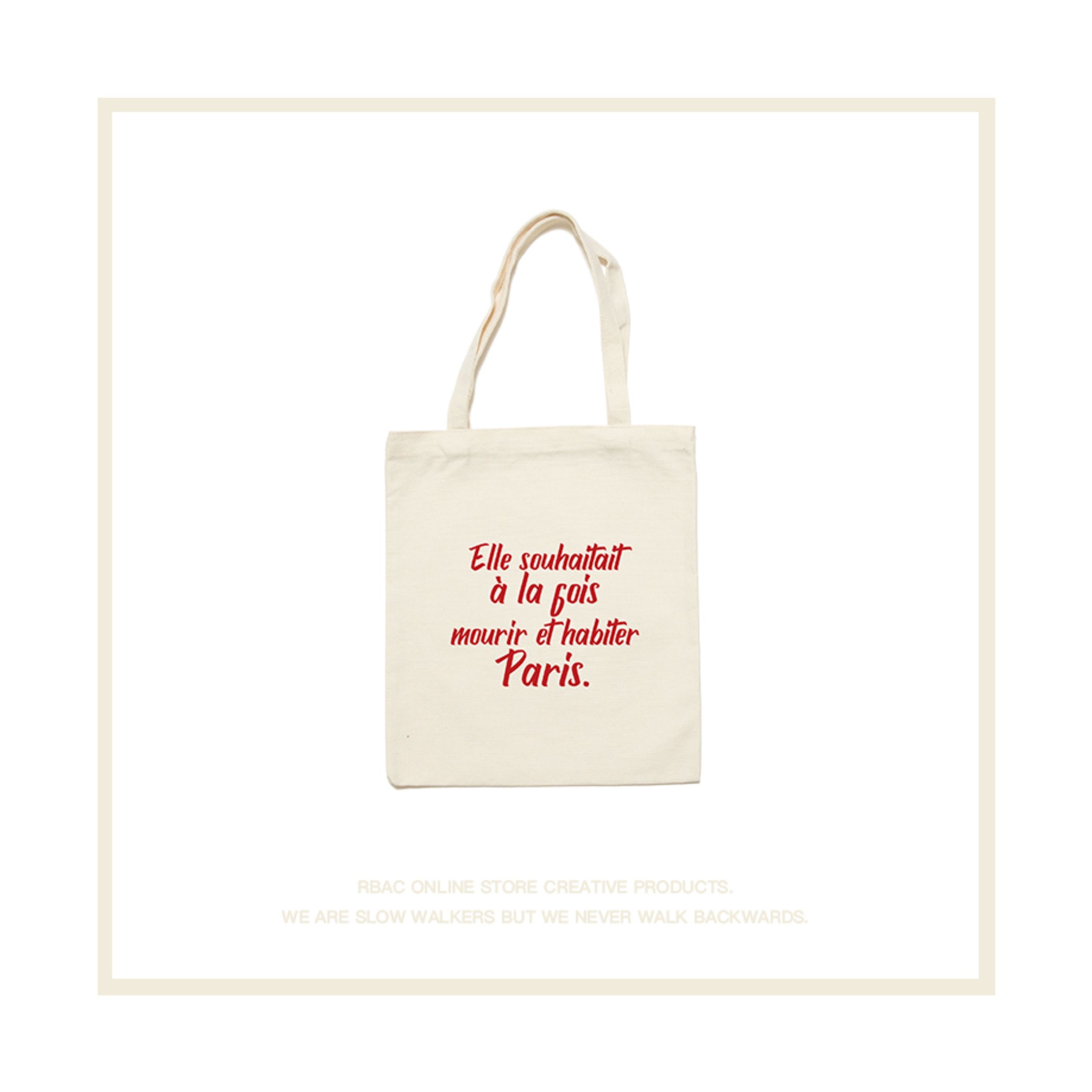 French Version: She Wants to Die but Also Wants to Go to Paris | Rbac | Canvas Tote Bag with English Creative Print