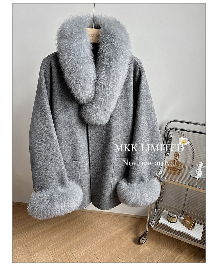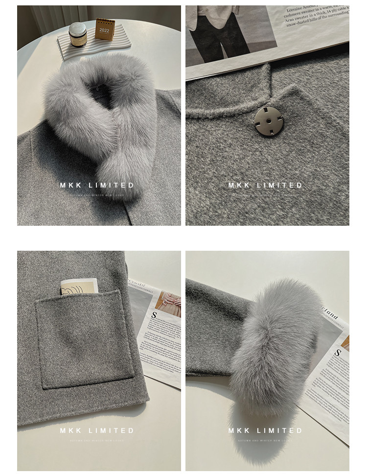 | 衣身1-0-0羊毛双面尼搭配进口狐狸毛 |