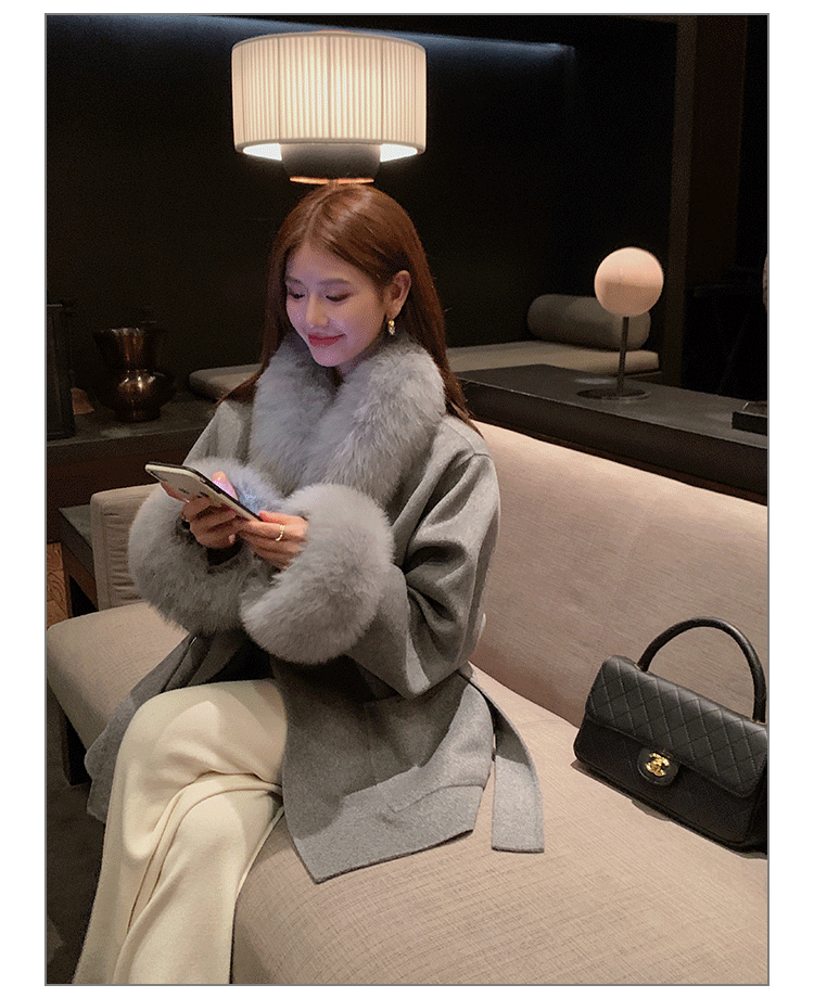 | 毛领和袖口的狐狸毛都是可以拆卸的 |