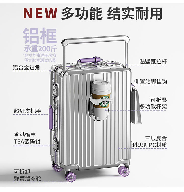 2025 New Luggage 20inch Carry-On Suitcase Travel Suitcase Leather Suitcase Trolley Case Women's Password Lock Small Handbag