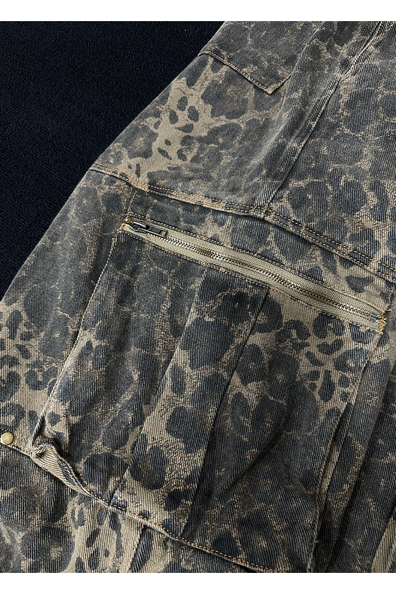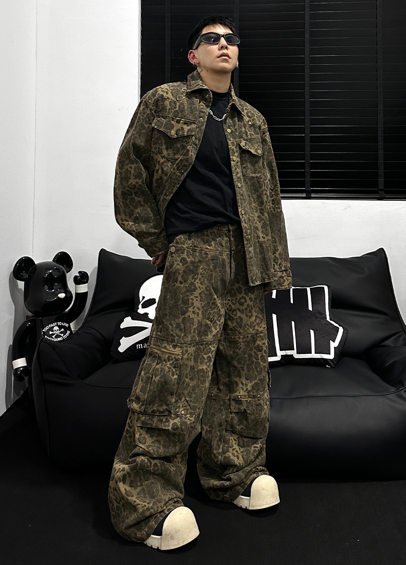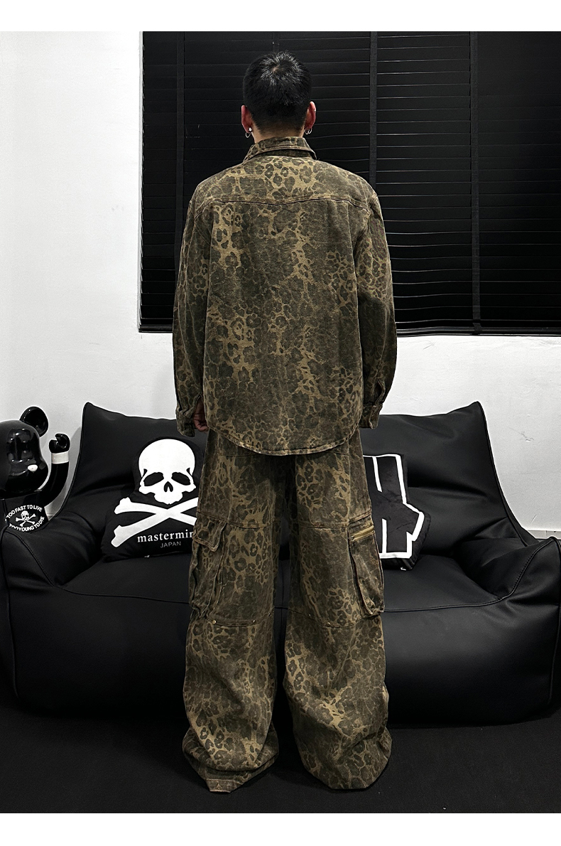 Leopard Print Suit for Men and Women, Spring and Autumn, American Style, Heavy-Duty, Niche Design, Shoulder-Padded Two-Piece Set, Shirt Jacket, Trendy Brand