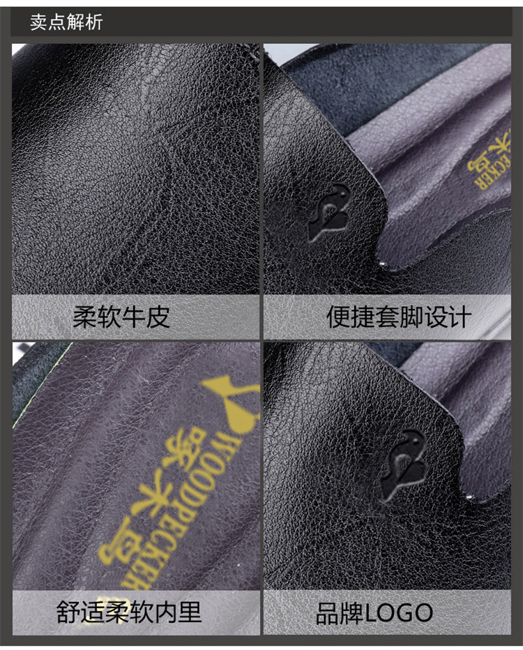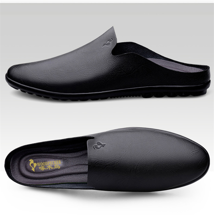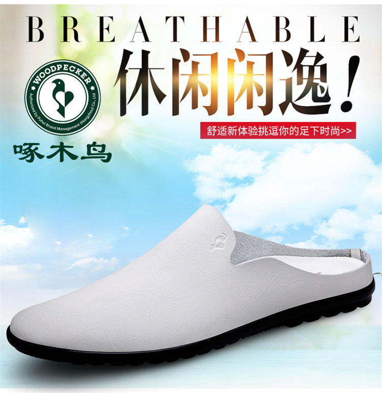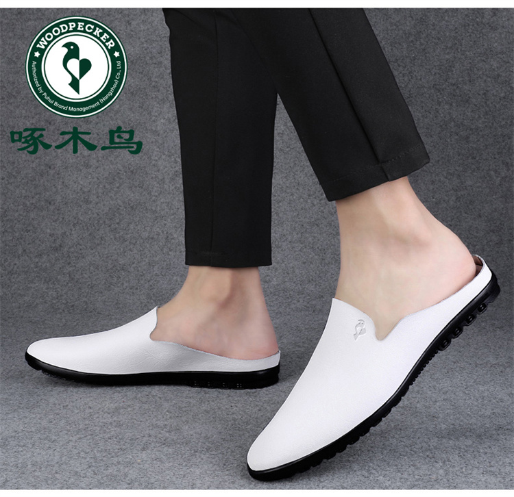 Woodpecker Men's Shoes, New Summer Model, Single-Layer Cowhide, Thin, Breathable, Casual Half-Slippers, Men's Perforated Leather Shoes, Slip-On Shoes